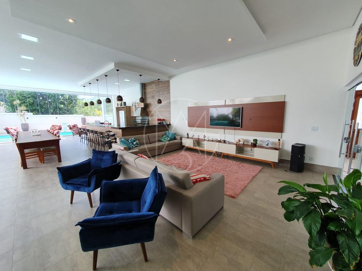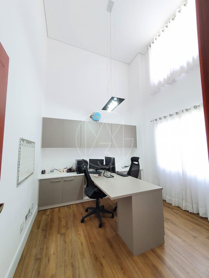 Belíssimo sobrado em Valinhos/SP com 4 suítes, sendo uma master com hidromassagem. Ambientes amplos e sofisticados, incluindo salas de estar, jantar e cinema, além de escritório e cozinha moderna planejada. Área externa com piscina, espaço gourmet com suíte de apoio e garagem para 4 carros.