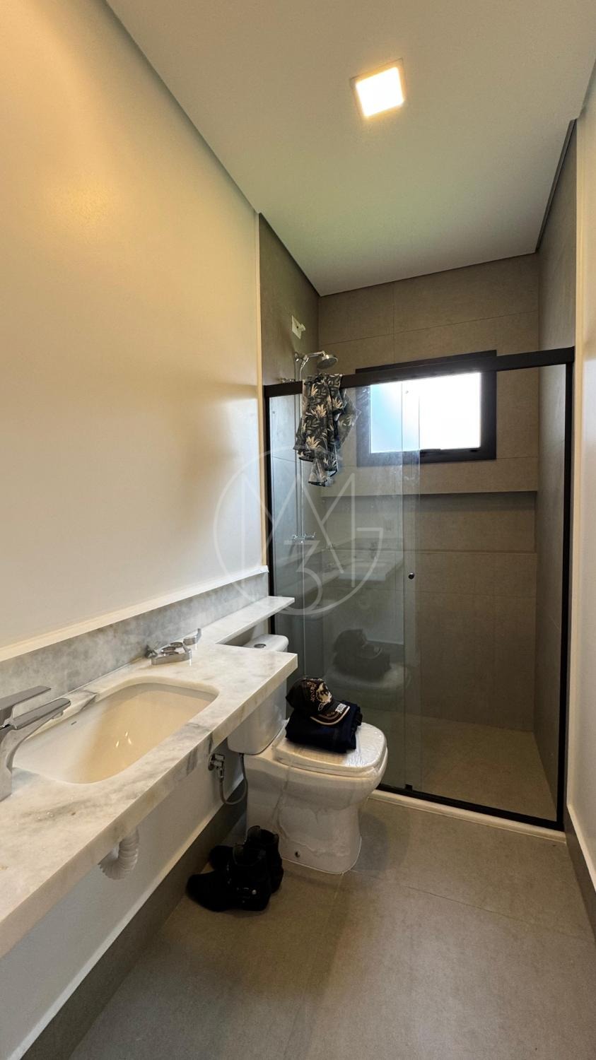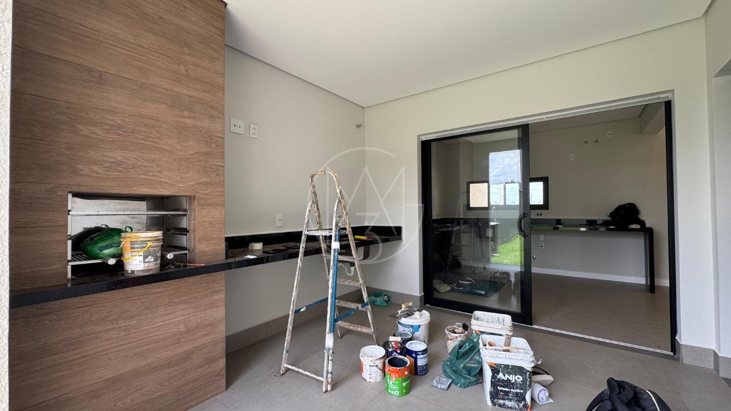 A casa é distribuída em salas de estar, jantar e cozinha amplas e integradas. 3 suítes, 3 banheiros, sendo 1 também utilizável como social. varanda gourmet com churrasqueira a carvão, área de serviço e quintal gramado