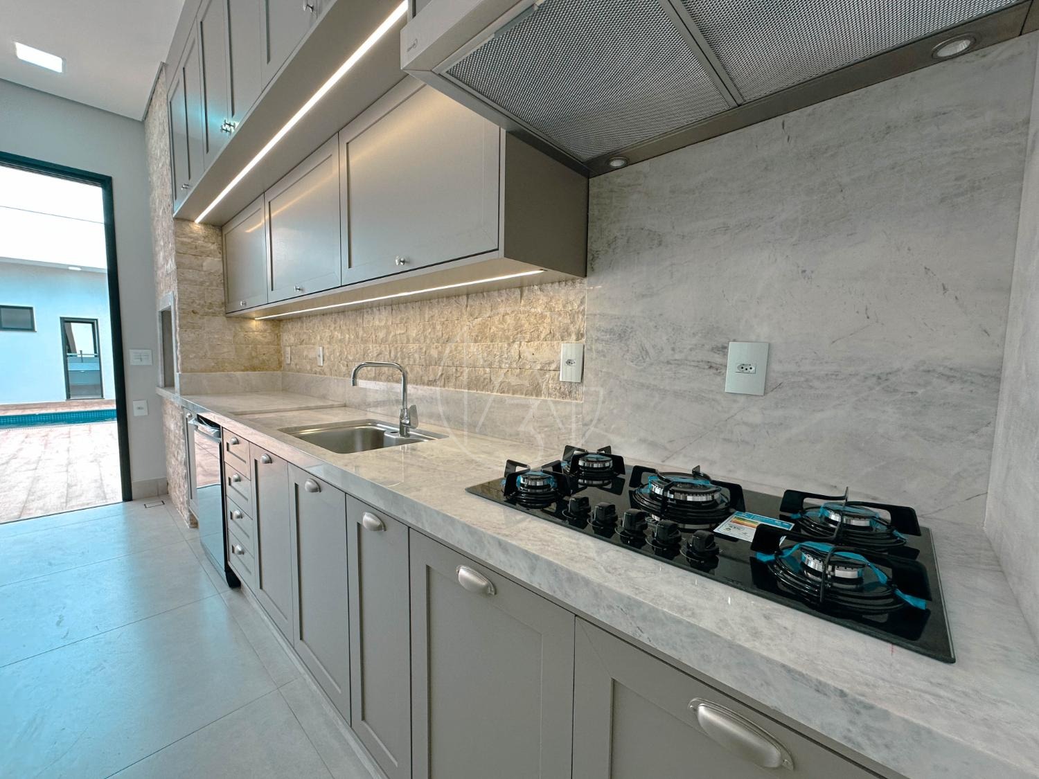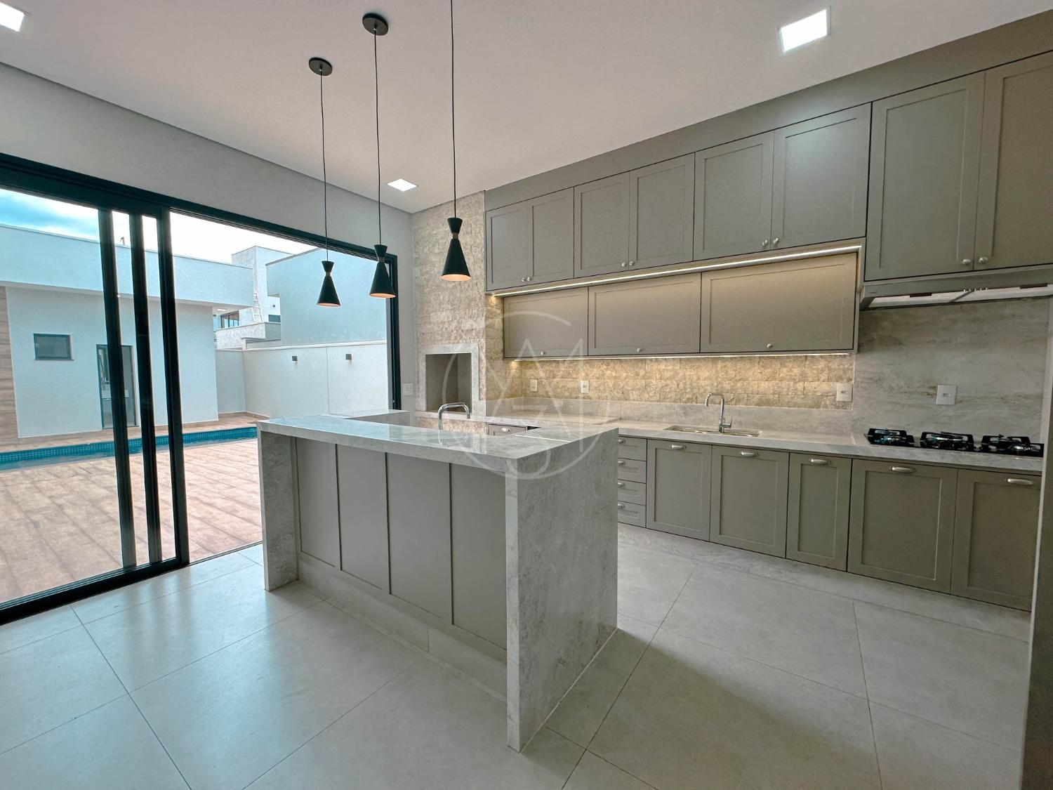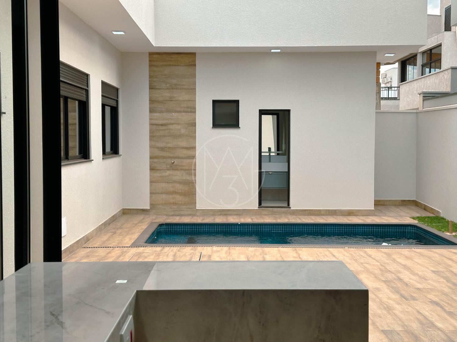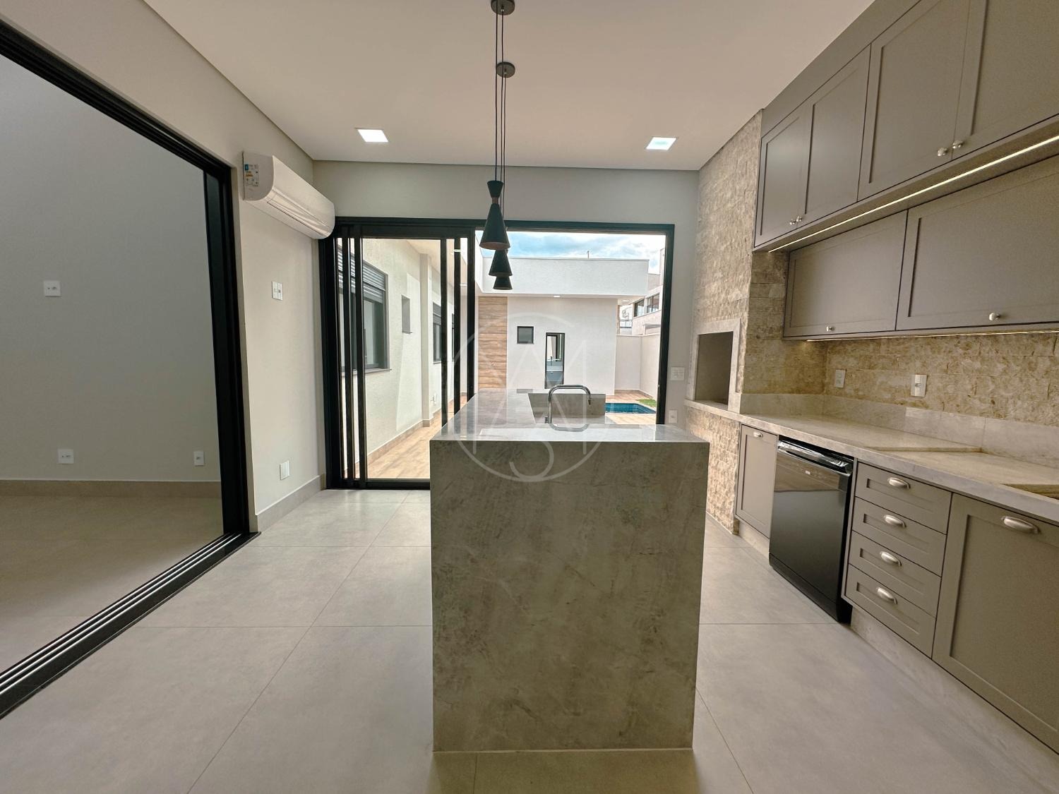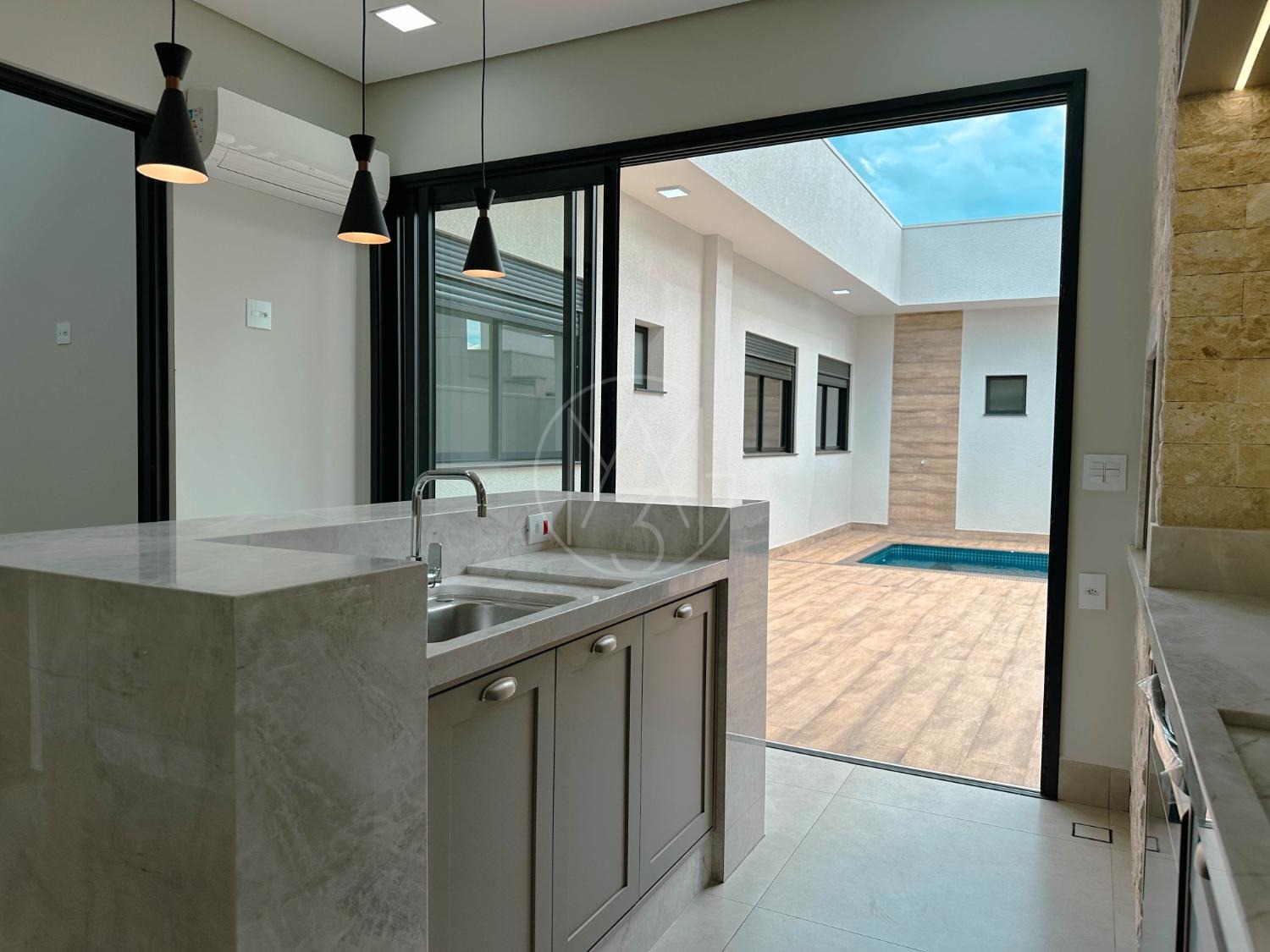 Casa com 3 suítes, lavabo, banheiro externo e piscina. Possui ar-condicionado em todos os ambientes, persianas automatizadas, móveis planejados nos quartos, banheiros, cozinha e lavanderia. Sala de estar e jantar com pé-direito duplo, cozinha integrada à área gourmet, metais e louças Deca ou Celite, aquecimento solar, garagem para 2 carros com ponto para carro elétrico, sistema de água pressurizada, lava-louças, box e espelhos até o teto. Condomínio com salão de festas, área de convívio, espaço pet, segurança 24h, guarita, quadra poliesportiva, quadra de tênis, beach tênis, piscina e playground.