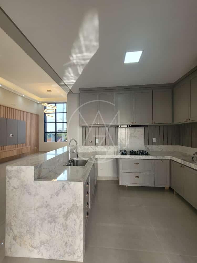 3 Suítes (sendo 1 Master com closet), sala ampla para 2 ambientes com pé direito de 5 metros, integrando com a cozinha moderna e um belo painel planejado.