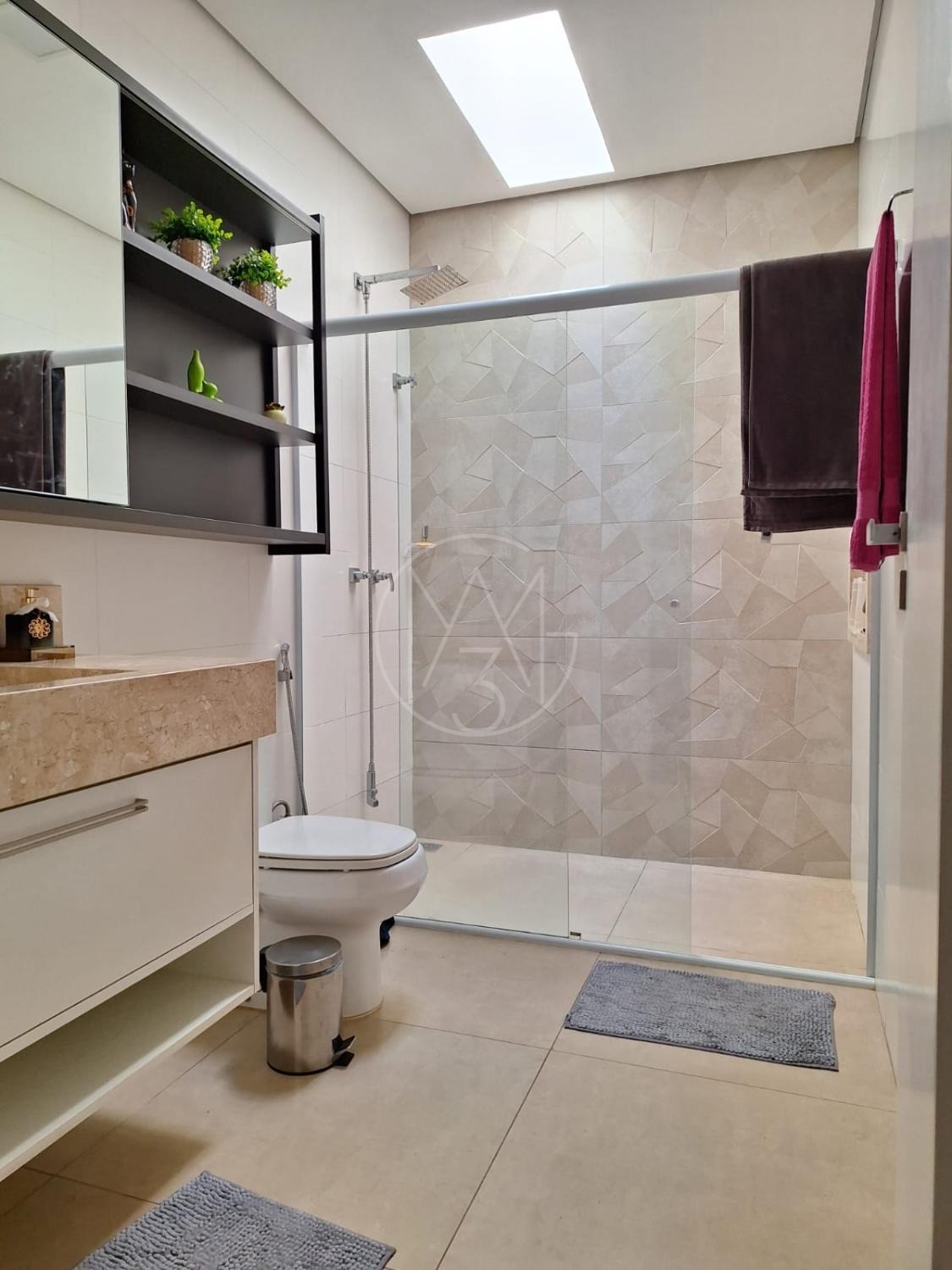 3 dormitórios sendo 1 suíte com closet, todos com ar condicionado, sala com pé direito duplo, academia e brinquedoteca, área gourmet completa com fogão de 5 bocas e forno, lavanderia ampla, despensa, lavabo, banheiro completo na área externa, piscina aquecida, aquecimento solar e fotovoltaico.