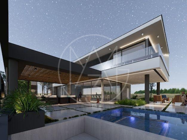 Terreno de 1200m², a área a ser construída será de 700m², serão 4 suítes com closet, 1 com banheira, sala de estar, sala de jantar;, sala de cinema, ampla cozinha, office, gourmet, lavabos e garagem para 4 carros.