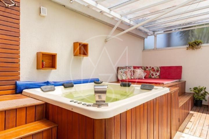 São 440m² de construção, elevador, 5 suítes ricas em armários, sala íntima, sala de estar e jantar integradas, 2 cozinhas e lavabo, além da área gourmet com spa, piscina e banheiro externo. Imóvel com uma linda sacada e 6 vagas de garagem, sendo 3 cobertas!