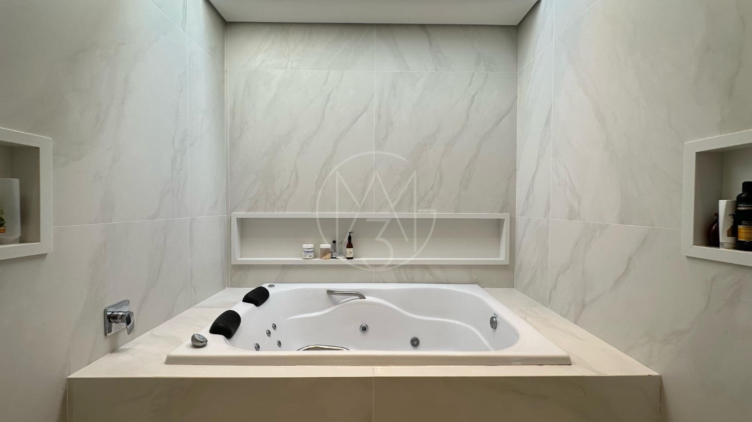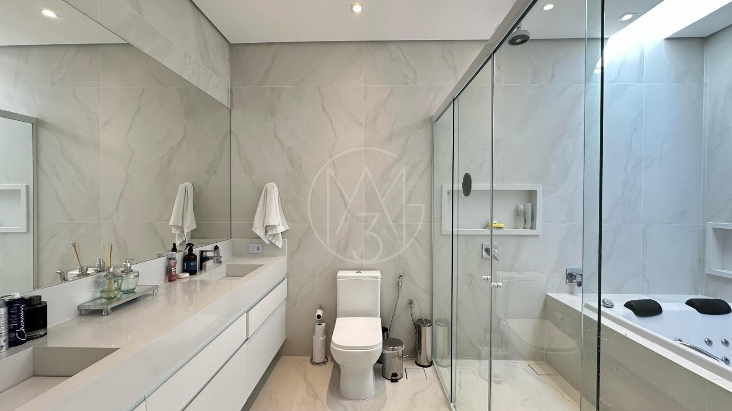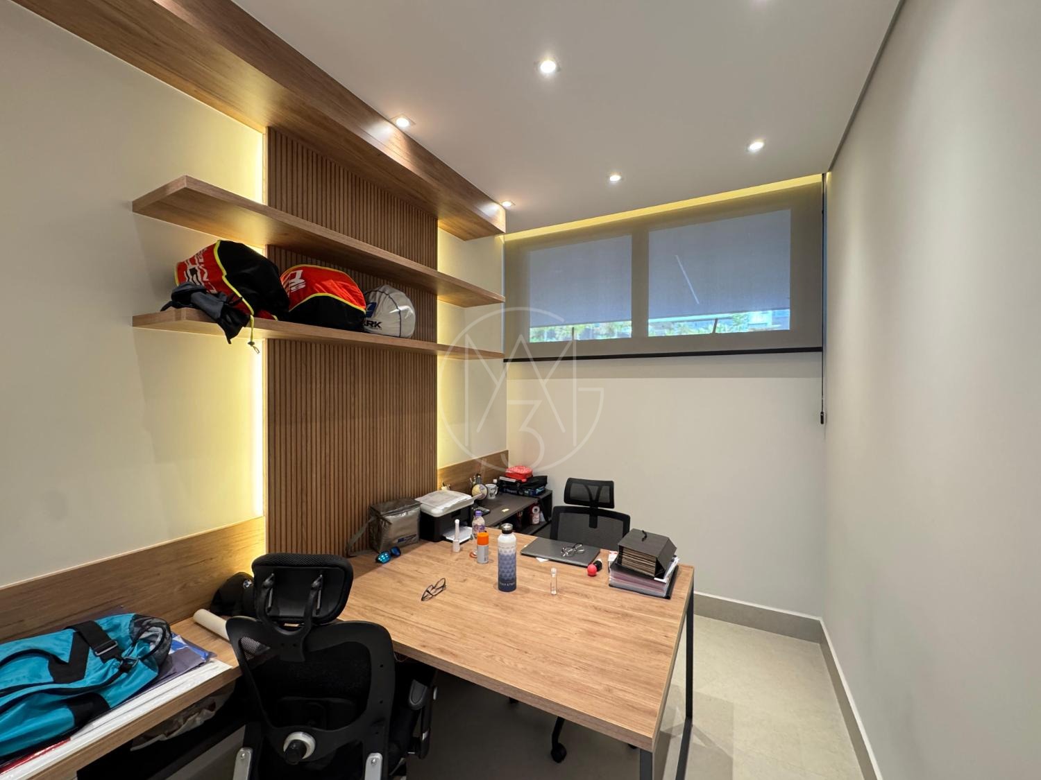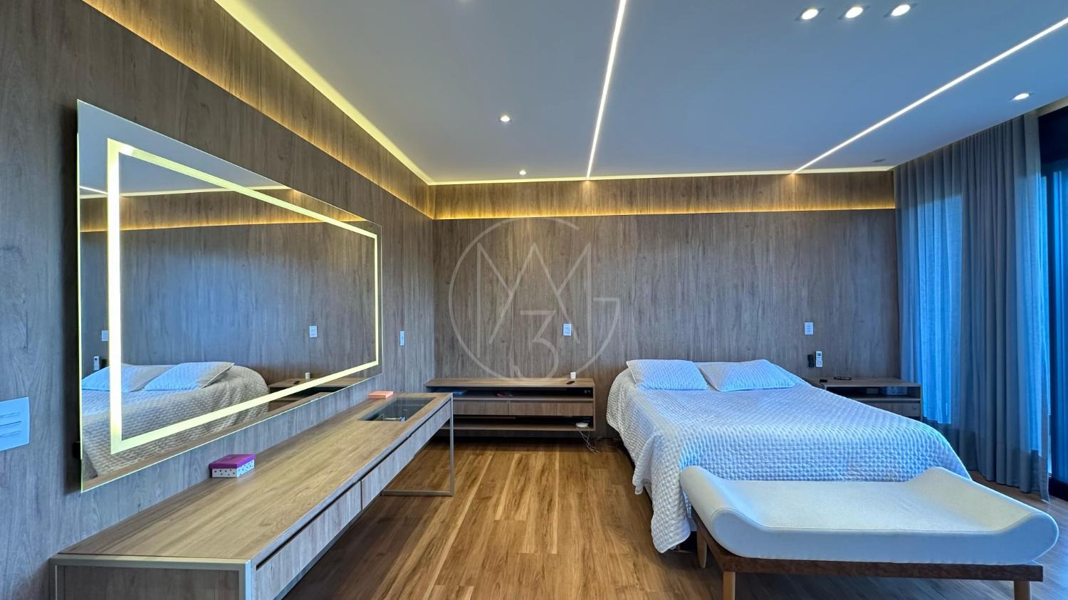 4 suítes todas com móveis planejados e a master com closet e hidromassagem e uma reversível no andar térreo, amplo living para sala de estar e jantar, cozinha integrada com a área gourmet que conta com churrasqueira à gás e coifa, sistema de som integrado com a área da piscina que já é aquecida para momentos de lazer com a família! Além da área de serviço toda planejada, as persianas, iluminação e janelas são automatizadas!