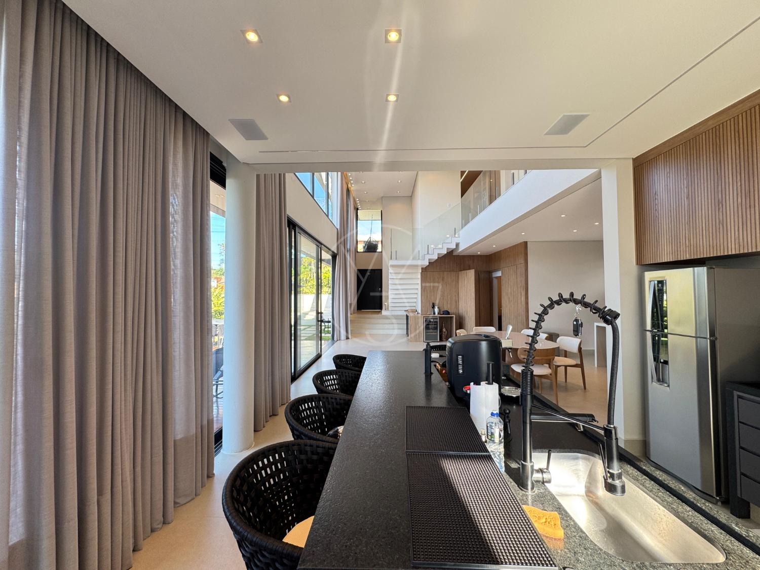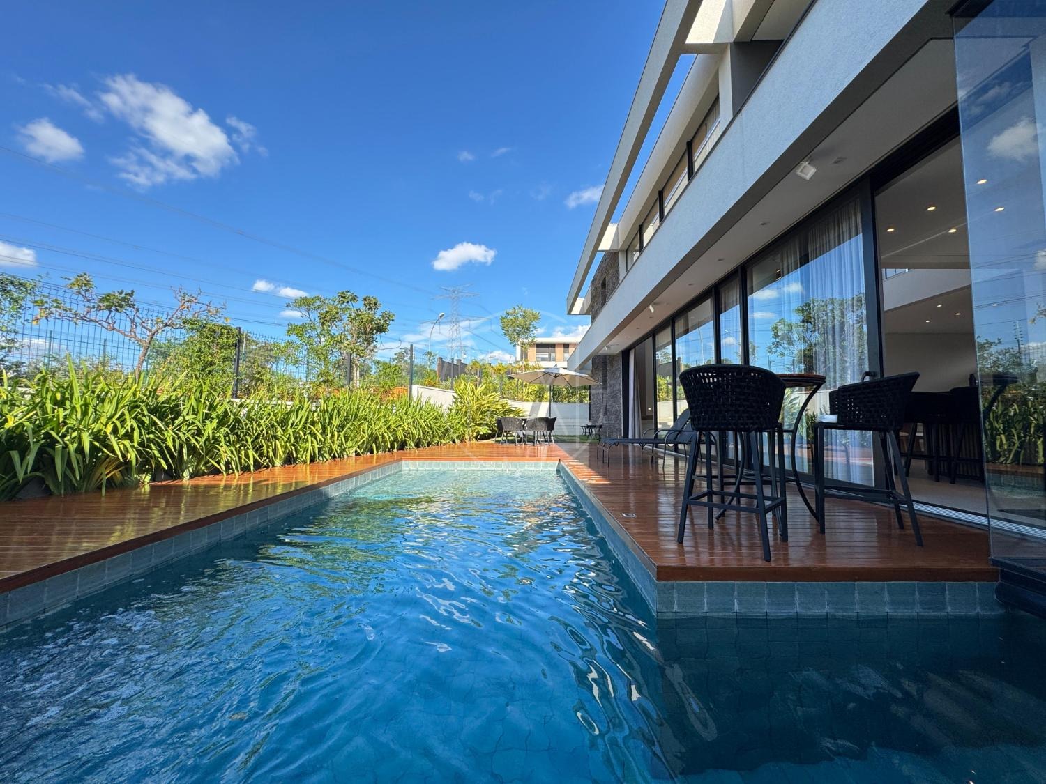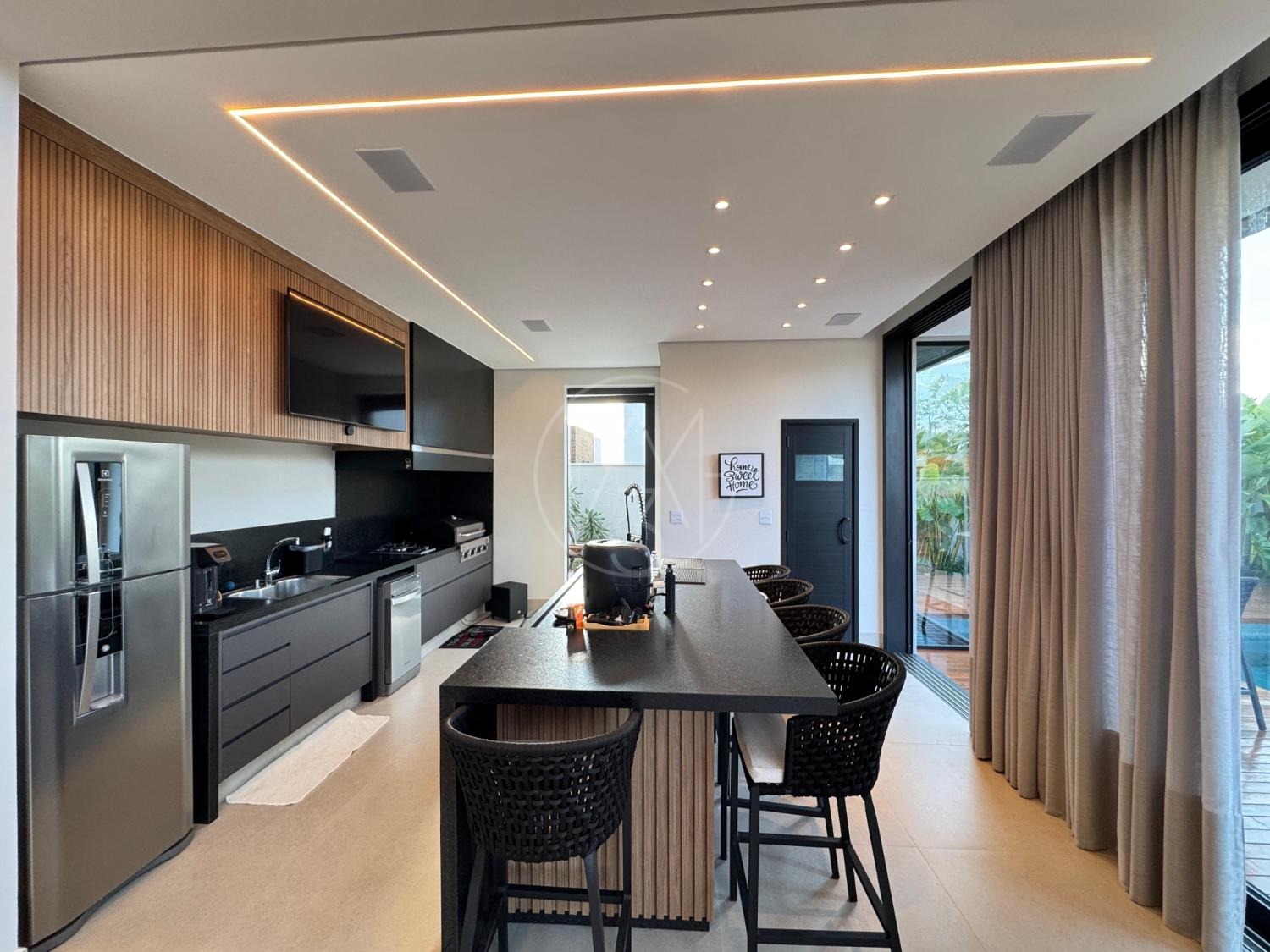 4 suítes todas com móveis planejados e a master com closet e hidromassagem e uma reversível no andar térreo, amplo living para sala de estar e jantar, cozinha integrada com a área gourmet que conta com churrasqueira à gás e coifa, sistema de som integrado com a área da piscina que já é aquecida para momentos de lazer com a família! Além da área de serviço toda planejada, as persianas, iluminação e janelas são automatizadas!