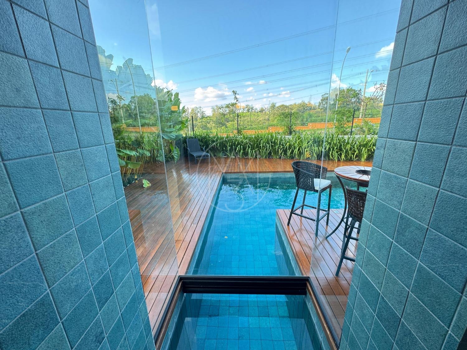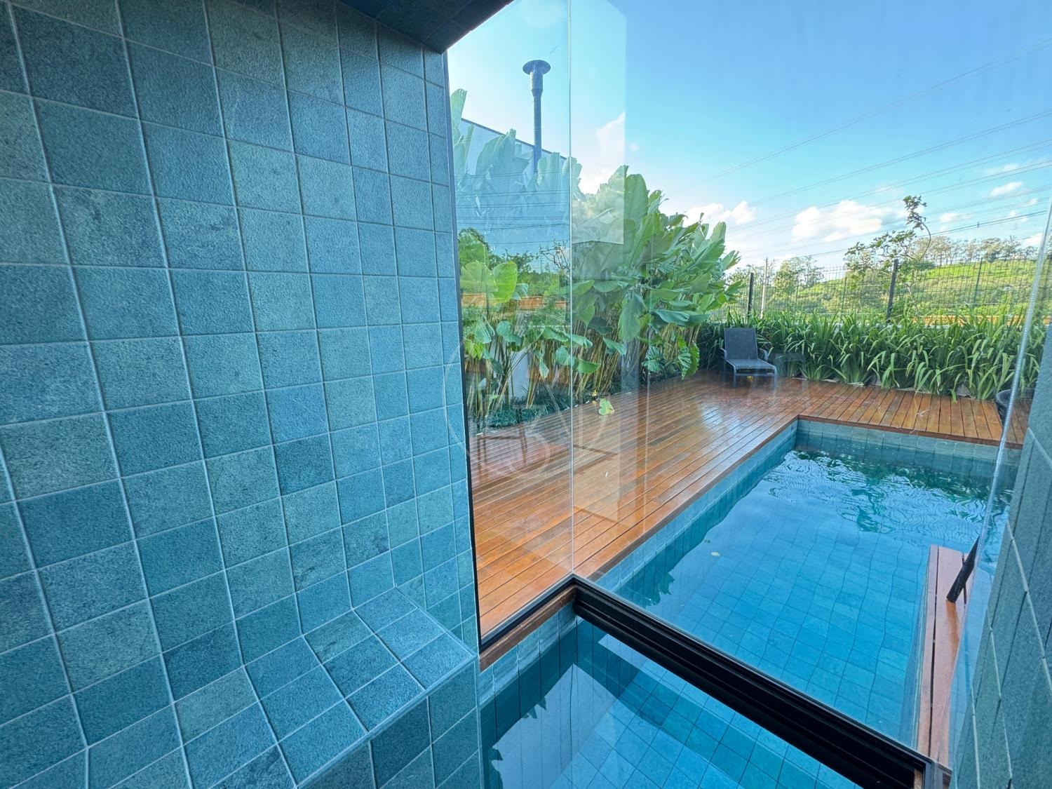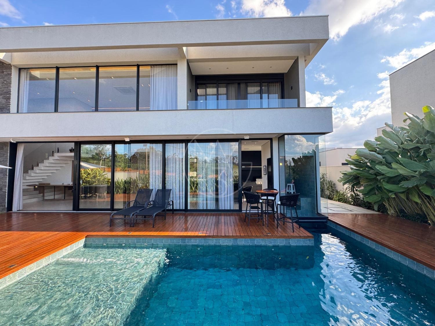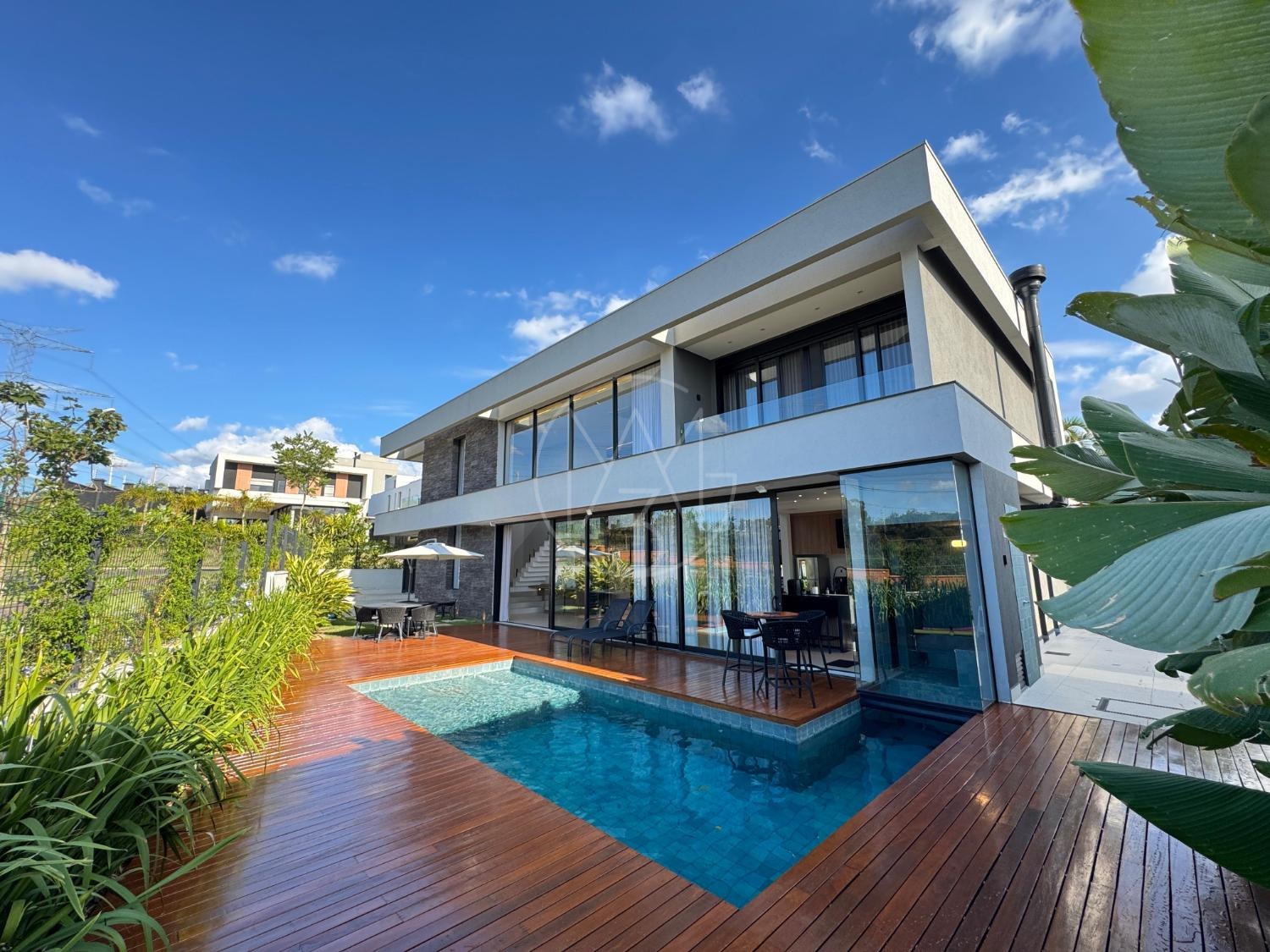 4 suítes todas com móveis planejados e a master com closet e hidromassagem e uma reversível no andar térreo, amplo living para sala de estar e jantar, cozinha integrada com a área gourmet que conta com churrasqueira à gás e coifa, sistema de som integrado com a área da piscina que já é aquecida para momentos de lazer com a família! Além da área de serviço toda planejada, as persianas, iluminação e janelas são automatizadas!
