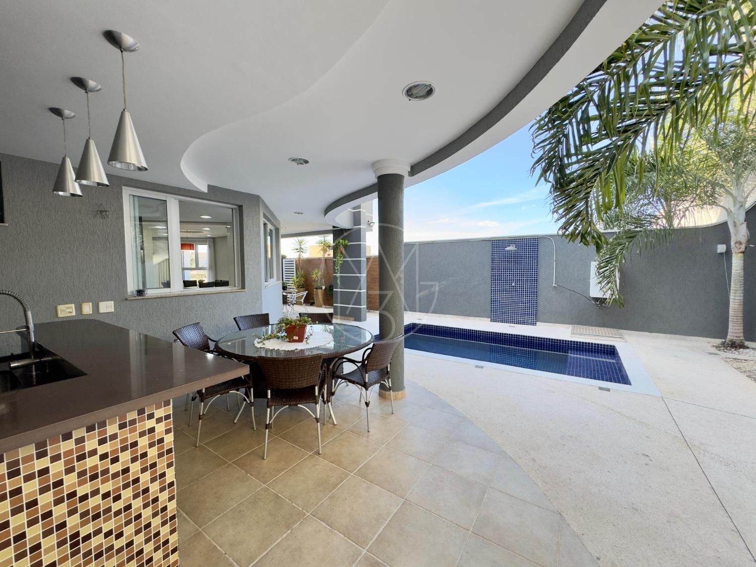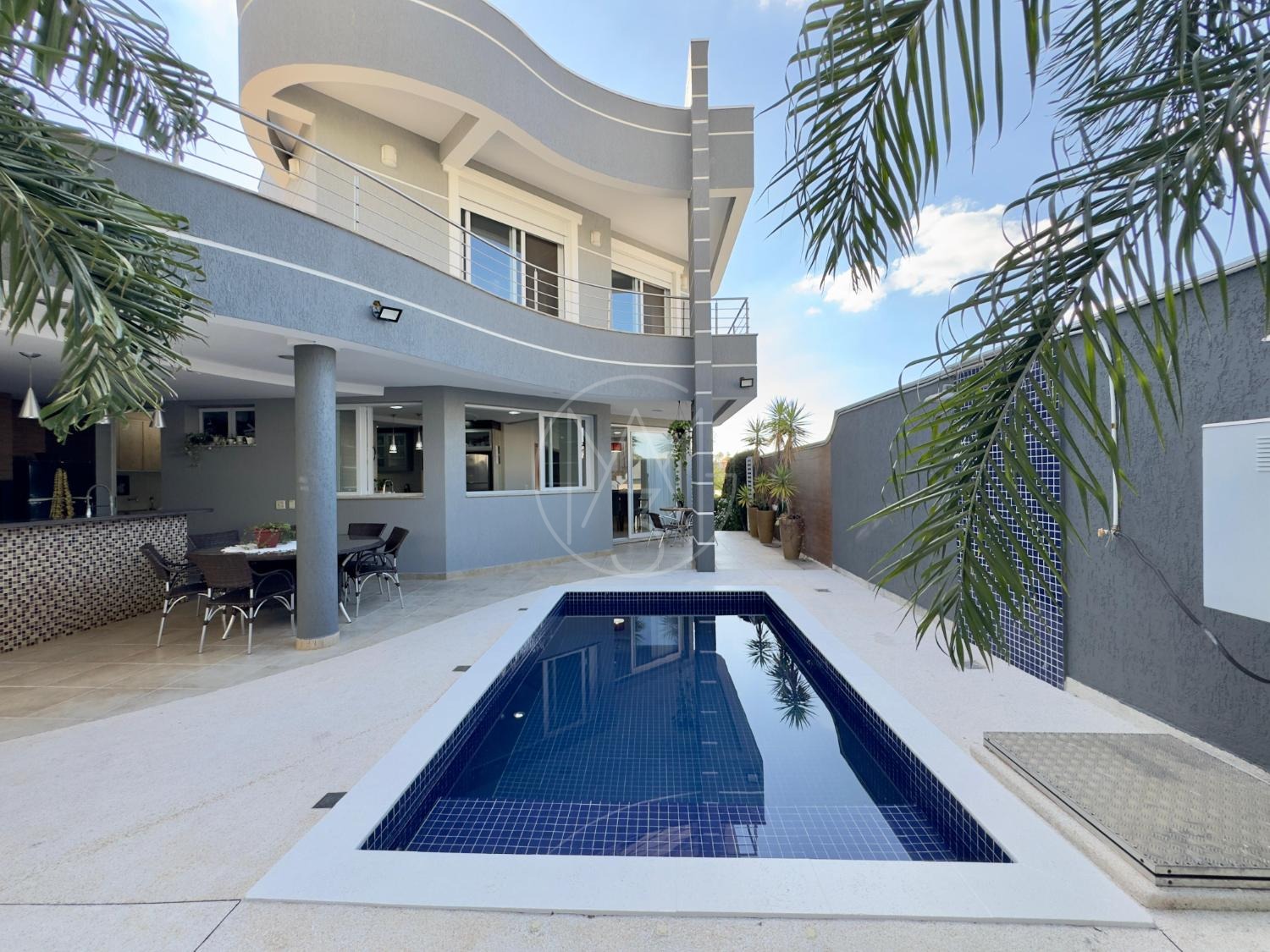 São 450m² de construção, amplo living para 3 ambientes, 4 espaçosas suítes sendo uma com closet, sala home com boas dimensões para momentos em família, cozinha americana com despensa e integrada com a sala de jantar, ampla área de serviço e escritório! O espaço gourmet conta com churrasqueira, fogão à lenha e ampla piscina!