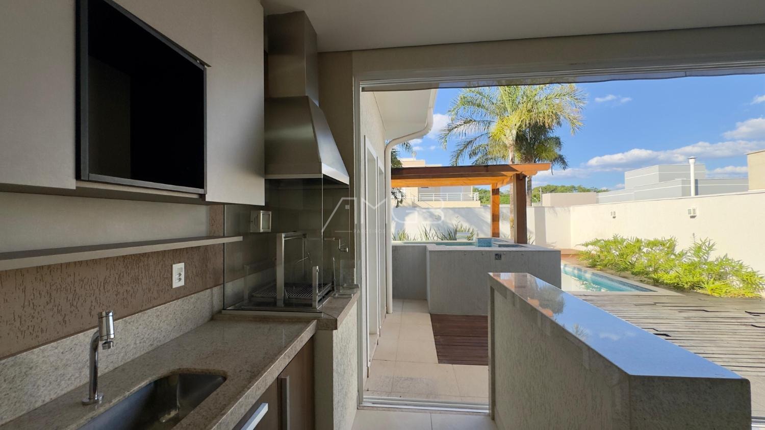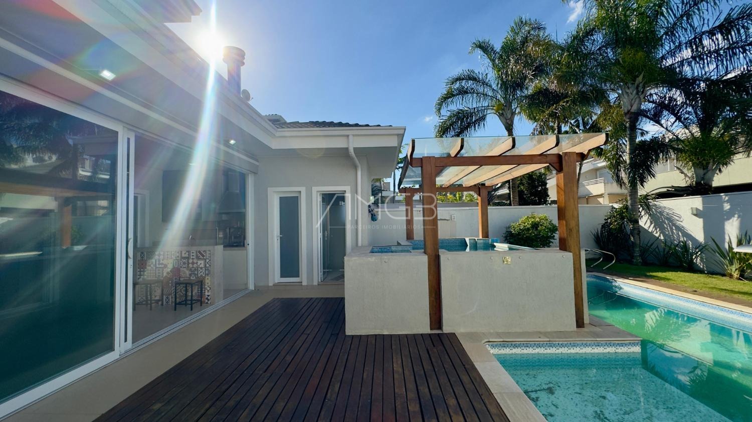 Excelente casa de 244,50m² de construção, são 3 amplas suítes ricas em planejados e aparelhos de ar condicionado já instalados, espaçoso living para dois ambientes com home theater, área de serviço, cozinha americana planejada, a área gourmet fechada em vidro com churrasqueira e piscina com spa e deck de madeira!