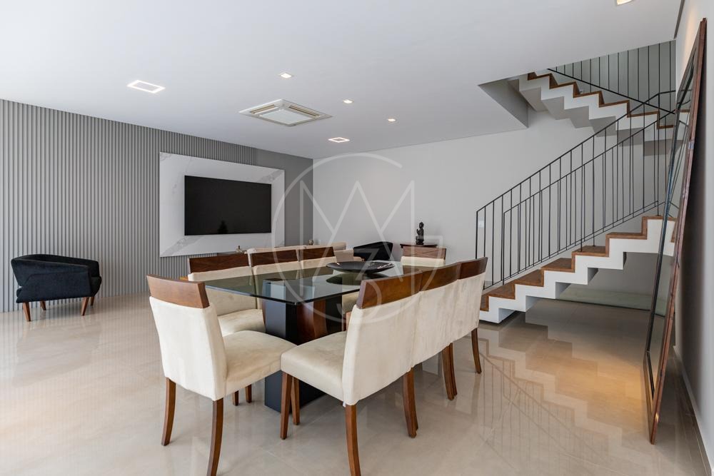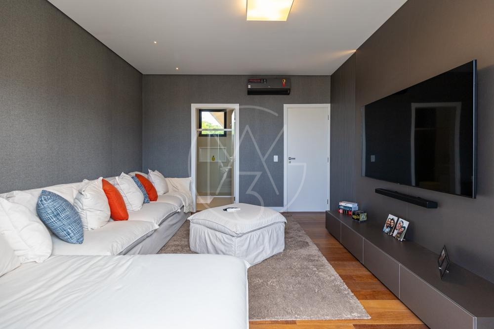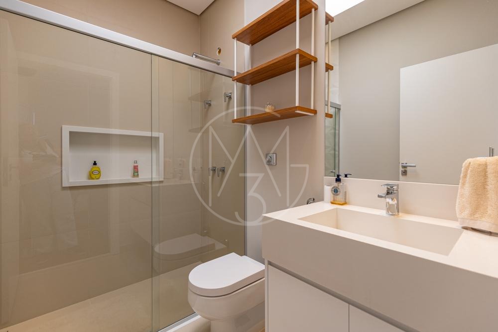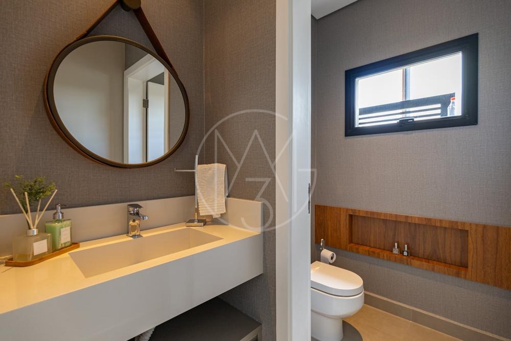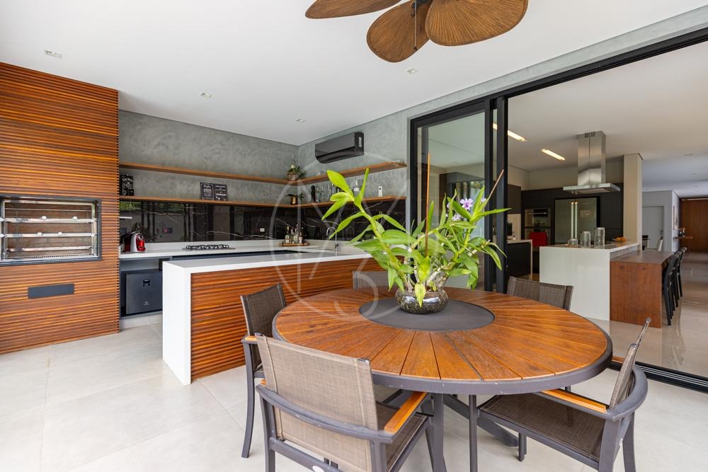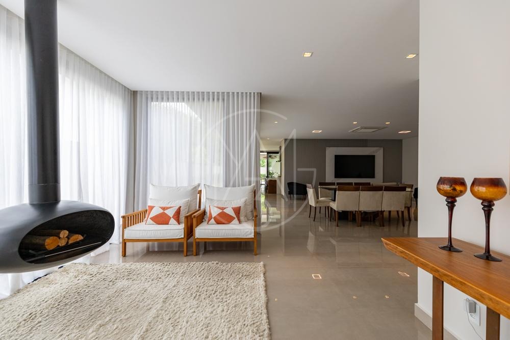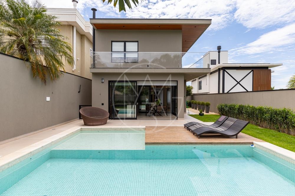 Lindo sobrado com vista permanente para mata, são 470m² de construção, 4 suítes sendo a master com closet e hidromassagem, todas equipadas com ar condicionado e planejados, sala de tv, amplo living para sala de estar e jantar com lareira, escritório, cozinha americana completa em planejados, além da área gourmet com churrasqueira, amplo quintal e piscina com prainha! Vista permanente para área de mata!