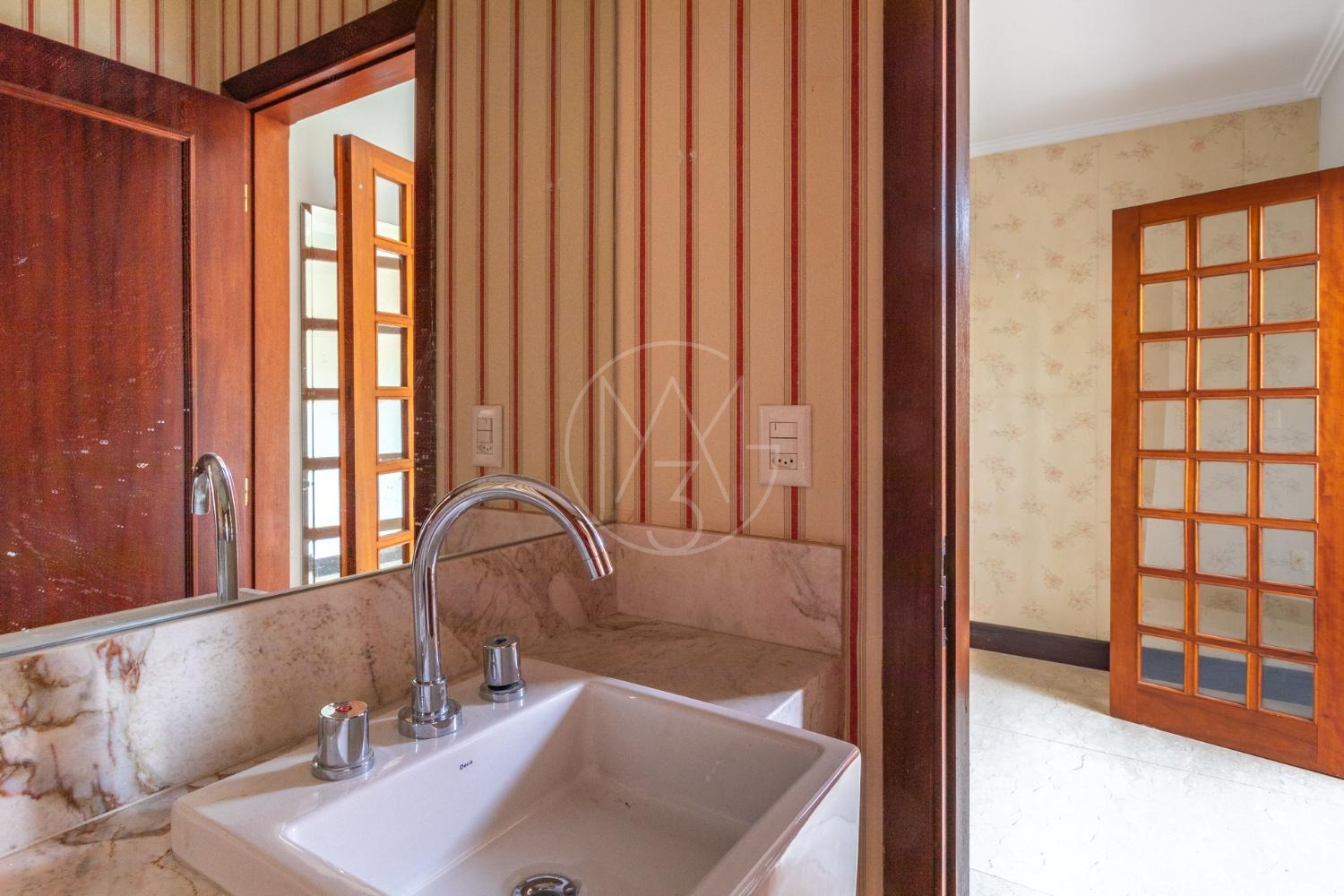 No pavimento superior temos sala íntima, 4 dormitórios, sendo duas suítes e uma suíte master com closet e banheira de hidromassagem, 2dormitórios tipo suíte americana. Além de sala tipo escritório com banheiro de apoio.