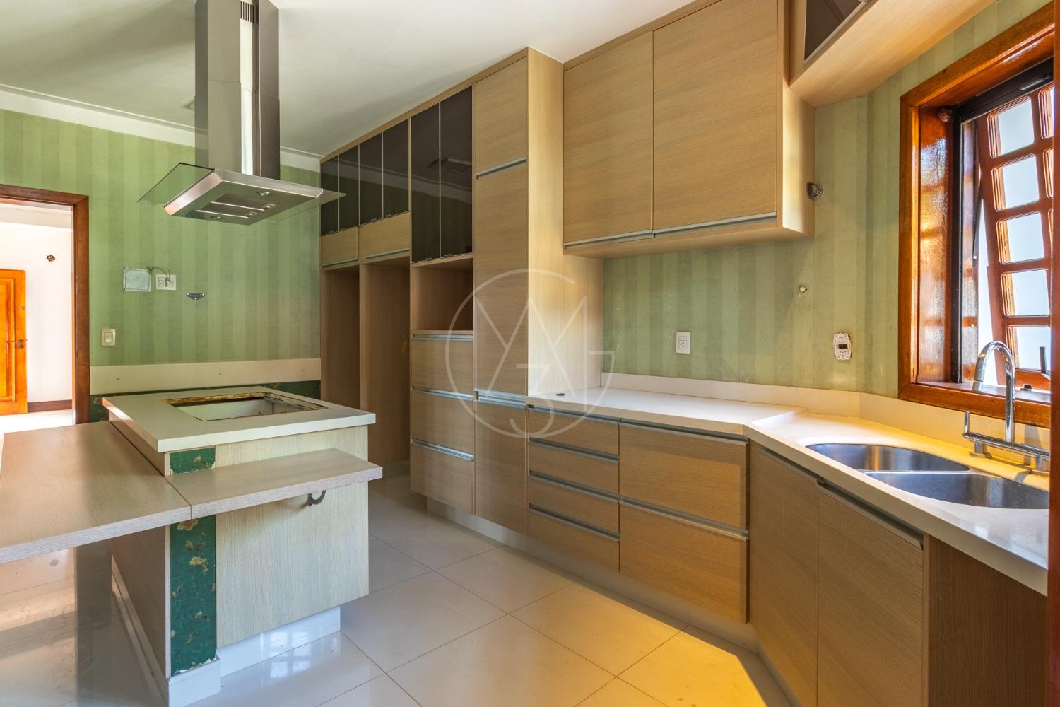 Pavimento térreo conta com sala de estar com lareira, sala de TV, sala de jantar, lavabo, cozinha com armários planejados, área de serviço e dependência de empregada.