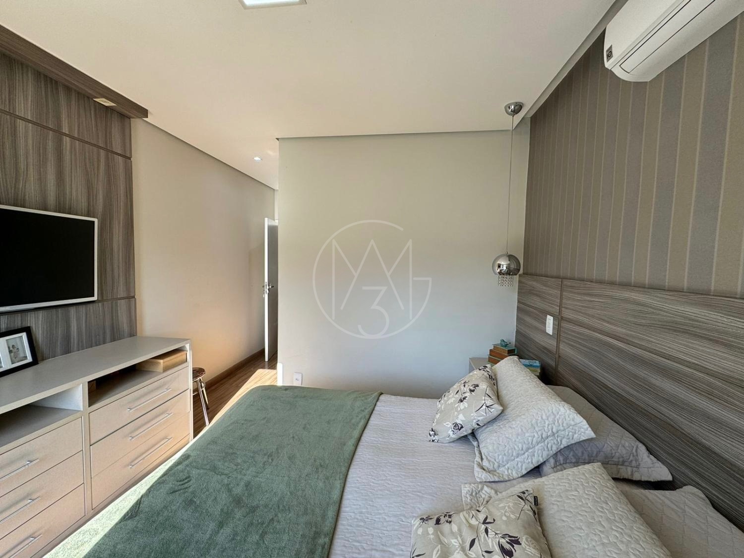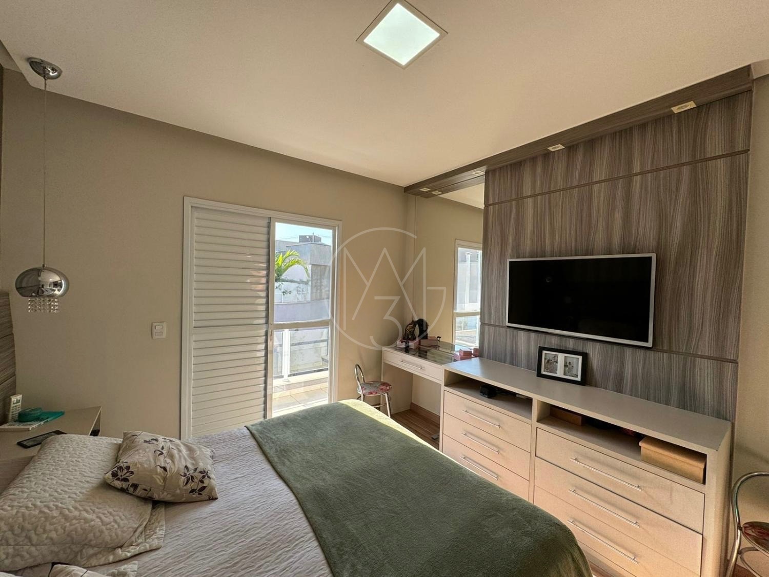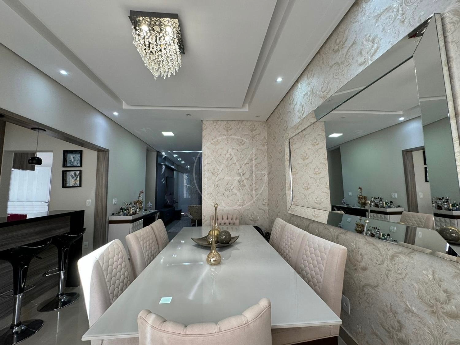 O imóvel conta com 3 dormitórios, sendo 1 suíte com closet, todos com armários planejados de ótima qualidade. Possui banheiro social com box, chuveiro e armários, lavabo, sala de estar com painel de TV, sala de jantar, cozinha americana planejada e lavanderia.