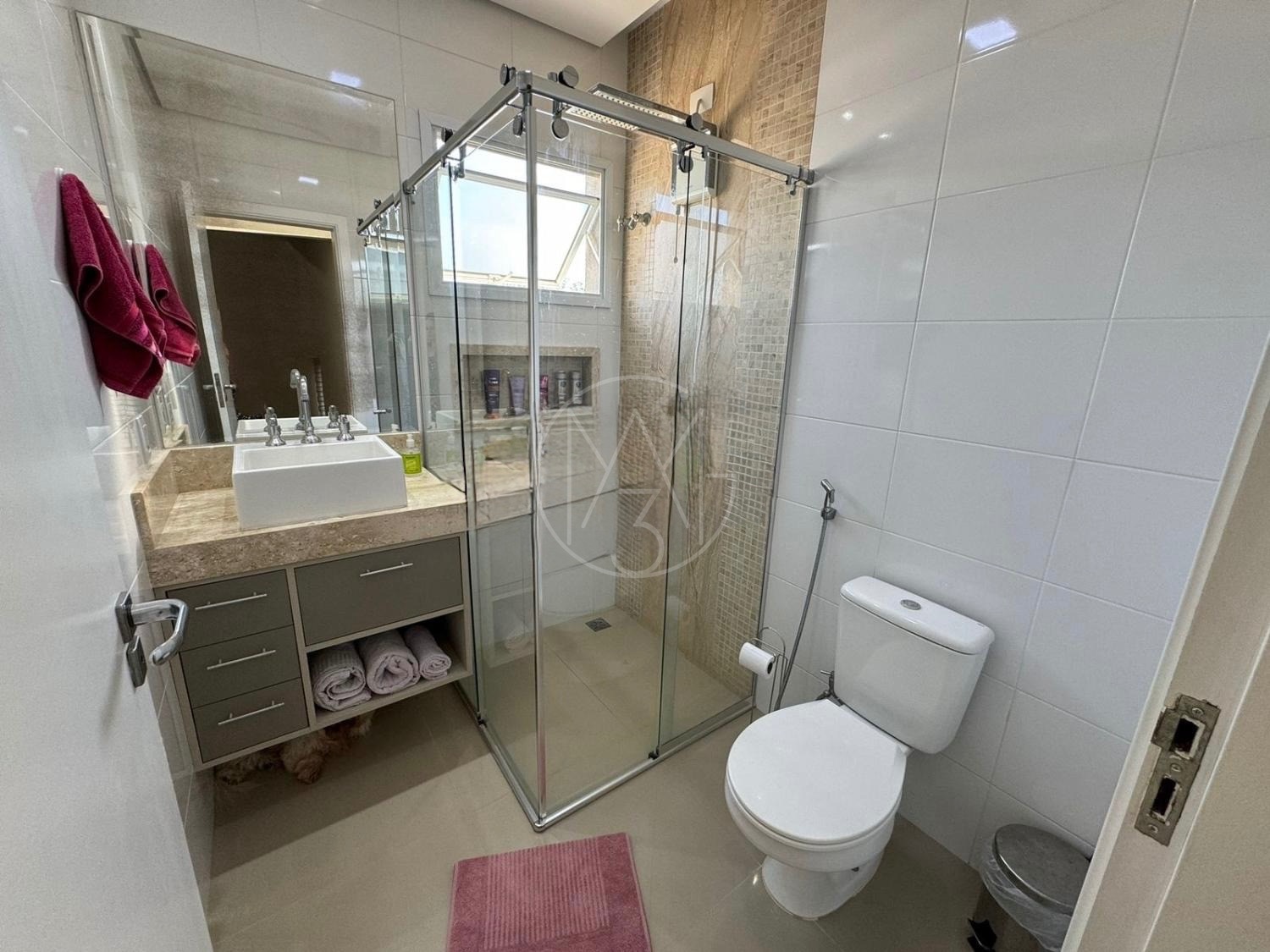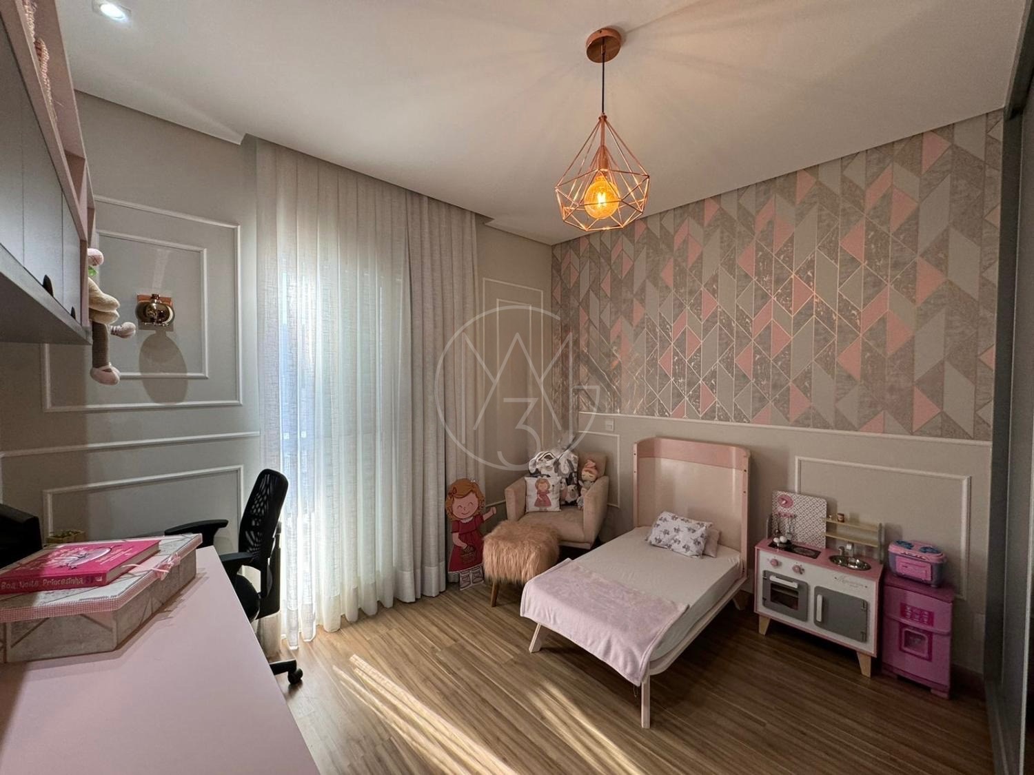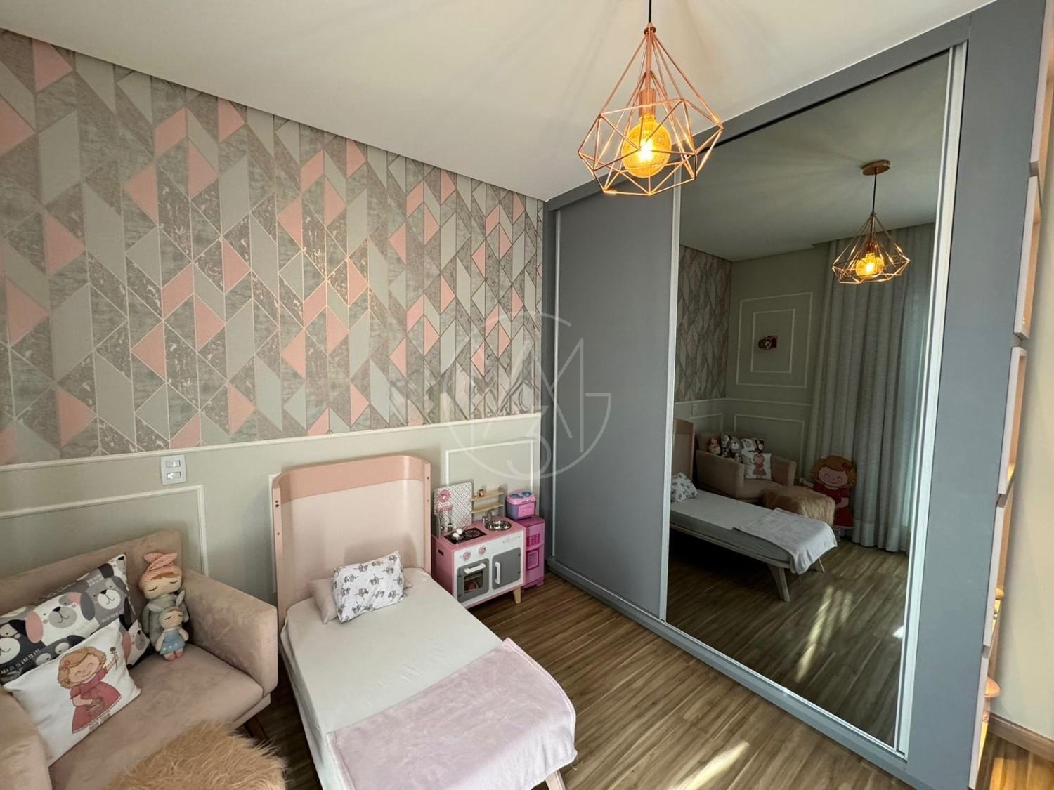 O imóvel conta com 3 dormitórios, sendo 1 suíte com closet, todos com armários planejados de ótima qualidade. Possui banheiro social com box, chuveiro e armários, lavabo, sala de estar com painel de TV, sala de jantar, cozinha americana planejada e lavanderia.