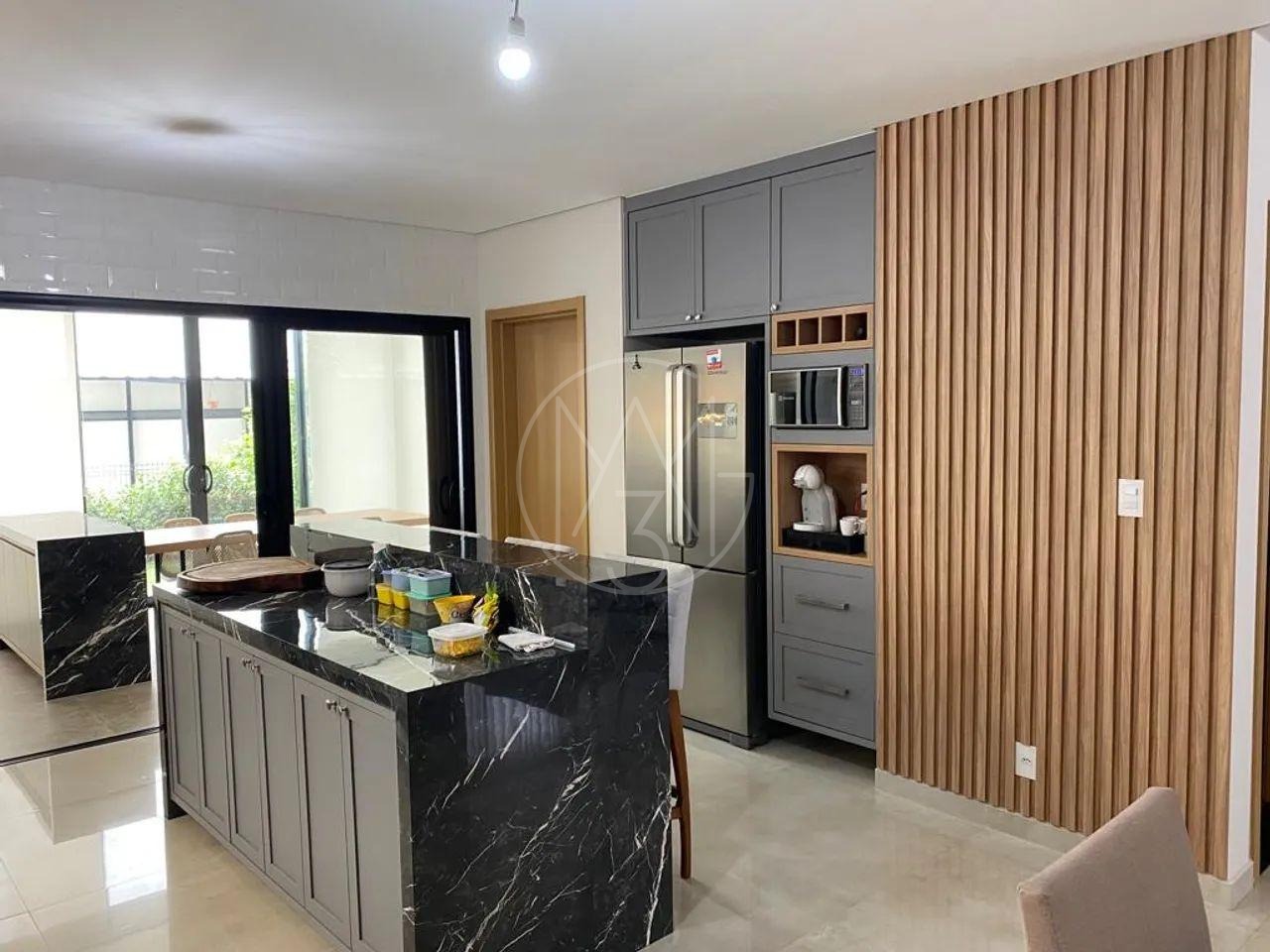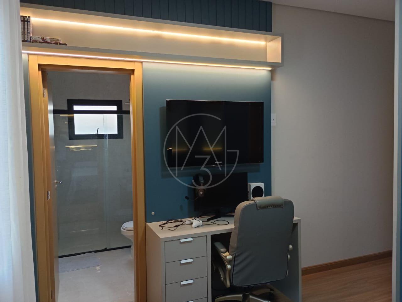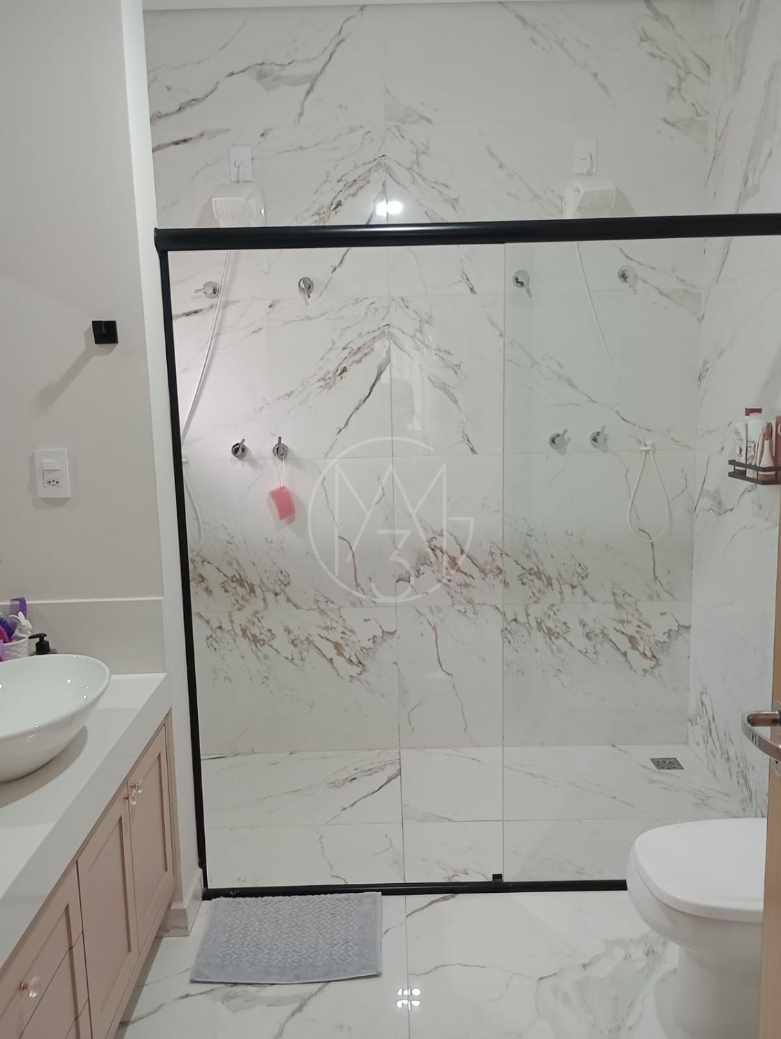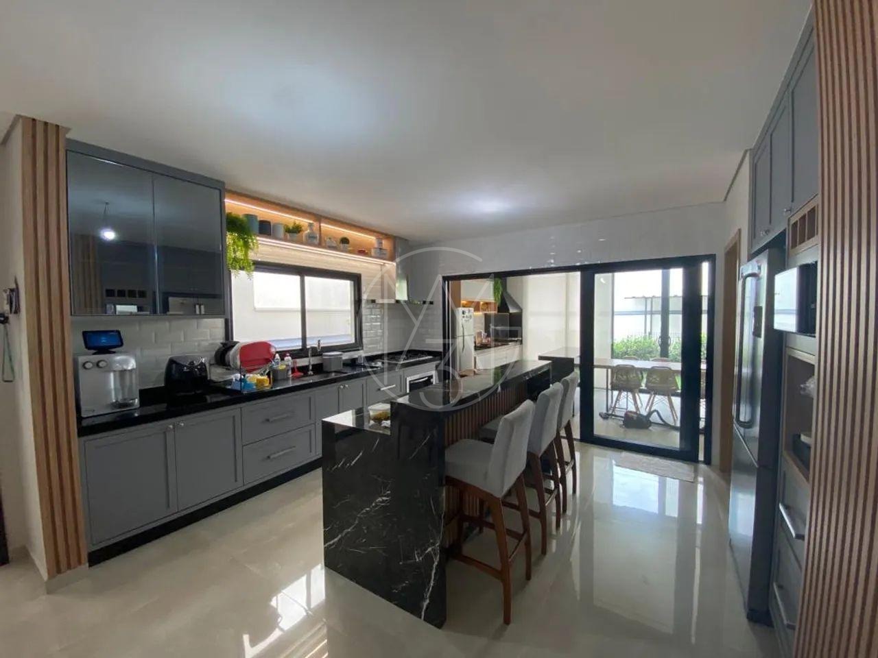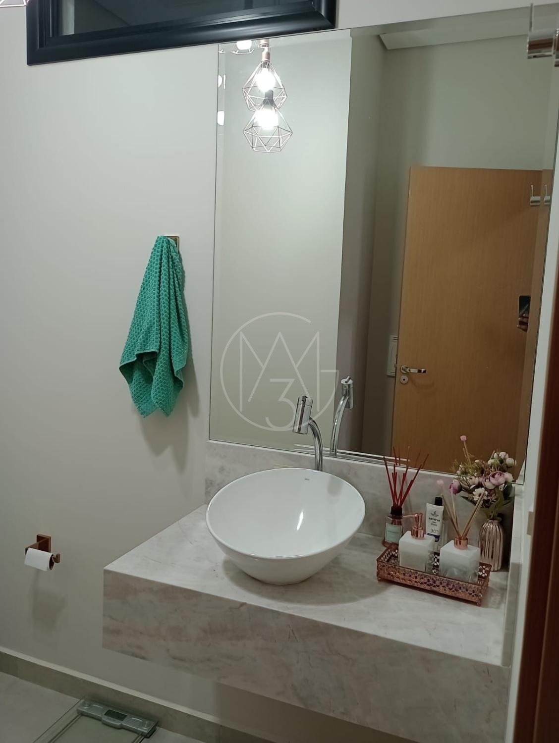 Casa à venda com projeto moderno e funcional, distribuída em dois pavimentos. No térreo, conta com sala de TV/estar, lavabo, sala de jantar, cozinha com ilha e planejados, despensa, área de churrasqueira integrada à cozinha e quintal com persianas e ar-condicionado, banheiro na área externa, lavanderia com planejados e bancada de porcelanato, quintal com canil e pomar de aproximadamente 60 m² e corredor lateral com armário, cobertura e varal.