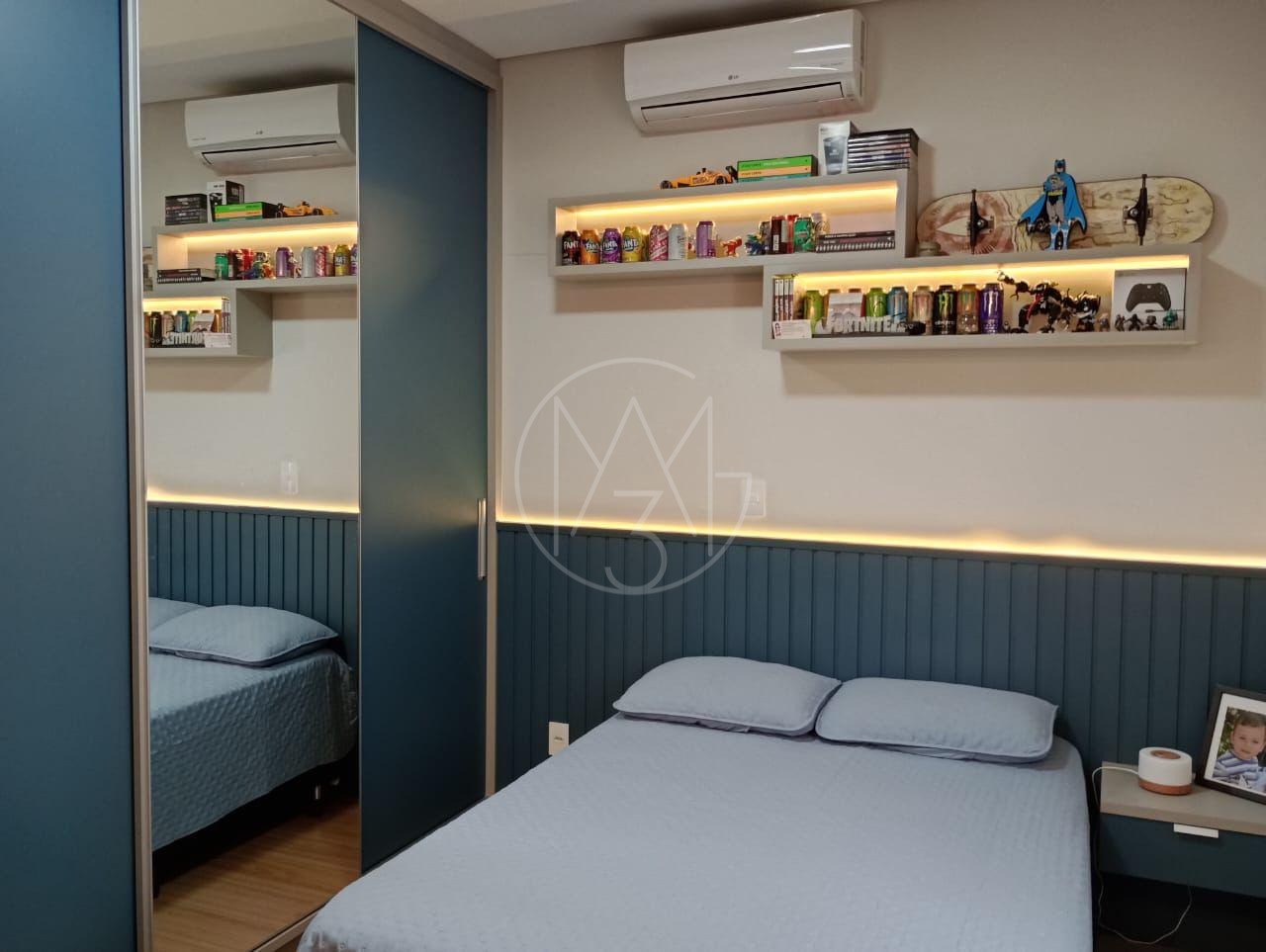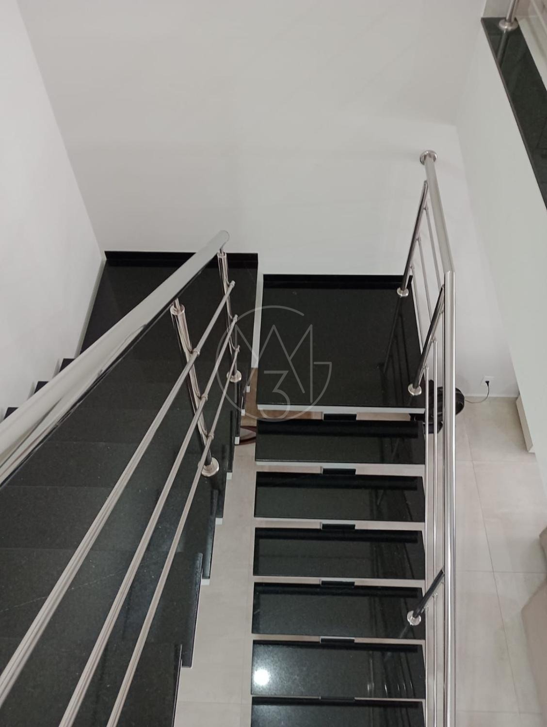 No andar superior, a residência dispõe de 3 suítes com ar-condicionado, sendo a máster com closet e pias/chuveiros duplos, além de sala de TV/escritório. Toda a casa conta com aquecimento solar para chuveiros e torneiras, garantindo conforto e economia.