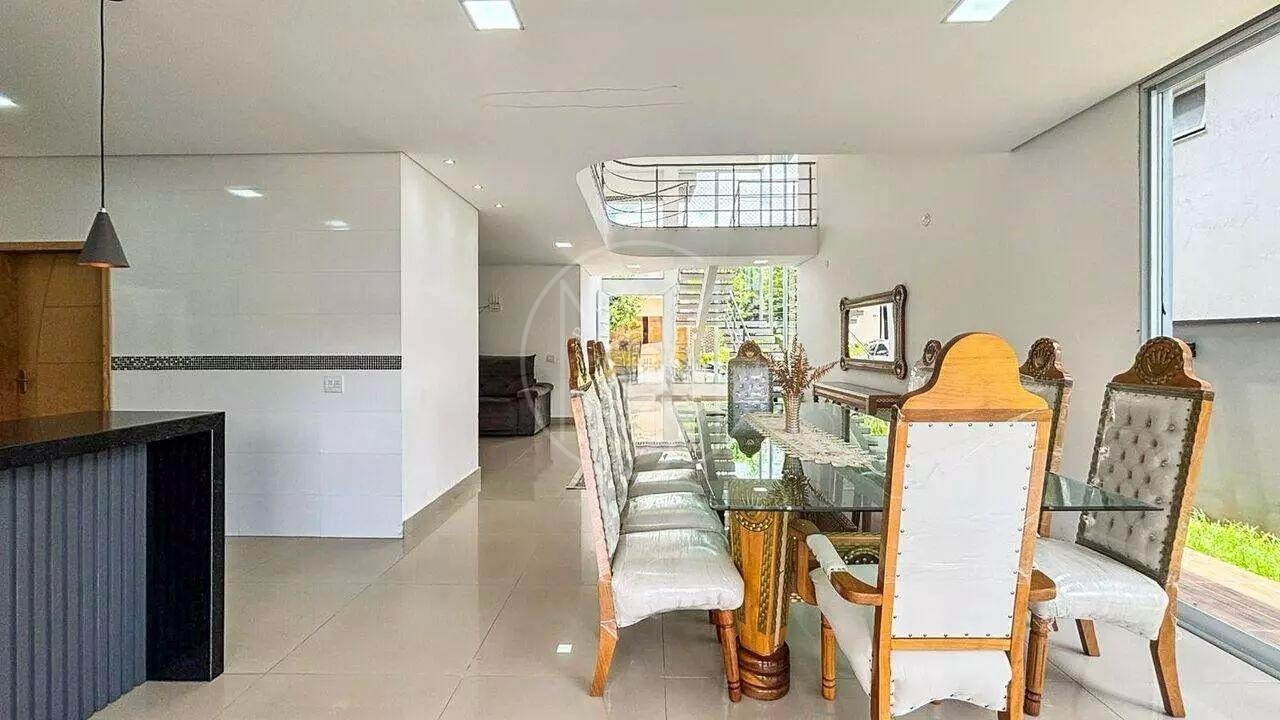 Na área externa, o sobrado oferece lazer privativo, com quintal espaçoso e piscina, ideal para aproveitar os dias de sol com conforto. O imóvel conta ainda com 4 vagas de garagem.