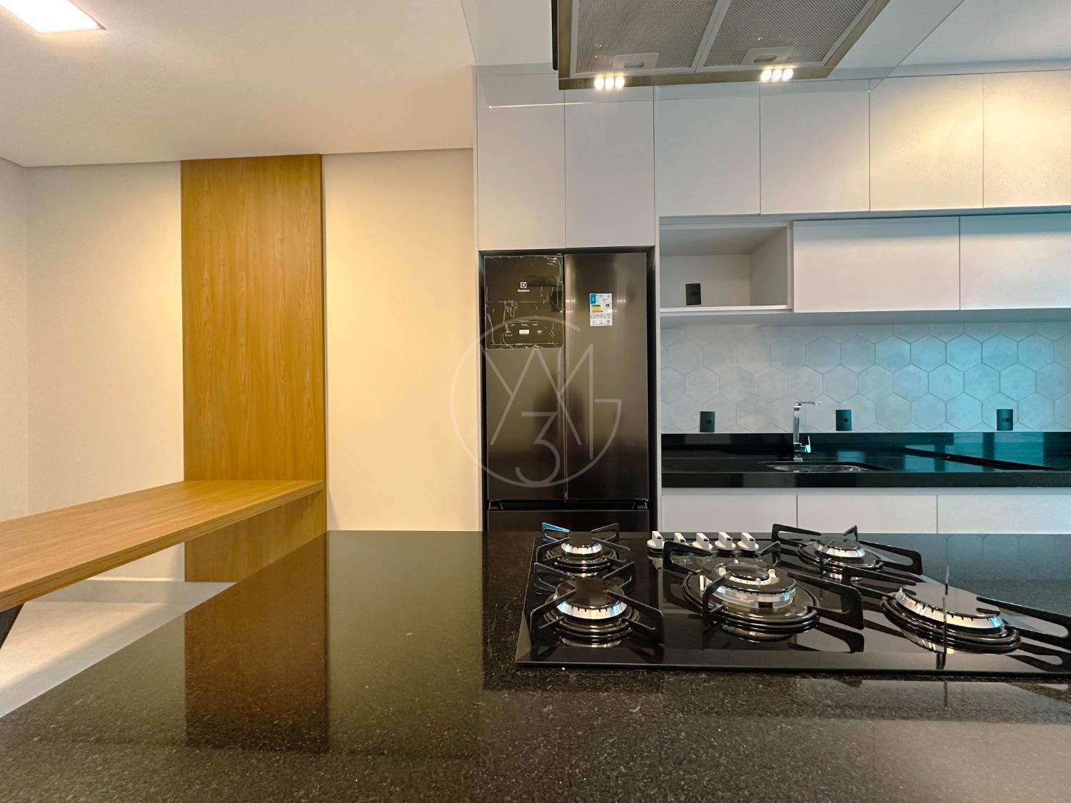 Ampla área gourmet equipada com forno, cooktop e coifa, perfeita para momentos de lazer e confraternização.