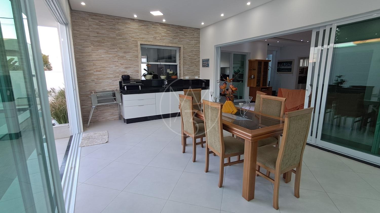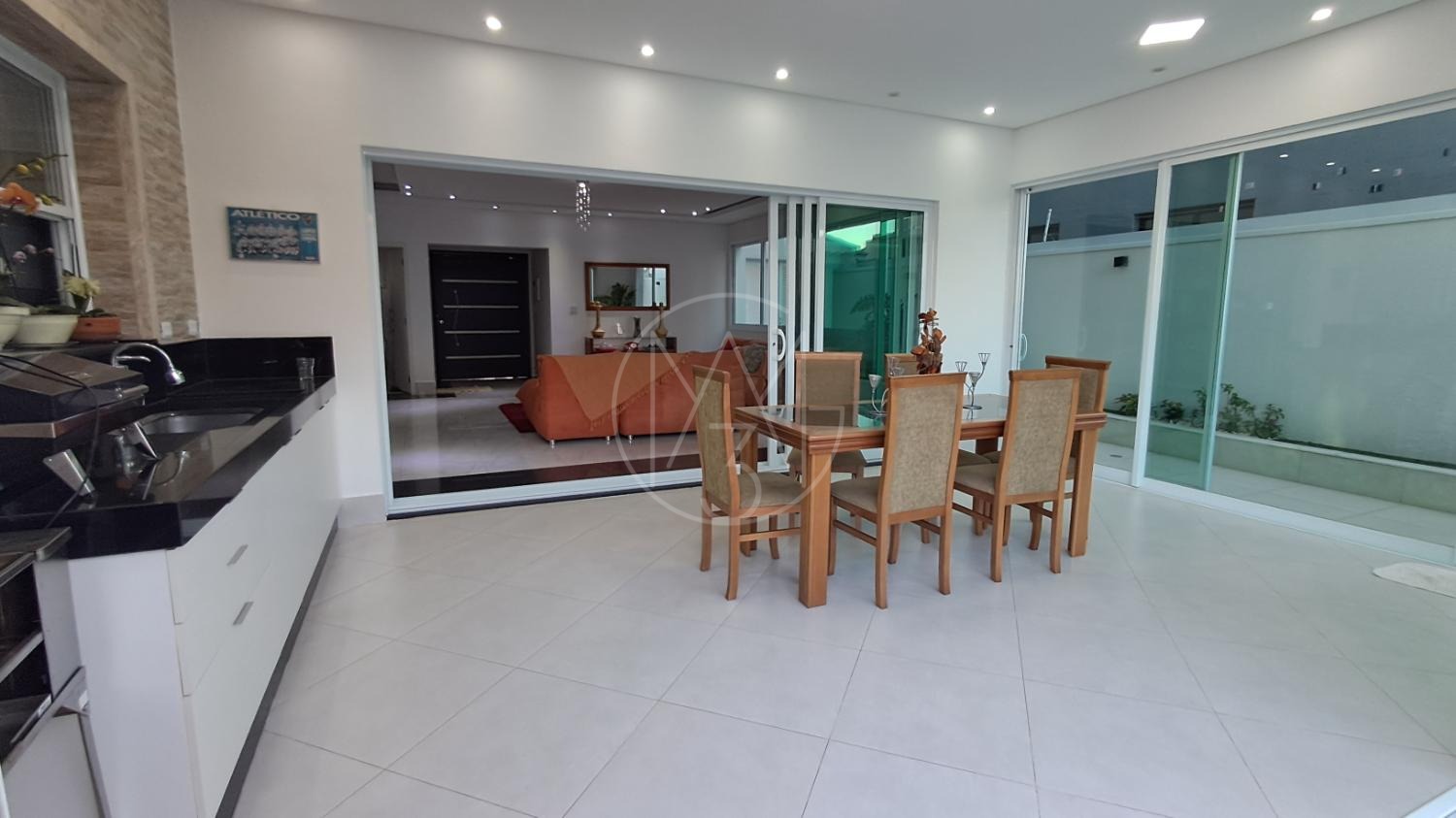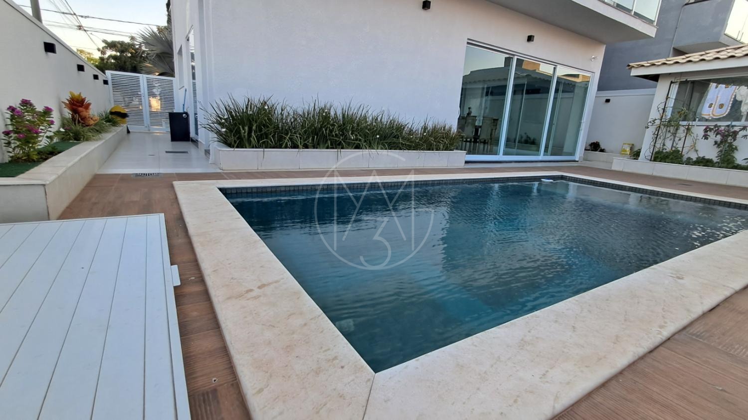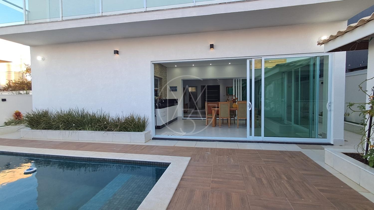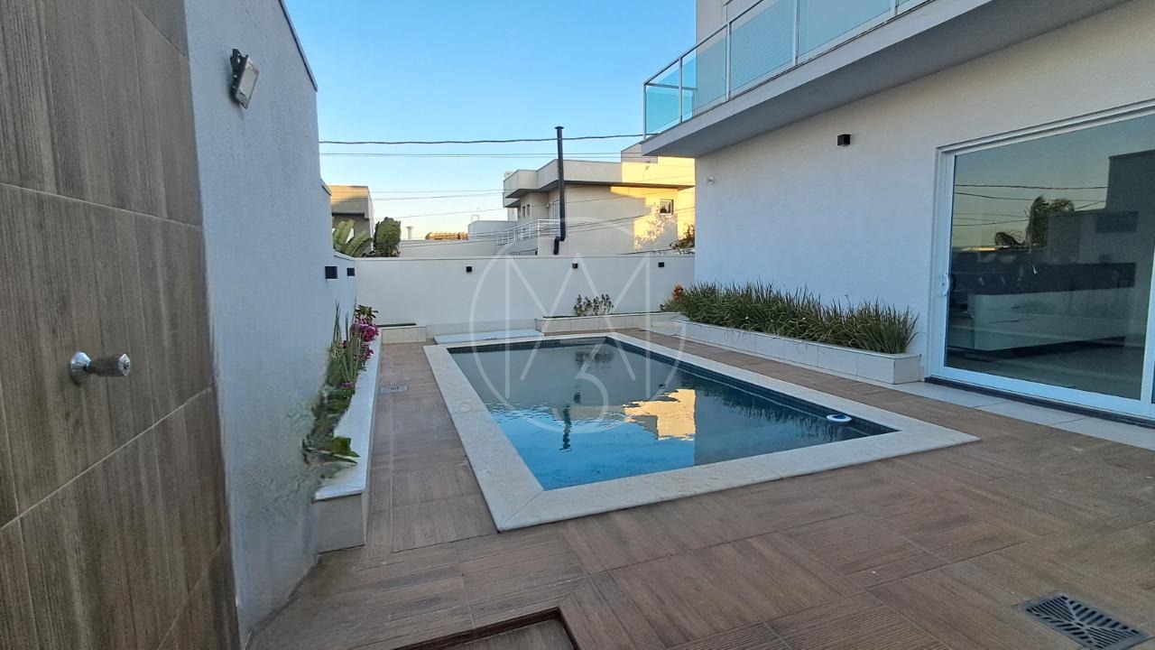 Esse sobrado com 290 m² de construção e excelente padrão de acabamento conta com 4 suítes, totalizando 6 banheiros, sala de estar, sala de TV, cozinha planejada, copa, lavanderia e área gourmet integrada. Possui ainda 4 vagas de garagem, amplo quintal e uma belíssima piscina aquecida de 20 m², com funcionamento através de sistema de placas solares. A casa também conta com sistema fotovoltaico, piso em porcelanato, torneiras monocomando e detalhes modernos que garantem conforto e economia.