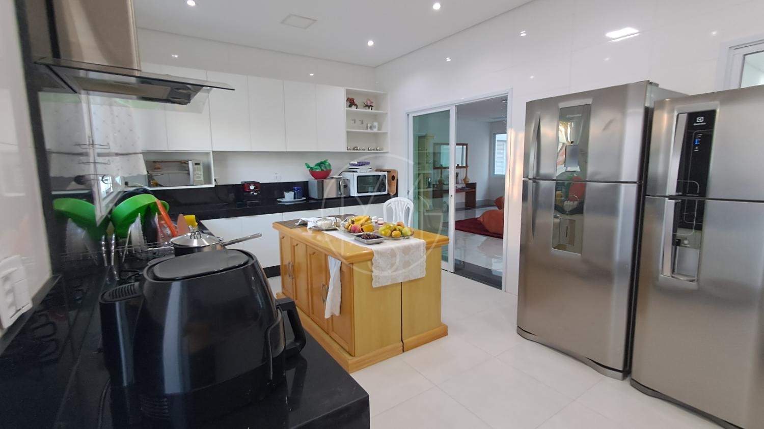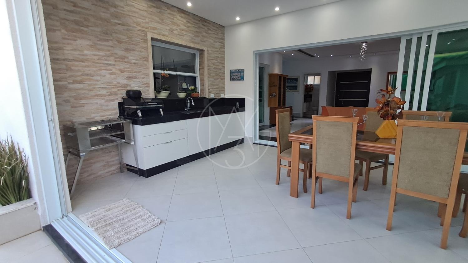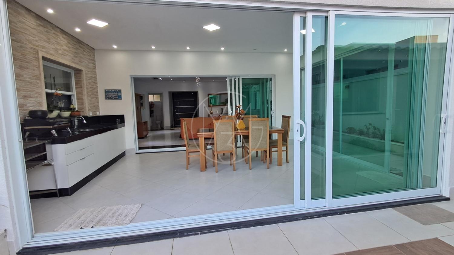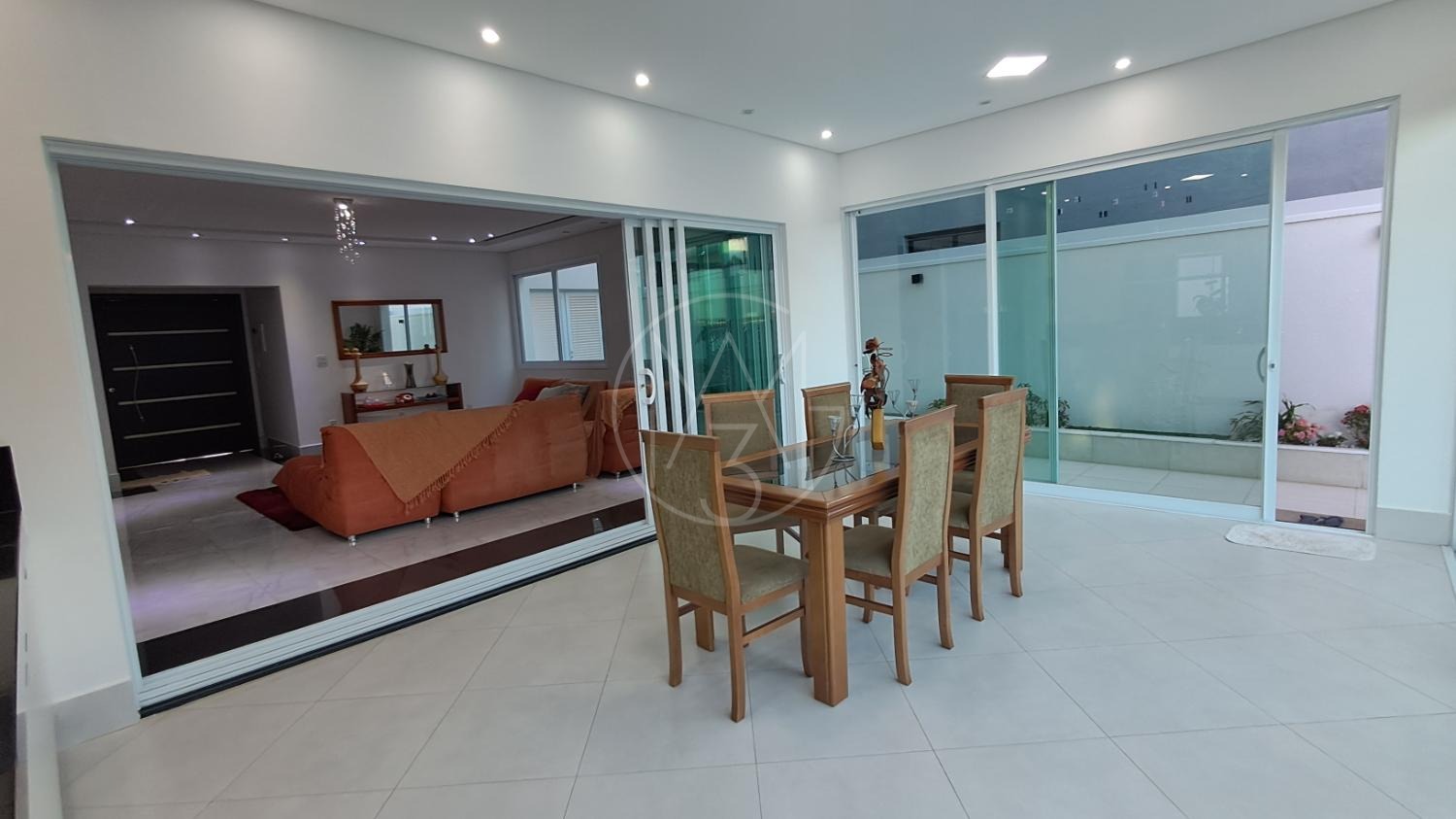 Esse sobrado com 290 m² de construção e excelente padrão de acabamento conta com 4 suítes, totalizando 6 banheiros, sala de estar, sala de TV, cozinha planejada, copa, lavanderia e área gourmet integrada. Possui ainda 4 vagas de garagem, amplo quintal e uma belíssima piscina aquecida de 20 m², com funcionamento através de sistema de placas solares. A casa também conta com sistema fotovoltaico, piso em porcelanato, torneiras monocomando e detalhes modernos que garantem conforto e economia.