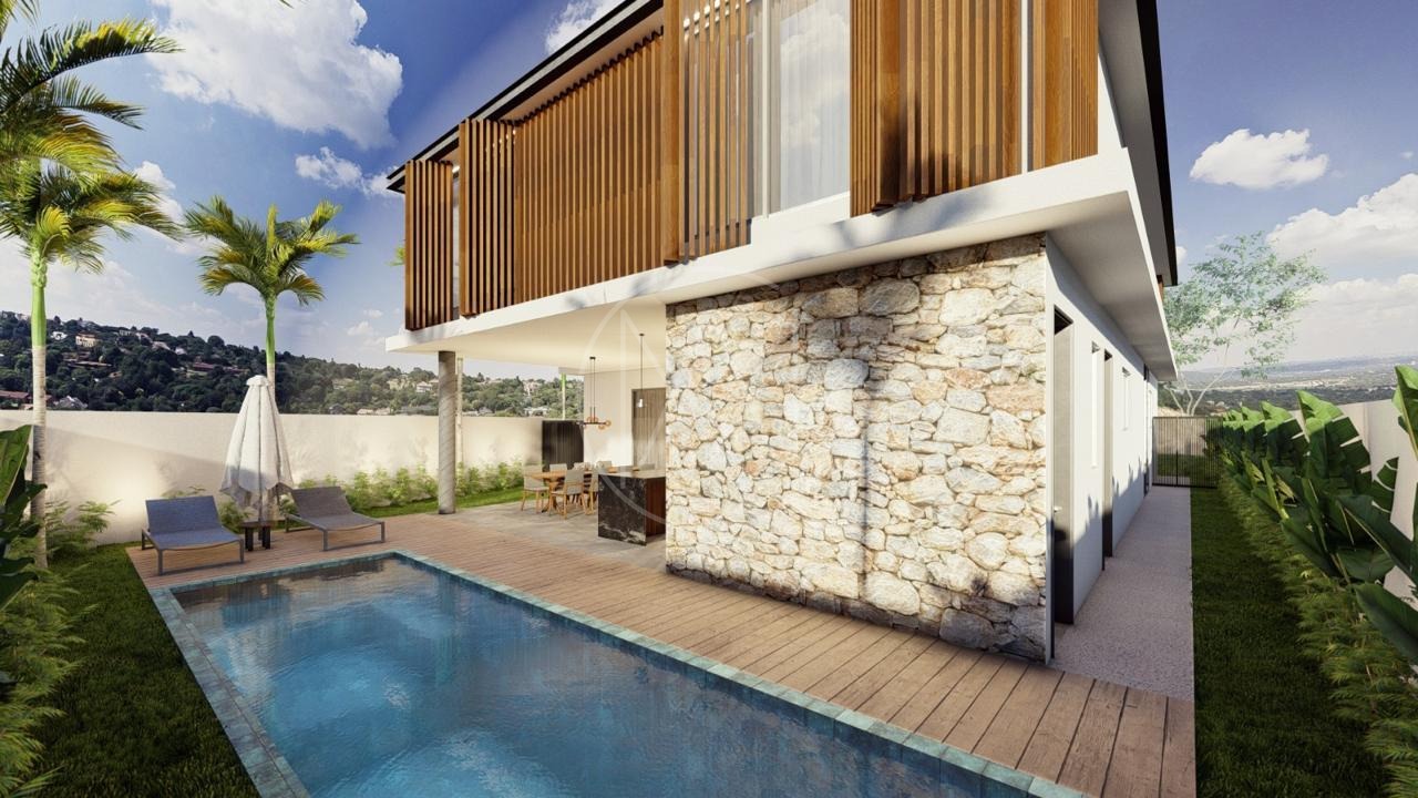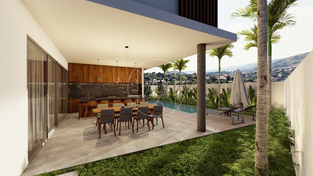 Com 393m² de área construída, essa casa conta com 4 quartos sendo 4 suítes, ambientes integrados, 2 banheiros, lavabo, área gourmet completa com churrasqueira e piscina.