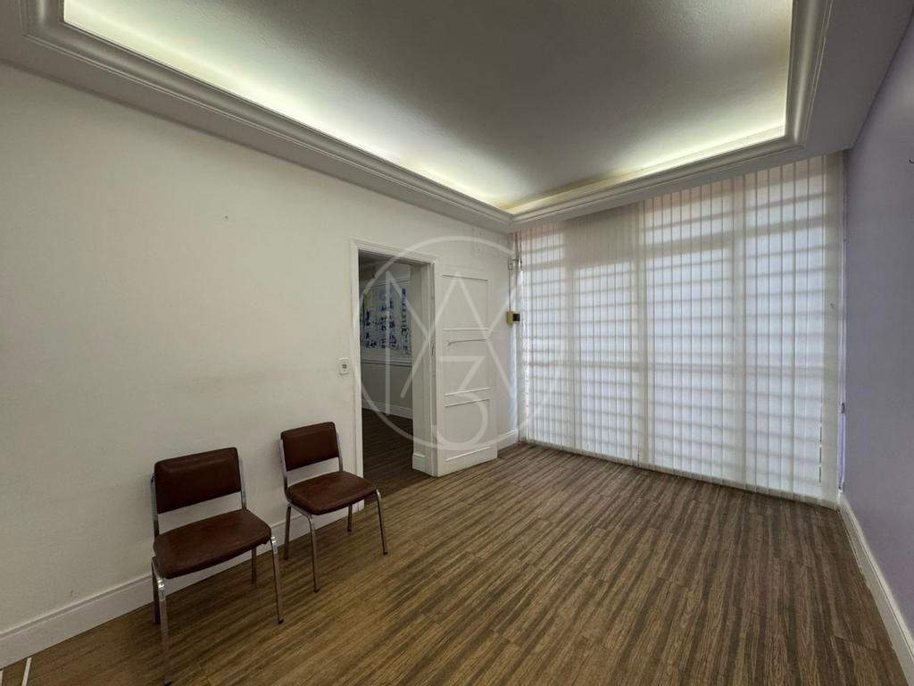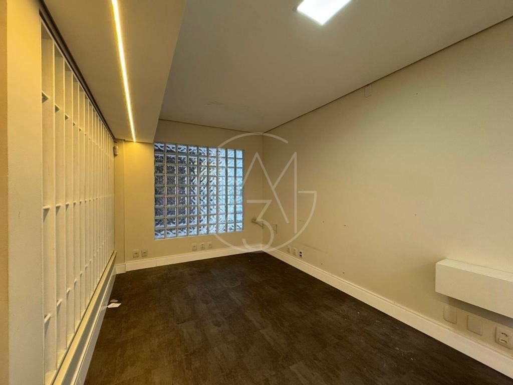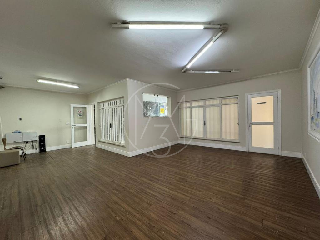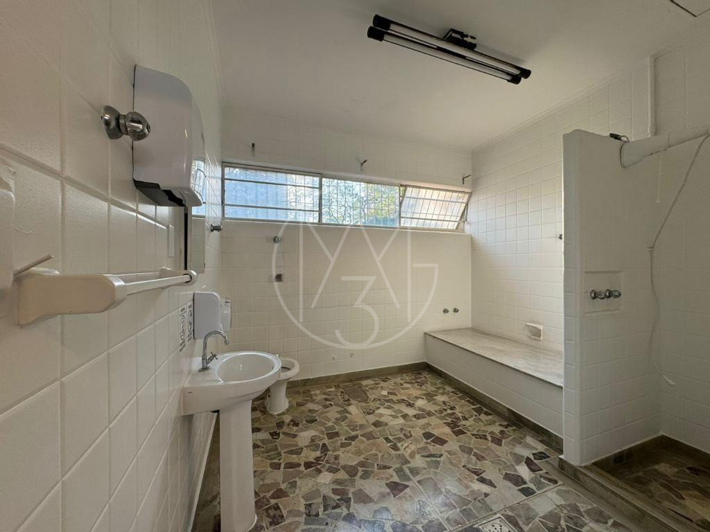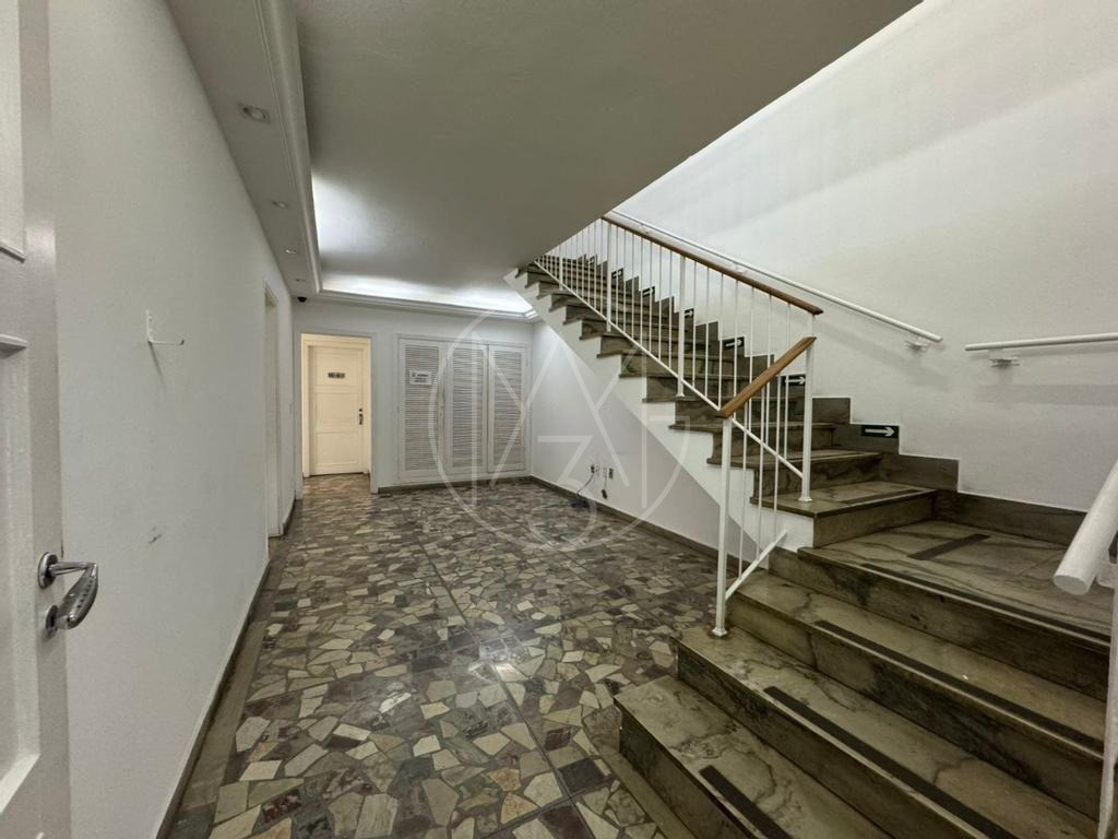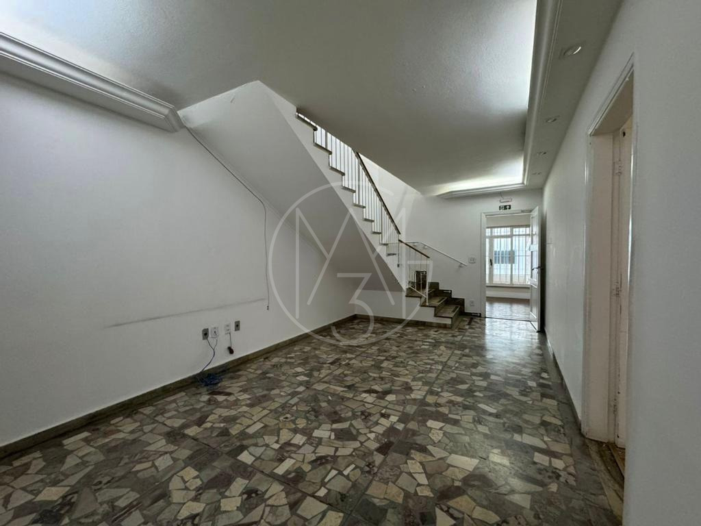 Casa conta com 3 pavimentos. O térreo conta com 6 salas, 1 banheiro, 1 copa/cozinha. No pavimento inferior, conta com 4 salas e 1 banheiro. No pavimento superior, são 7 salas sendo 1 com banheiro, 1 copa/cozinha e 1 banheiro. Vagas descobertas para 4 carros. Total de 17 salas, 5 banheiros e 2 copas/cozinha.