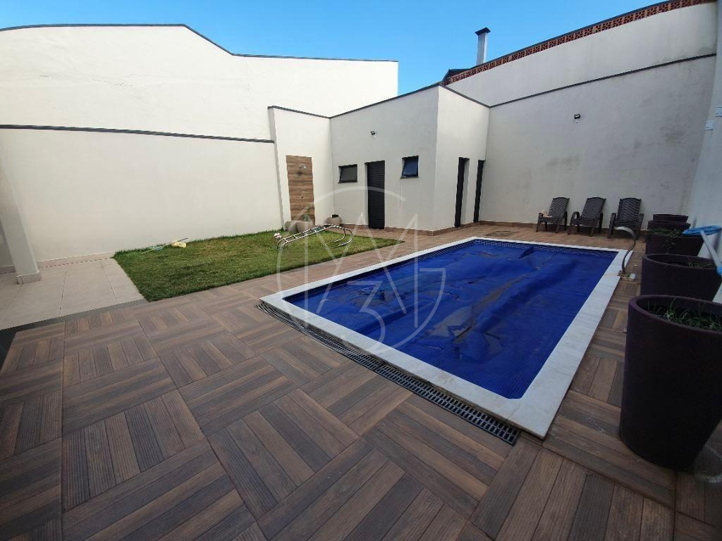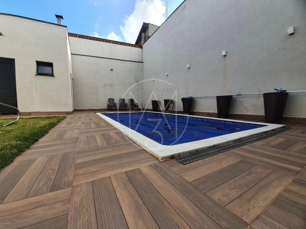 No quintal área gourmet com churrasqueira pia e uma grande bancada. Piscina, gramado, quarto de despejo, banheiro social, e ducha. 3 vagas de garagem sendo 2 cobertas.