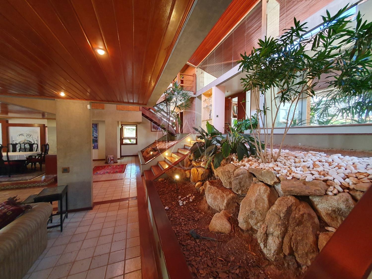 Todos os ambientes são climatizados e o imóvel possui depósito interno que facilita a organização. A residência também conta com uma charmosa biblioteca integrada a um amplo terraço com vista para o paisagismo, criando um cenário perfeito para leitura e contemplação.