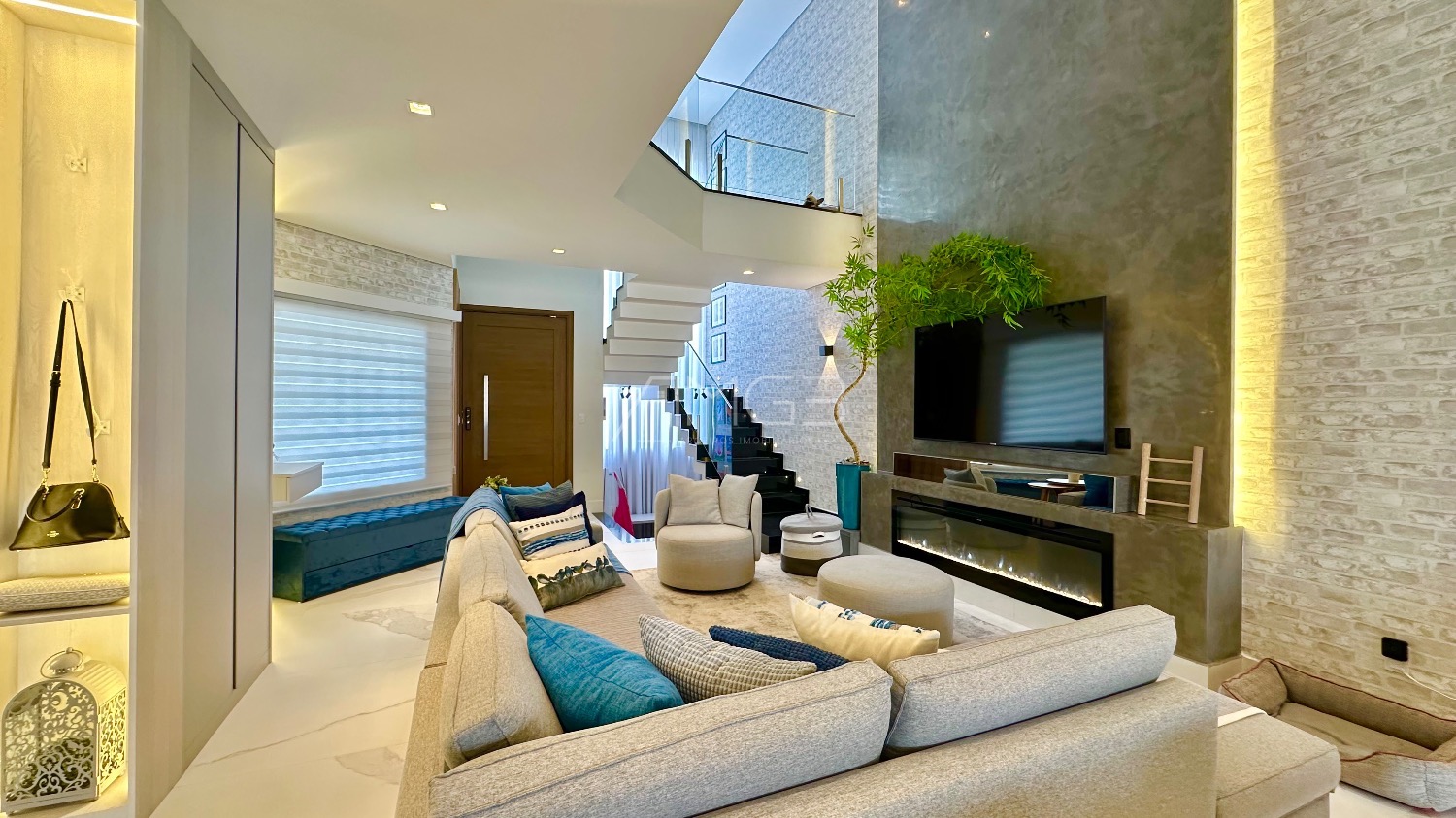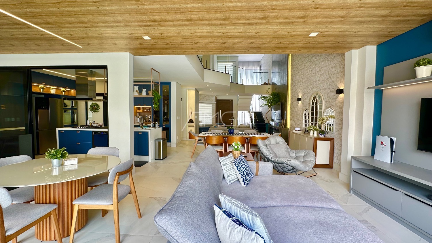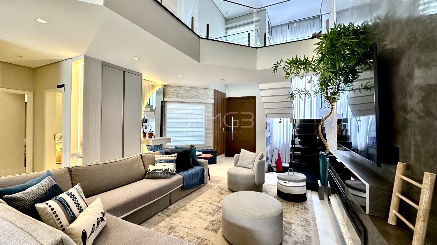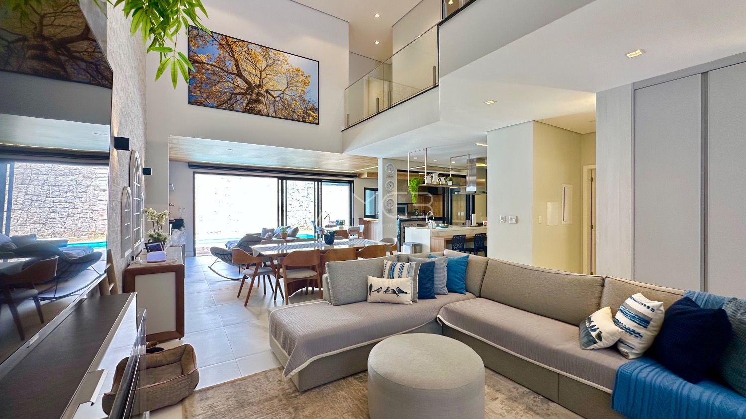 O living amplo e super iluminado valoriza ainda mais a decoração impecável e os planejados premium, pensados nos mínimos detalhes. A casa conta também com aquecimento solar, garantindo economia e sustentabilidade no dia a dia.