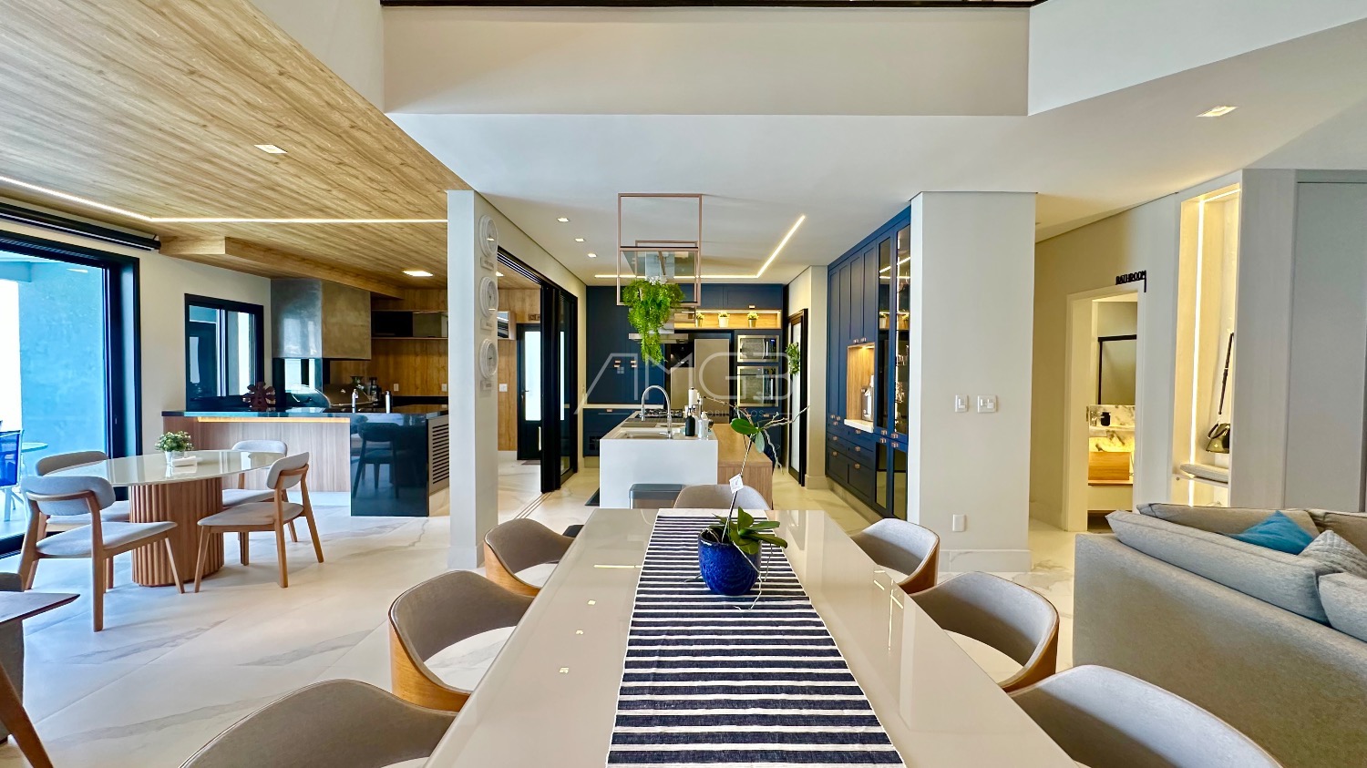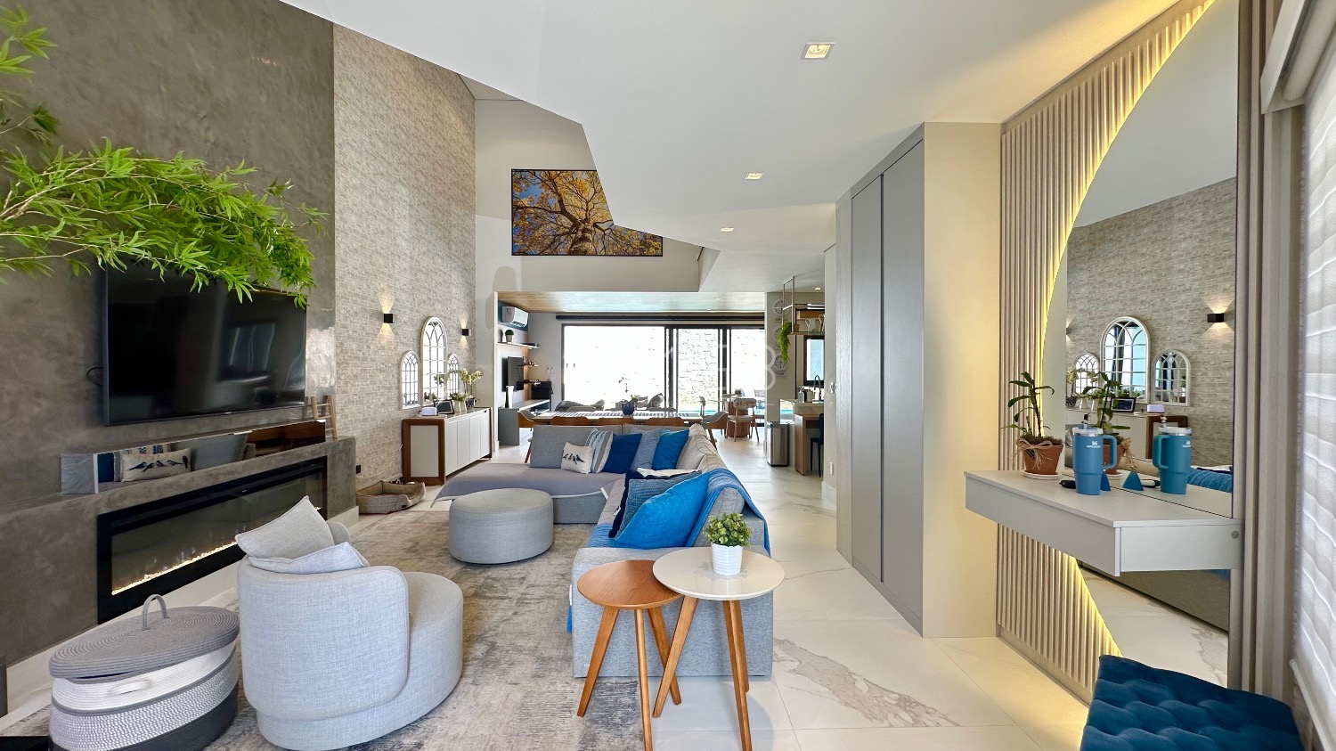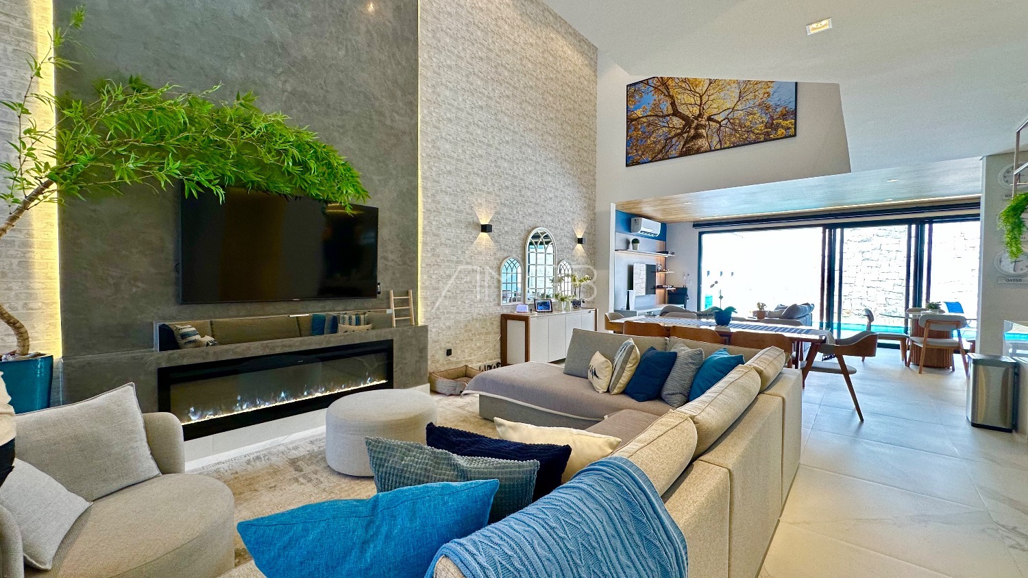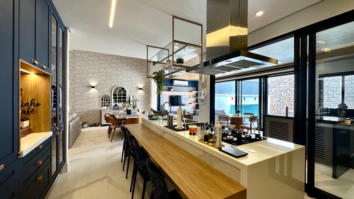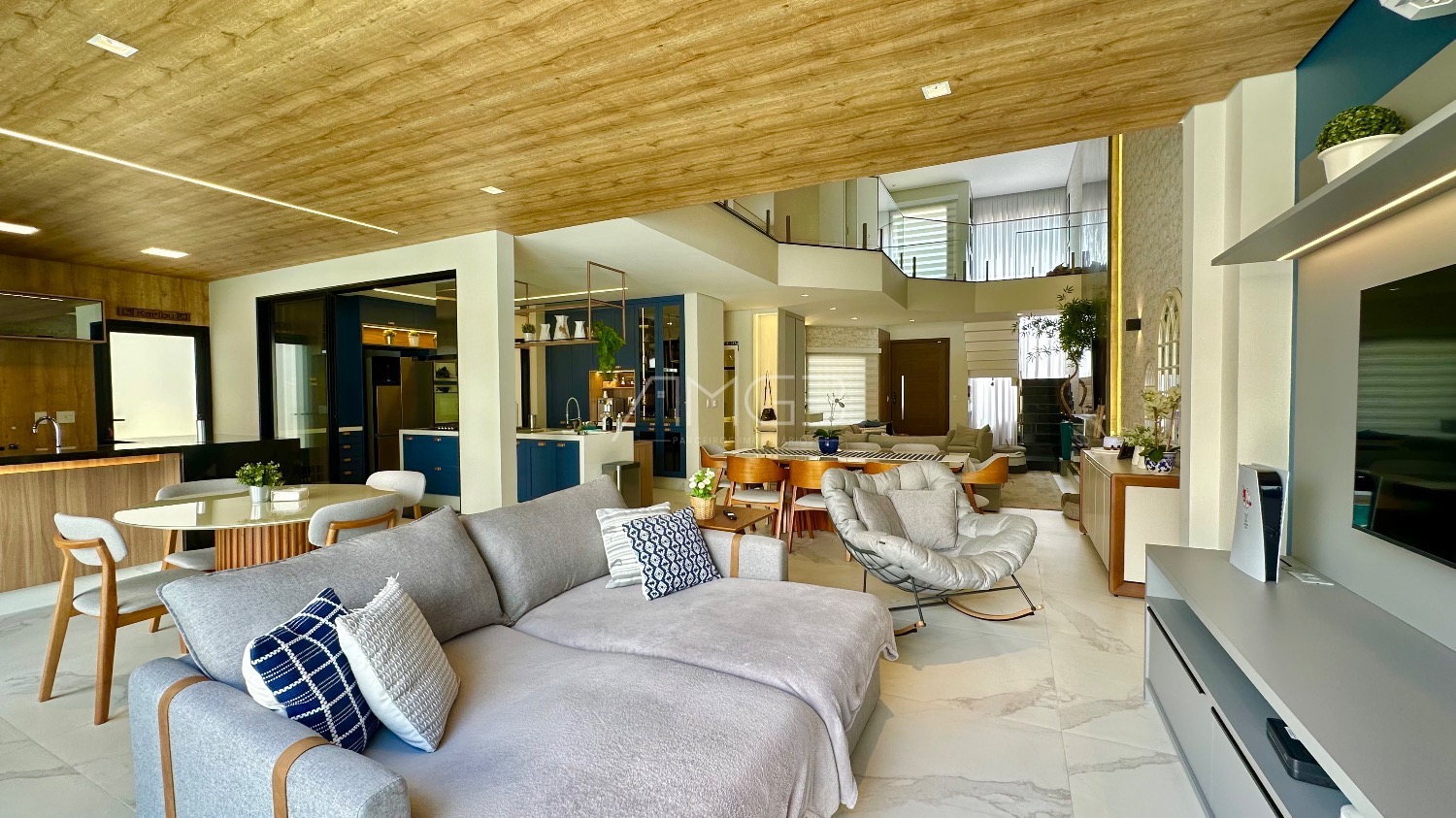 O living amplo e super iluminado valoriza ainda mais a decoração impecável e os planejados premium, pensados nos mínimos detalhes. A casa conta também com aquecimento solar, garantindo economia e sustentabilidade no dia a dia.