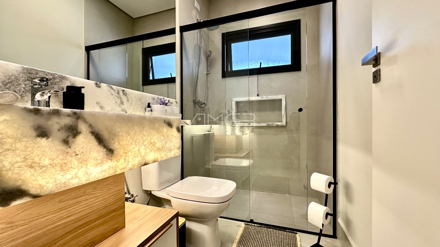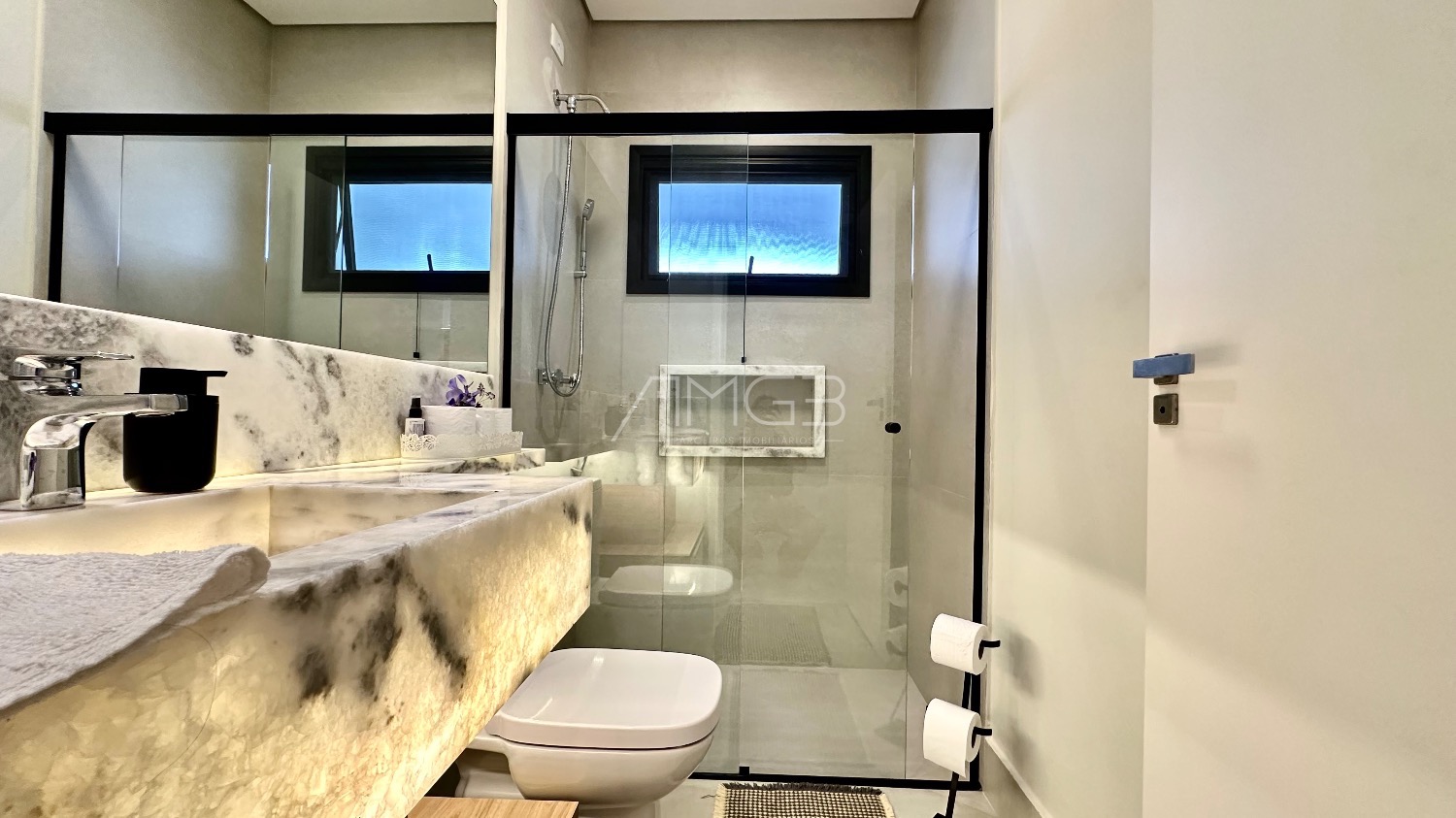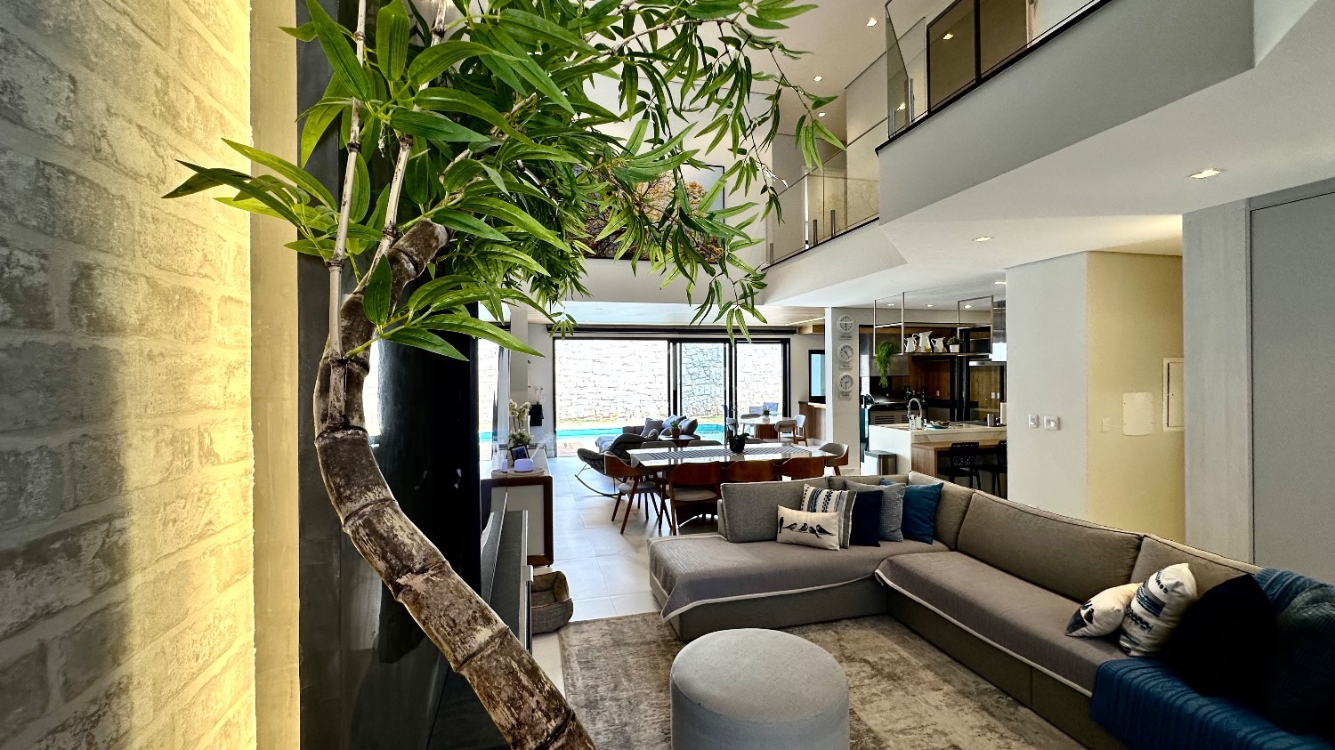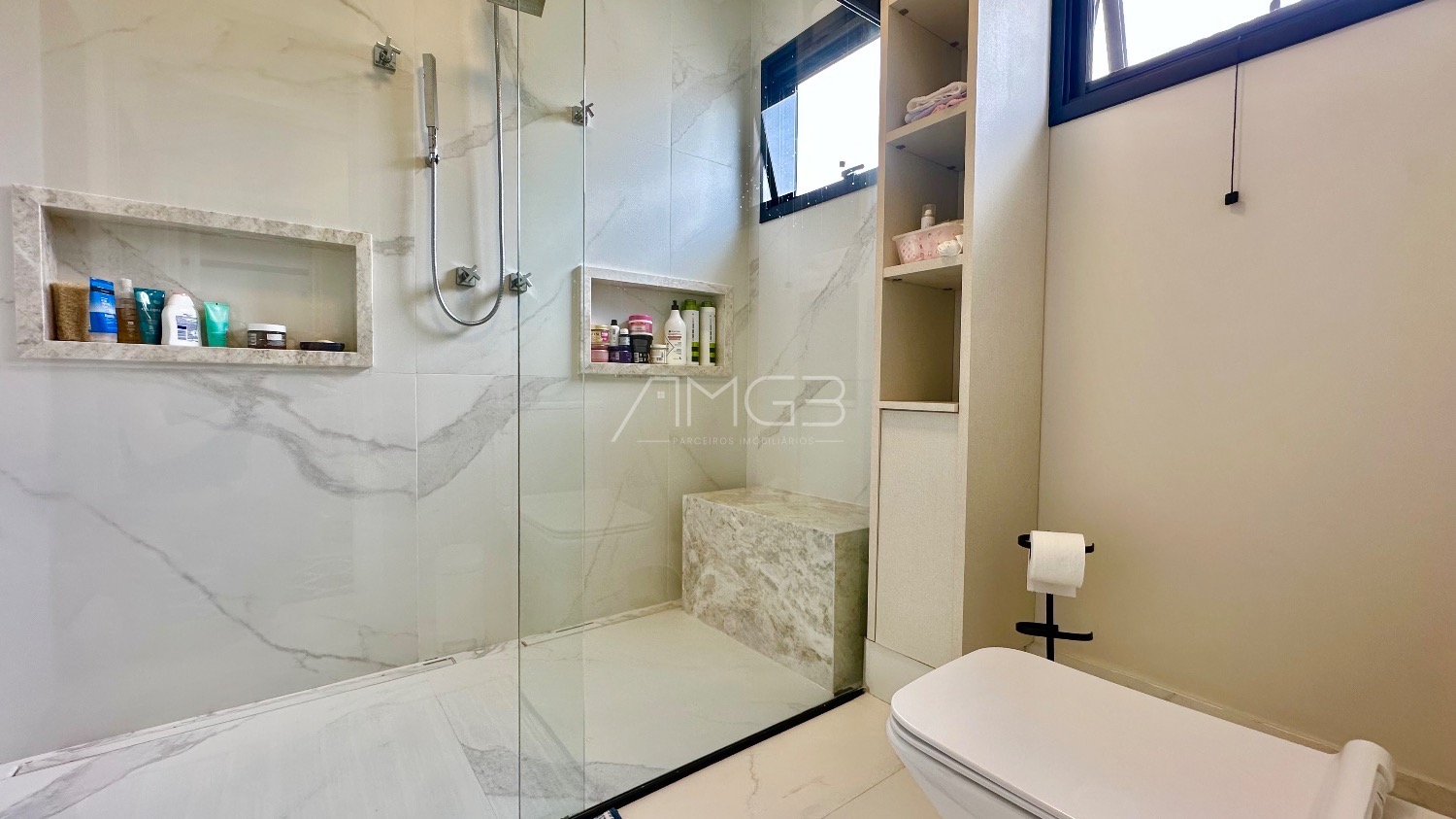 O living amplo e super iluminado valoriza ainda mais a decoração impecável e os planejados premium, pensados nos mínimos detalhes. A casa conta também com aquecimento solar, garantindo economia e sustentabilidade no dia a dia.
