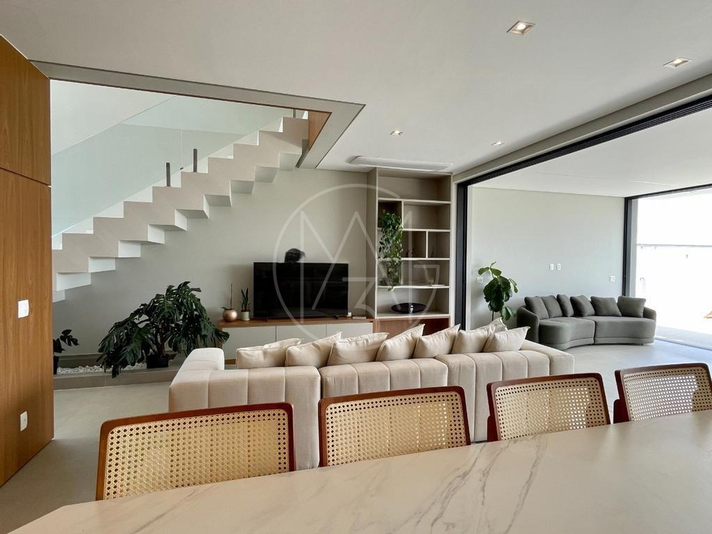 Com 325 m² de área construída, este imóvel impressiona logo na entrada, com um imponente pé-direito duplo e ambientes integrados que proporcionam amplitude e conforto. A sala de estar se conecta à cozinha e à área gourmet, criando um espaço perfeito para receber. No térreo, há ainda um quarto e um lavabo — que podem ser facilmente convertidos em uma suíte — além de lavanderia espaçosa e um quintal com piscina e banheiro de apoio externo.