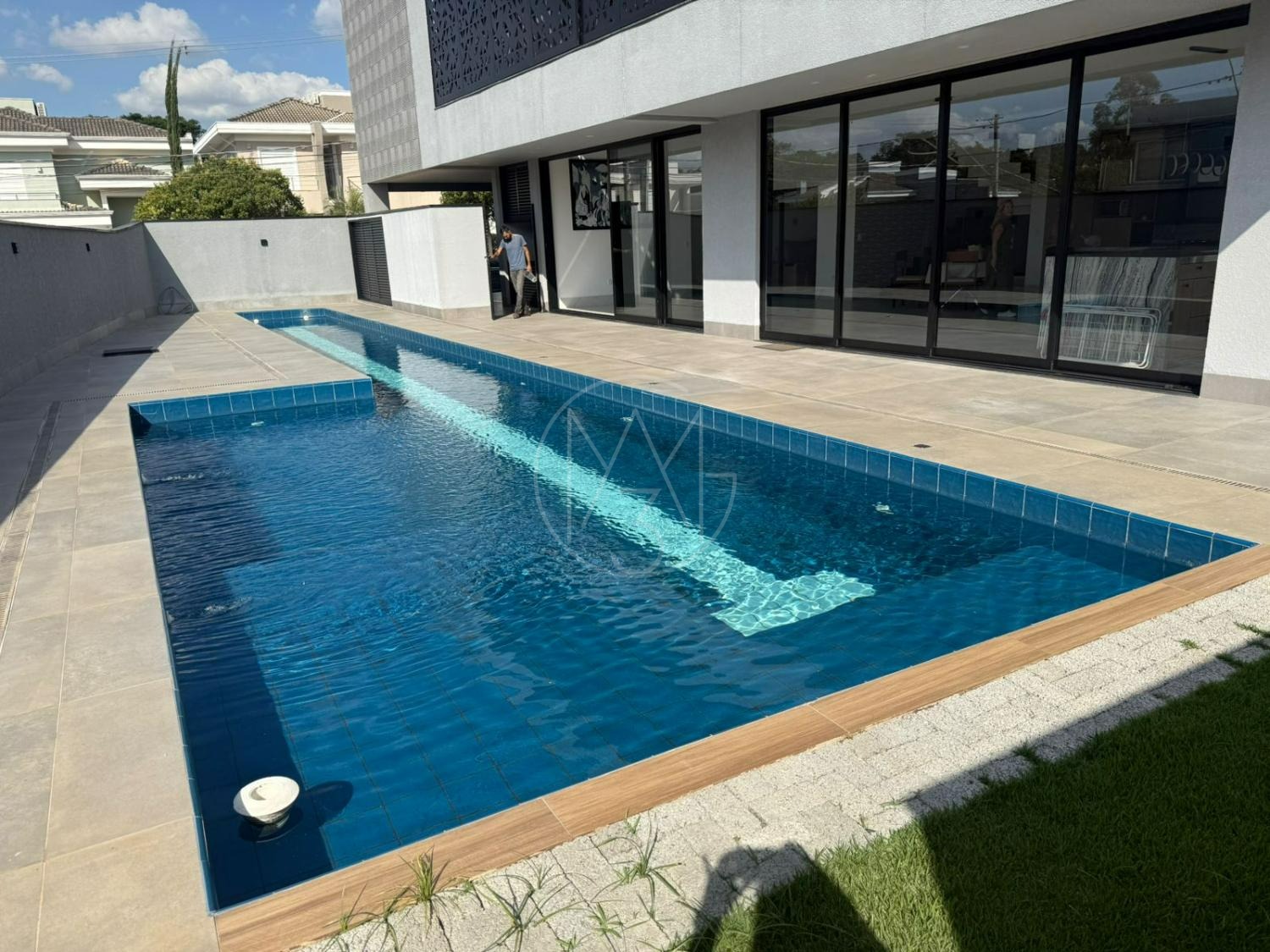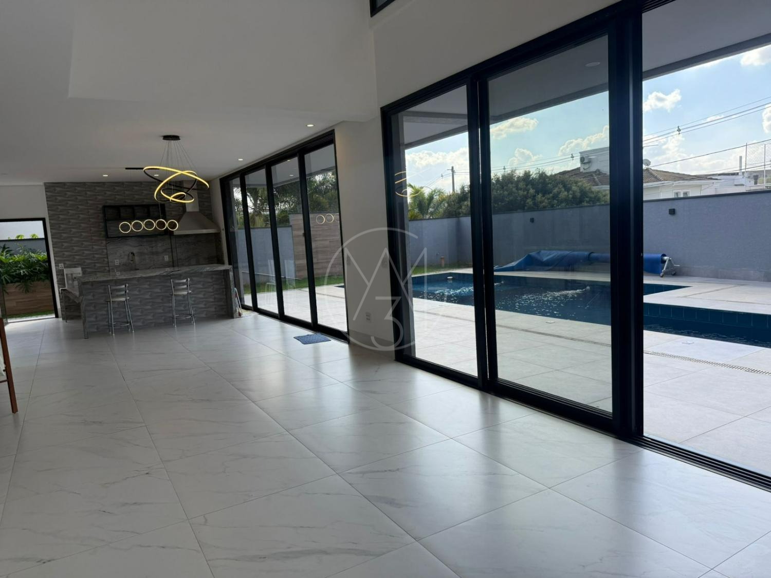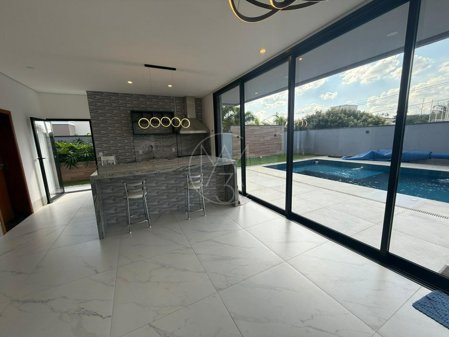 Área gourmet com churrasqueira, banheiro de apoio, piscina aquecida, quintal e 08 vagas de garagem.