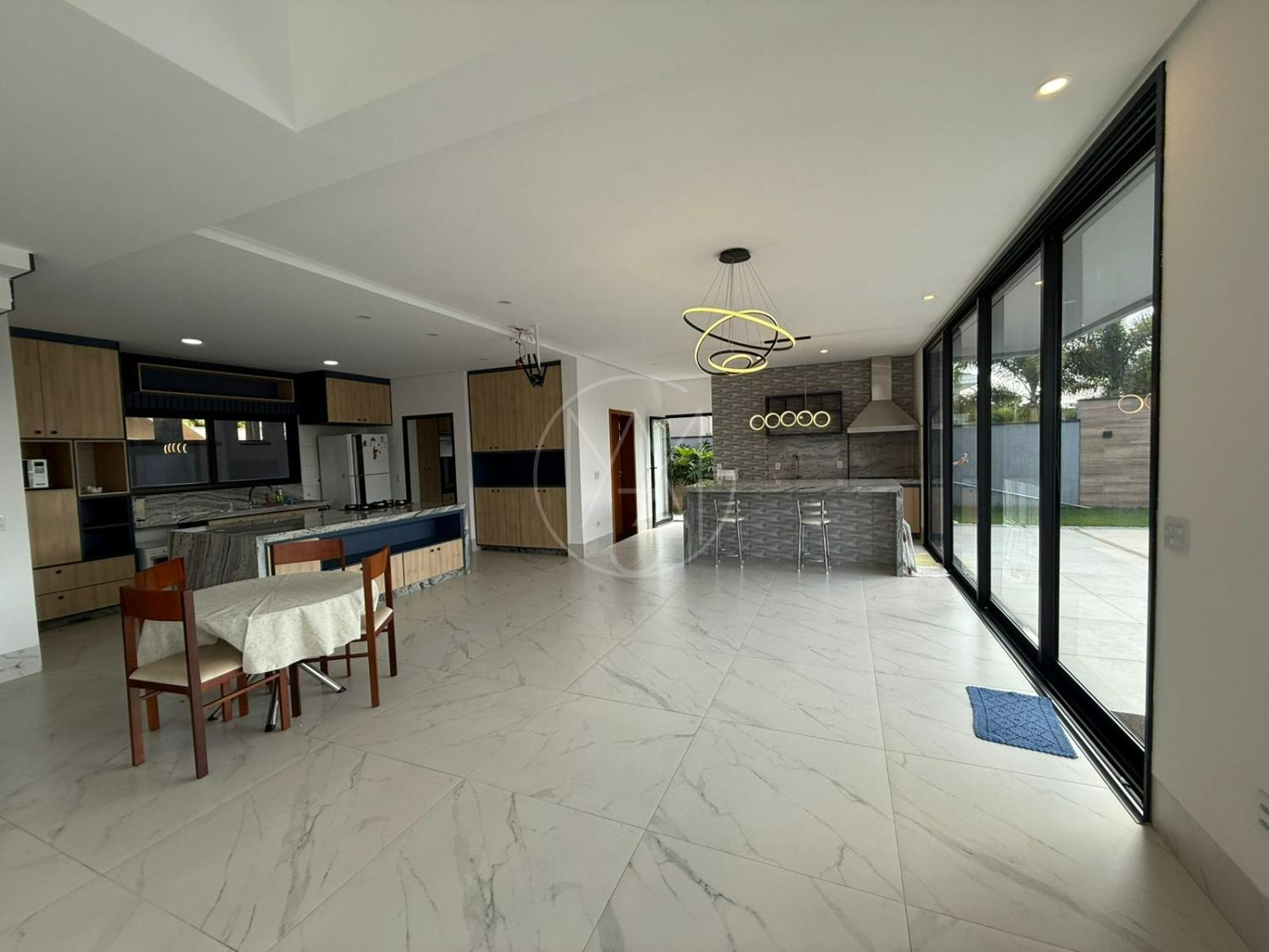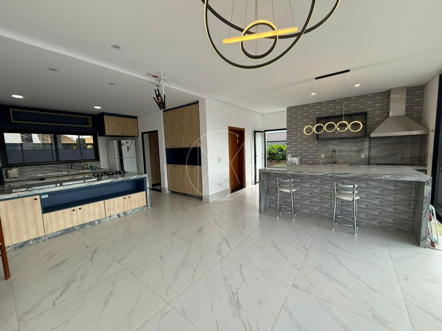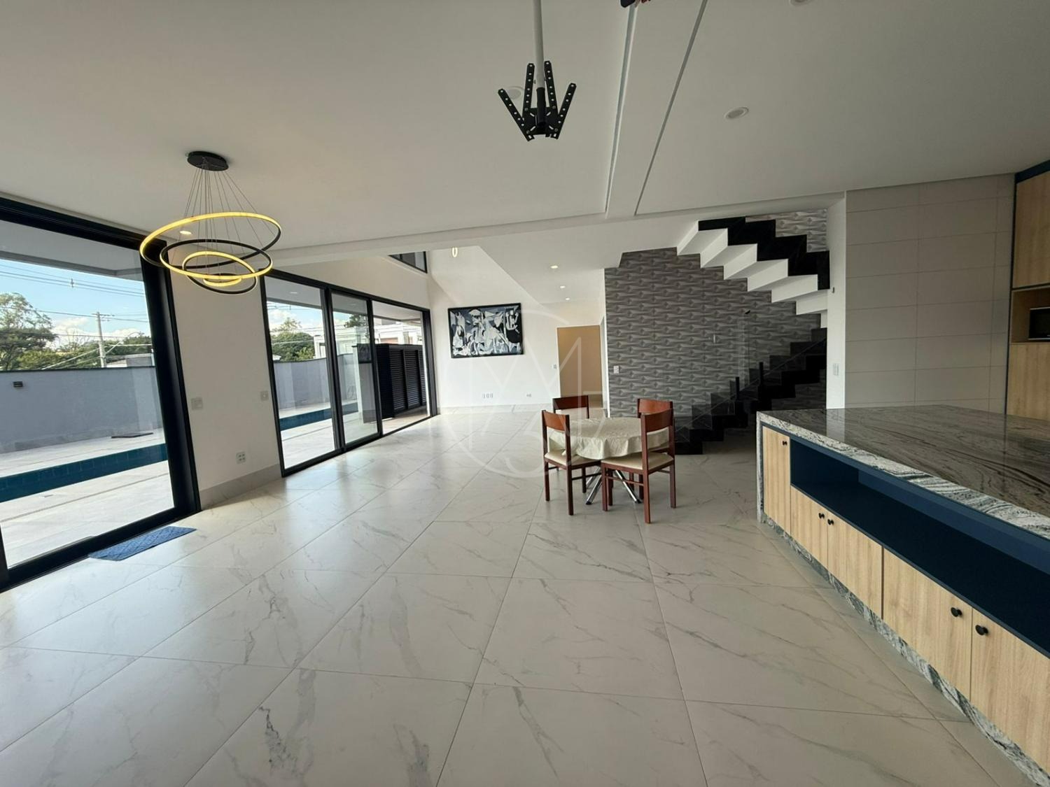No pavimento térreo contamos com living para 2 ambientes, pé direito duplo e muita integração, suíte reversível, cozinha completa, lavabo, área de serviço, depósito, fino acabamento na casa toda.