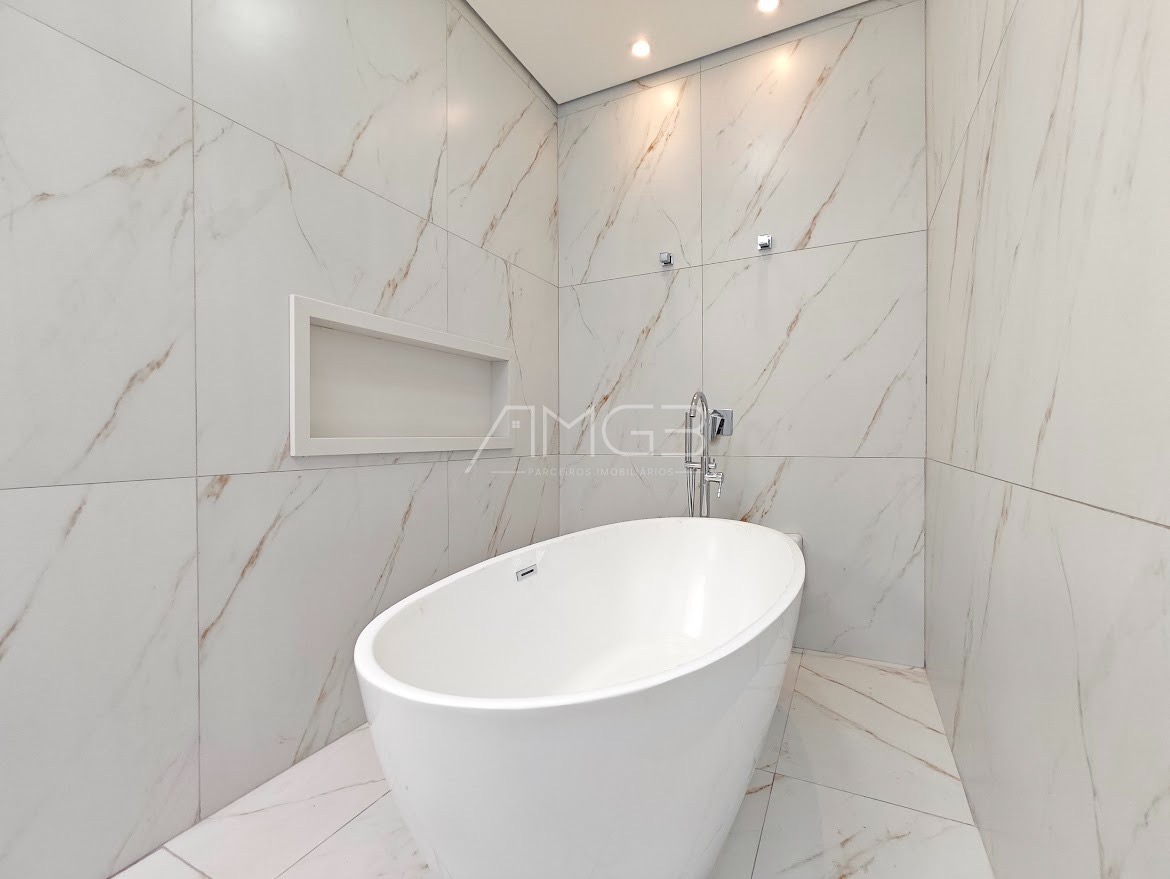O imóvel é semi novo e foi edificado com acabamentos nobres, com mármores e peças importadas, metais e louças, muito bem decorada e equipada, permanecendo praticamente todos os móveis e eletrodomésticos.