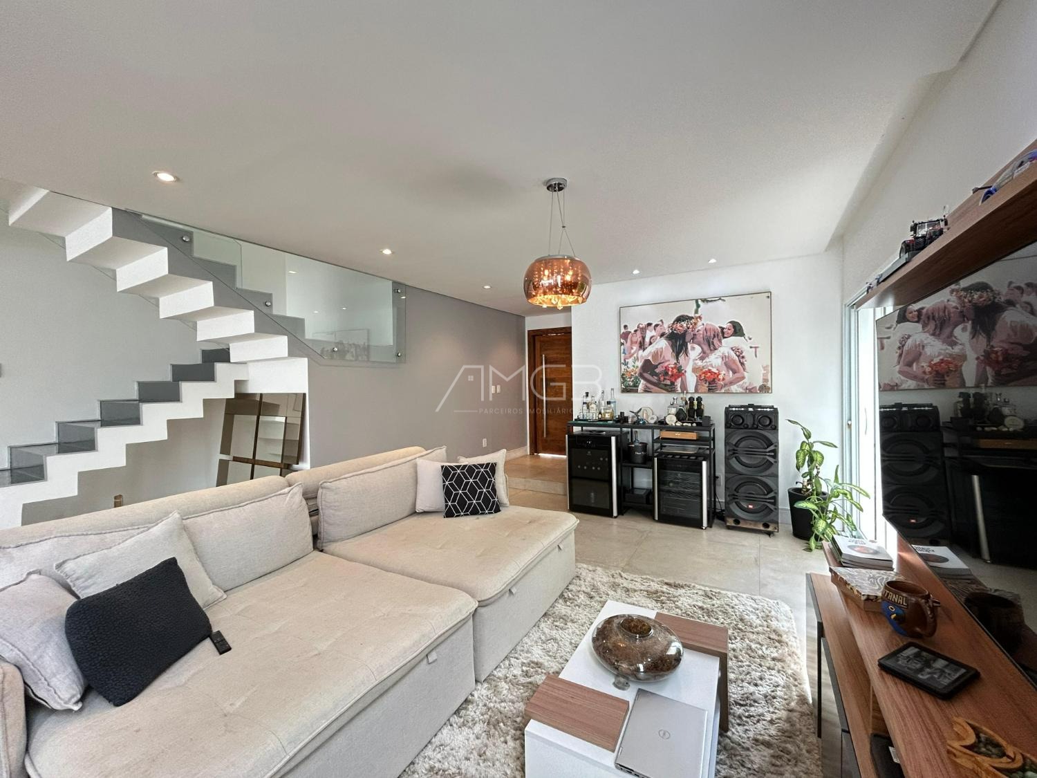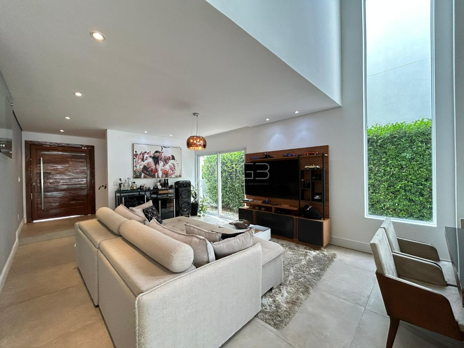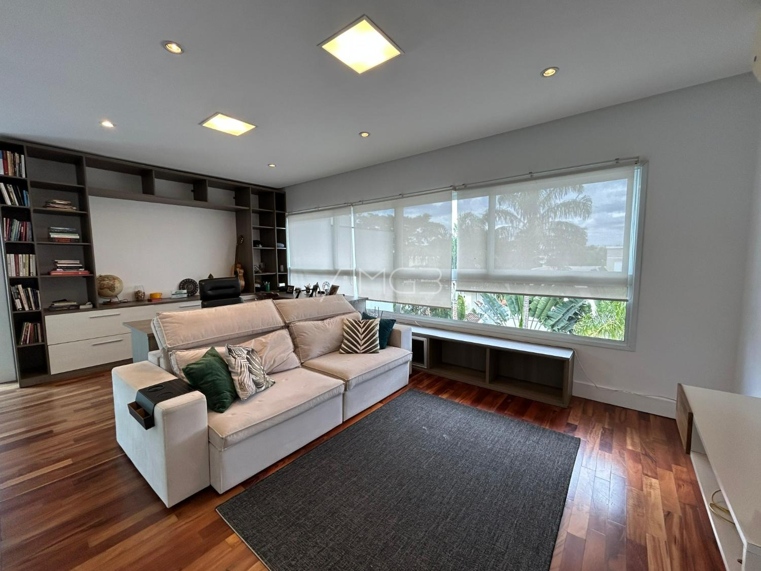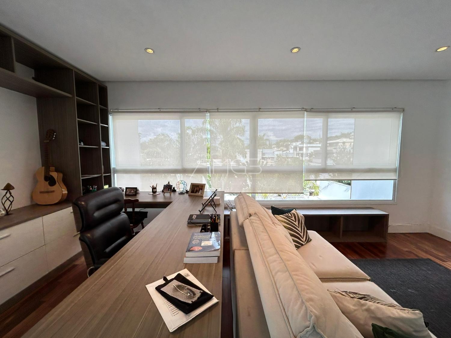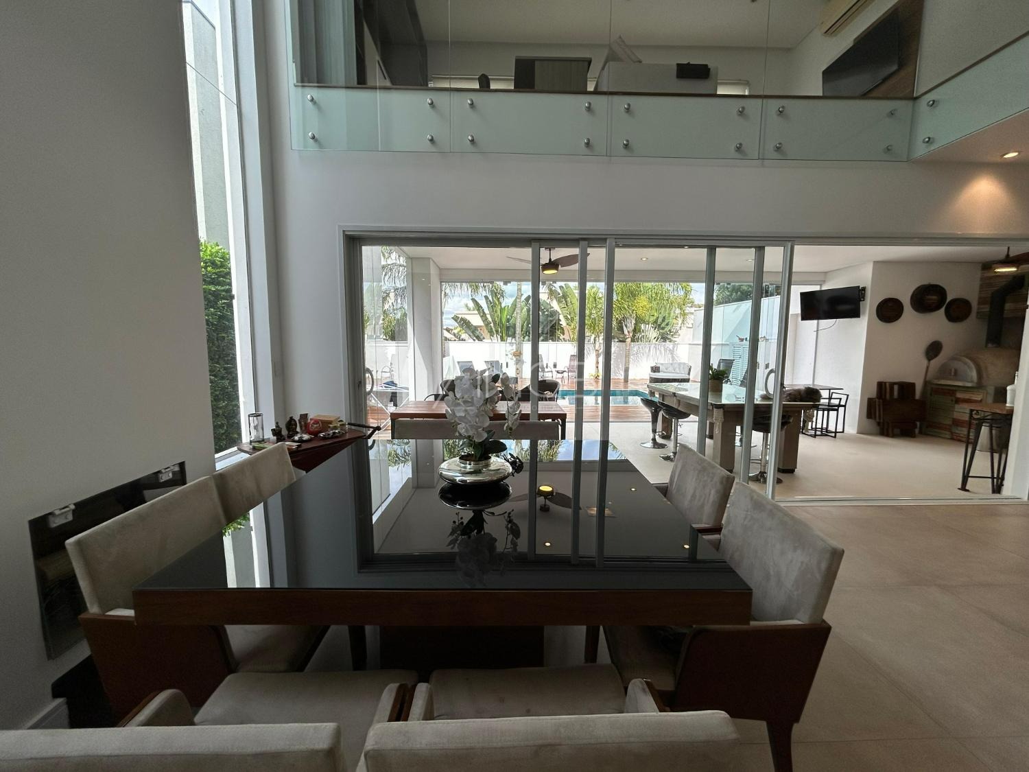 O imóvel conta com 3 suites, 2 closets, 5 banheiros, além de sala de estar e sala de jantar integradas, lavabo, escritório e uma elegante cozinha americana,