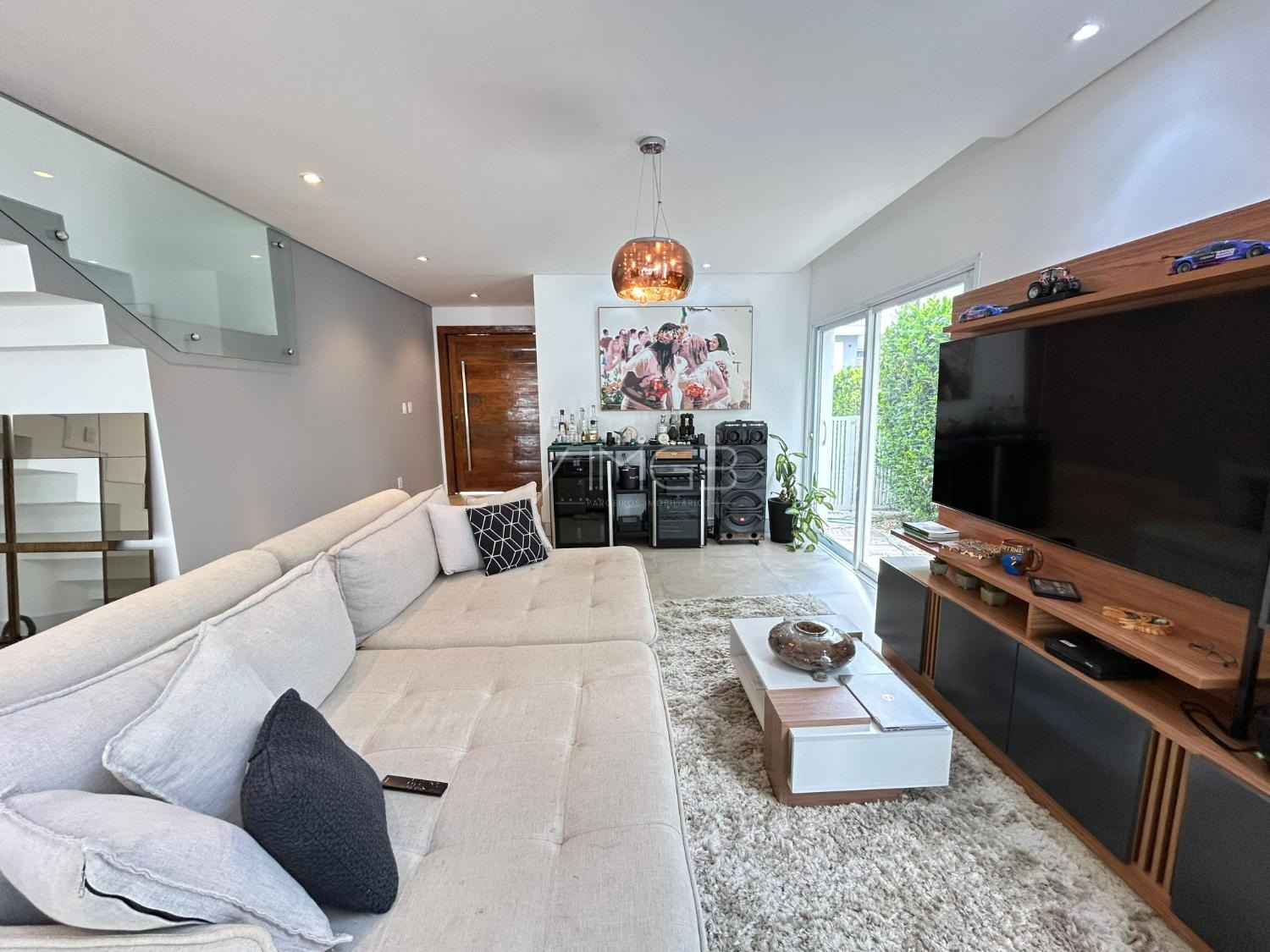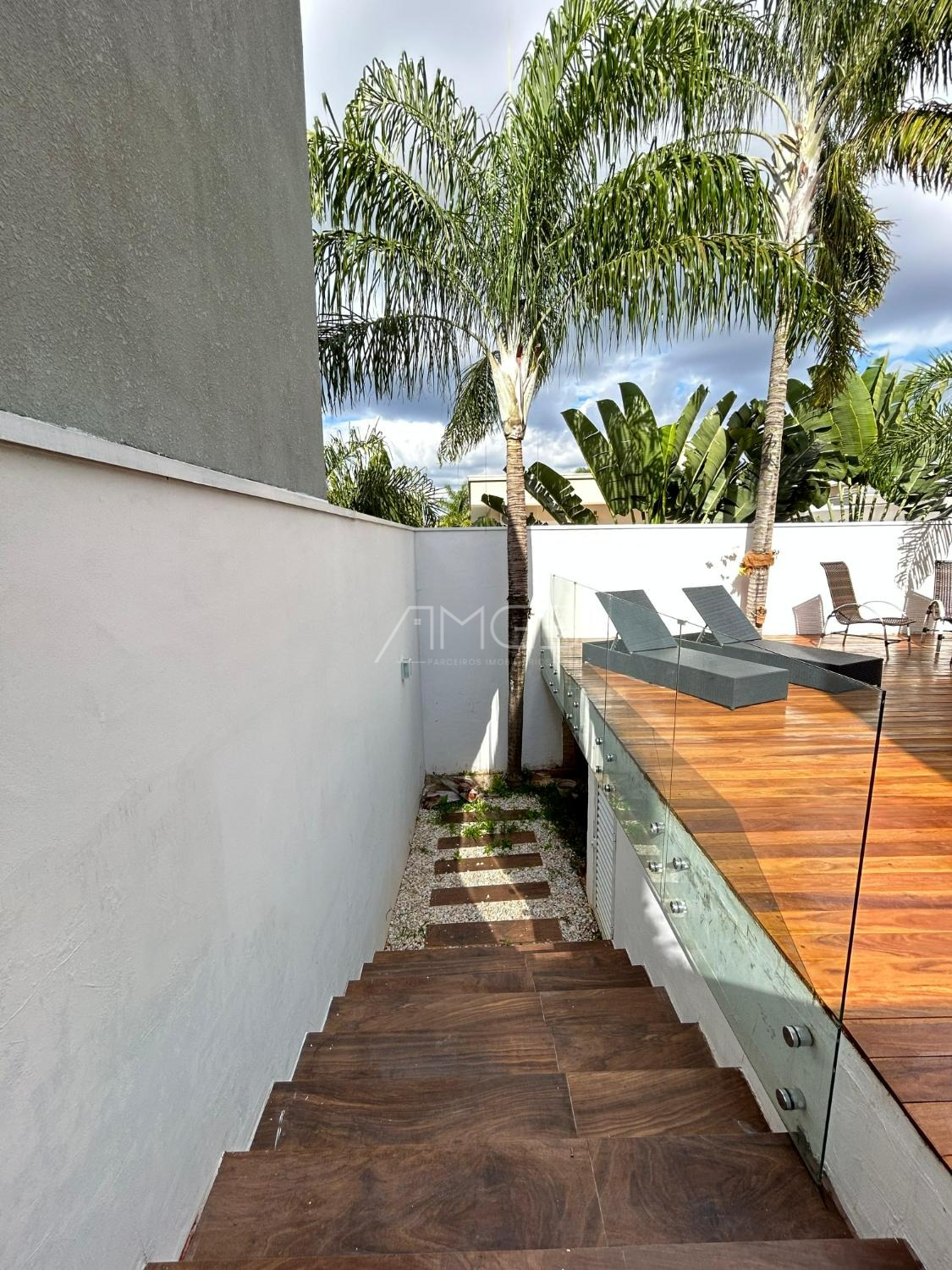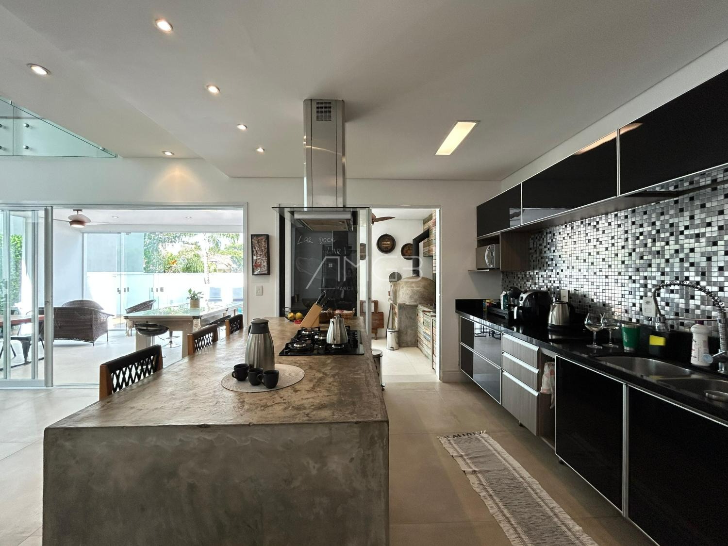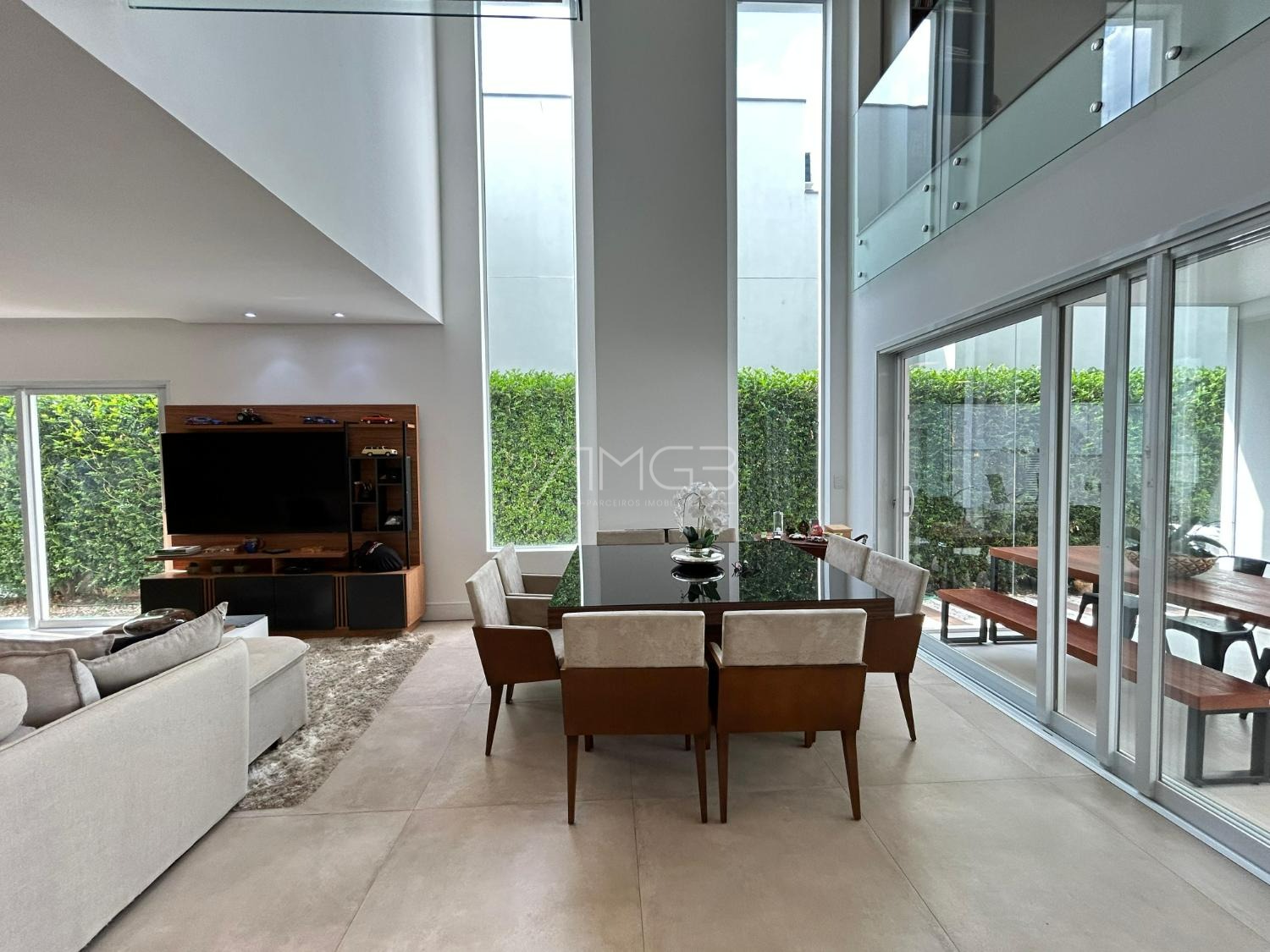 O imóvel conta com 3 suites, 2 closets, 5 banheiros, além de sala de estar e sala de jantar integradas, lavabo, escritório e uma elegante cozinha americana,