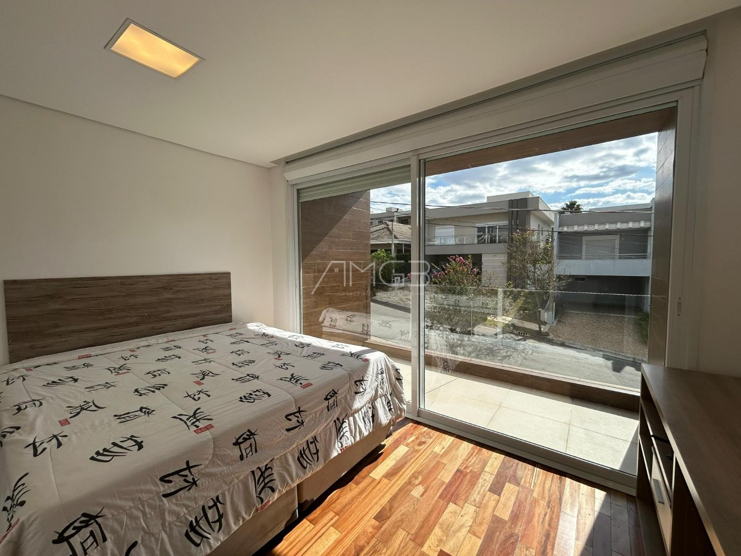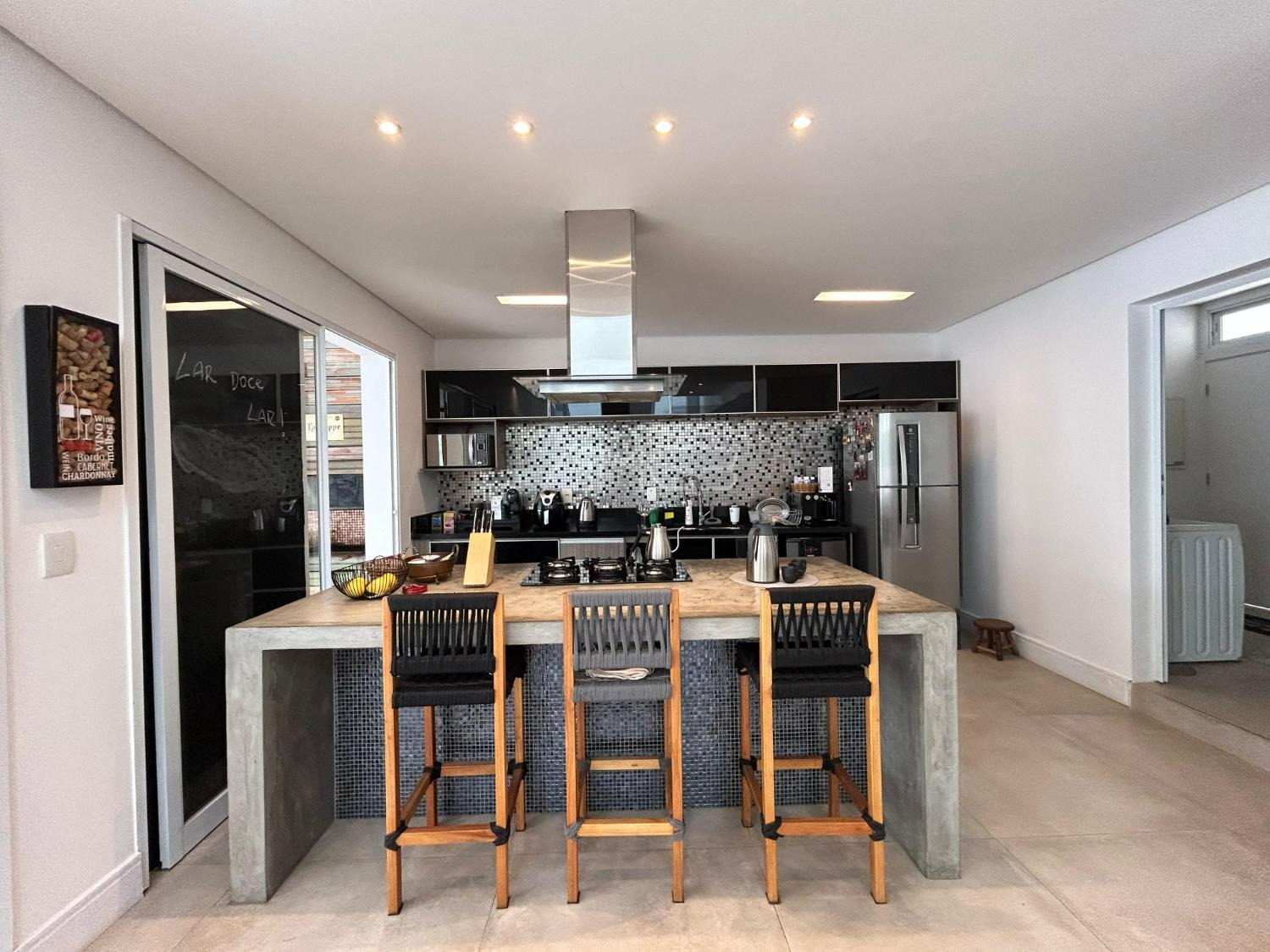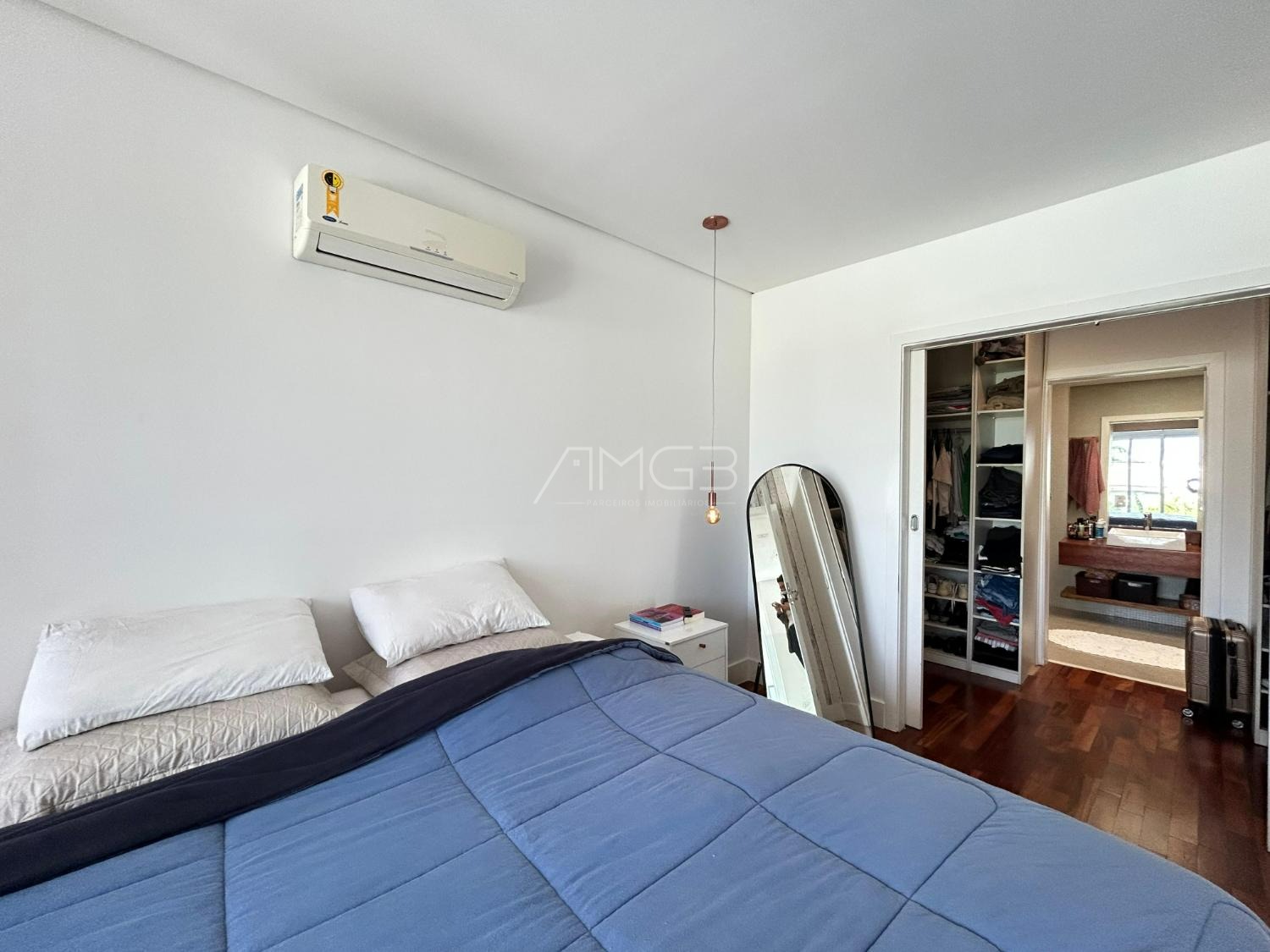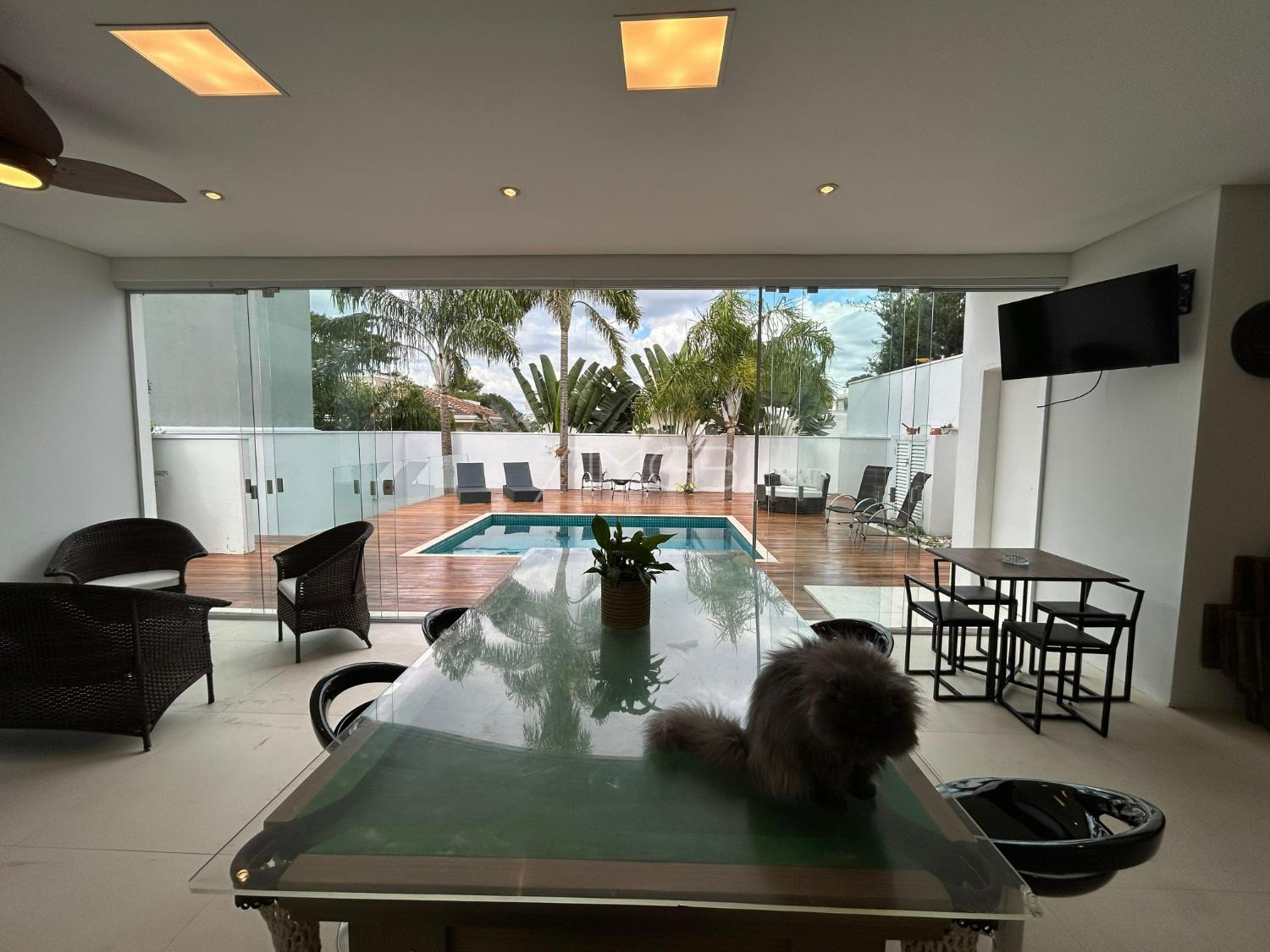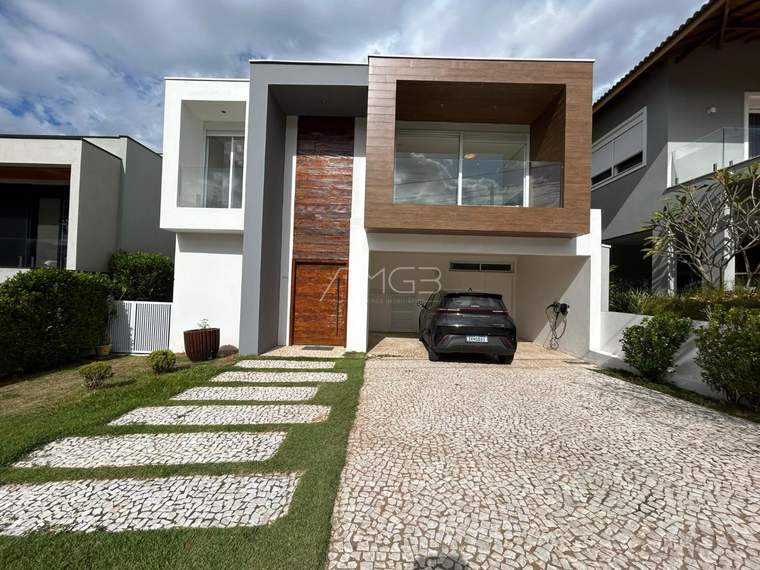 O imóvel conta com 3 suites, 2 closets, 5 banheiros, além de sala de estar e sala de jantar integradas, lavabo, escritório e uma elegante cozinha americana,