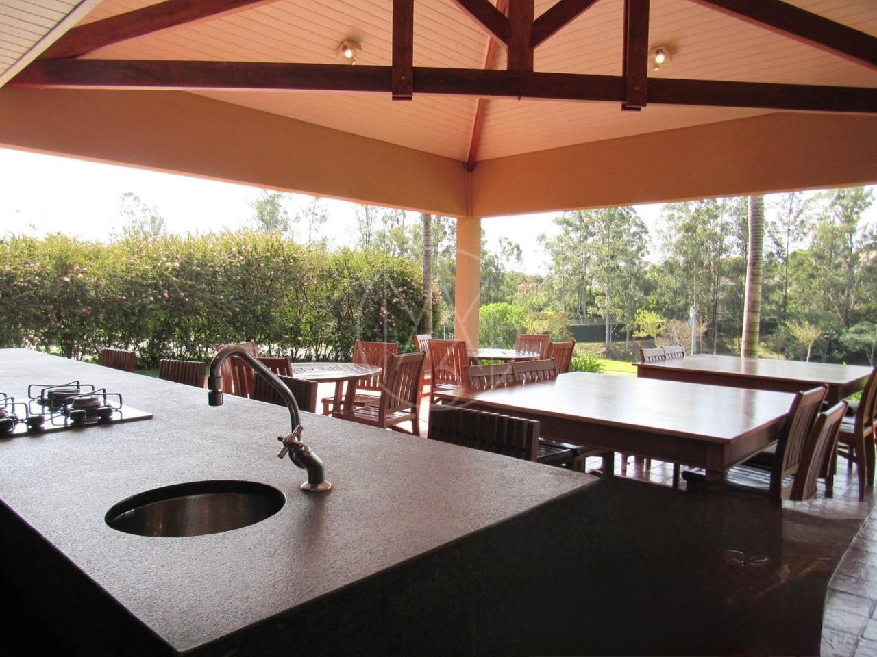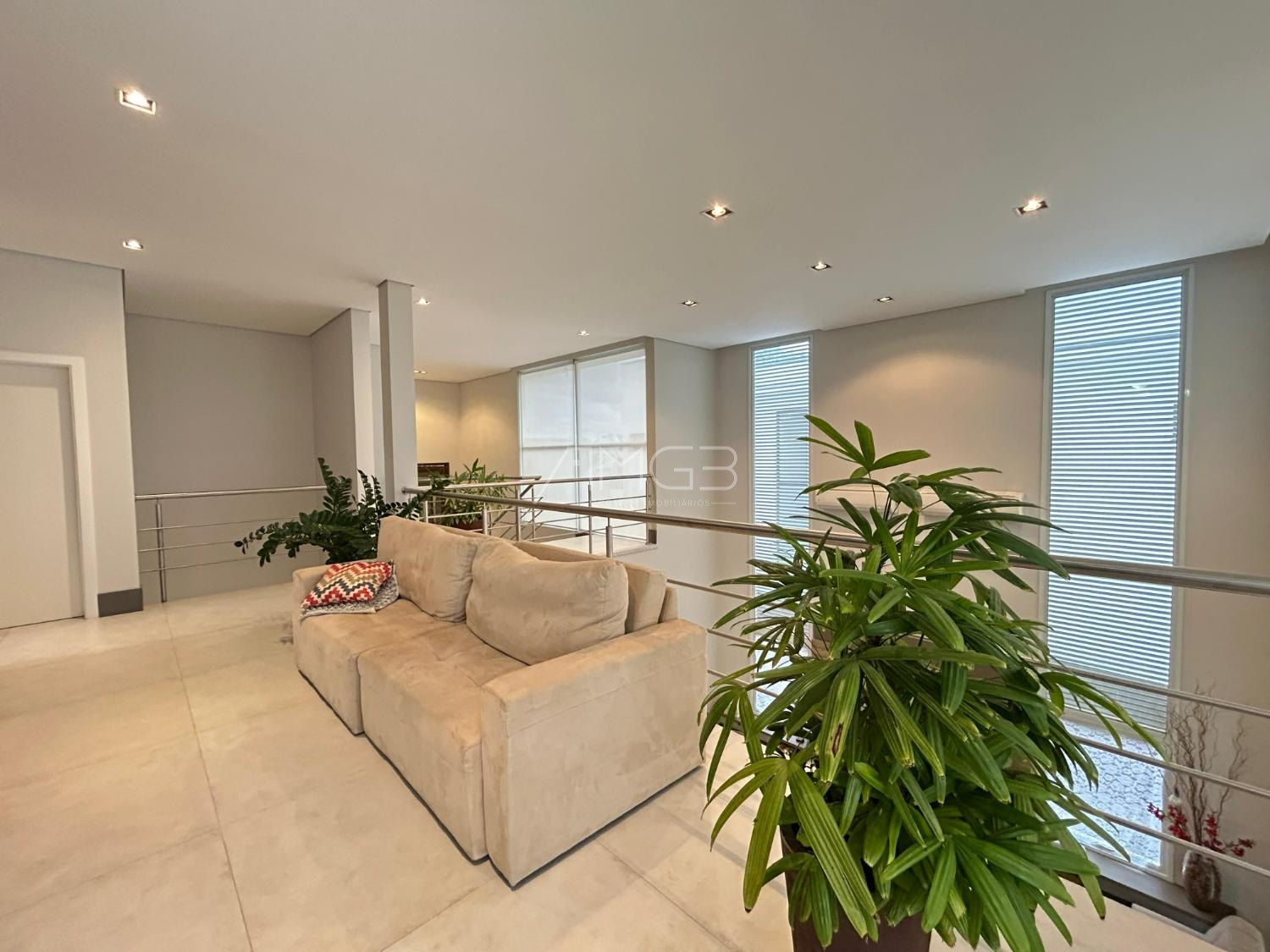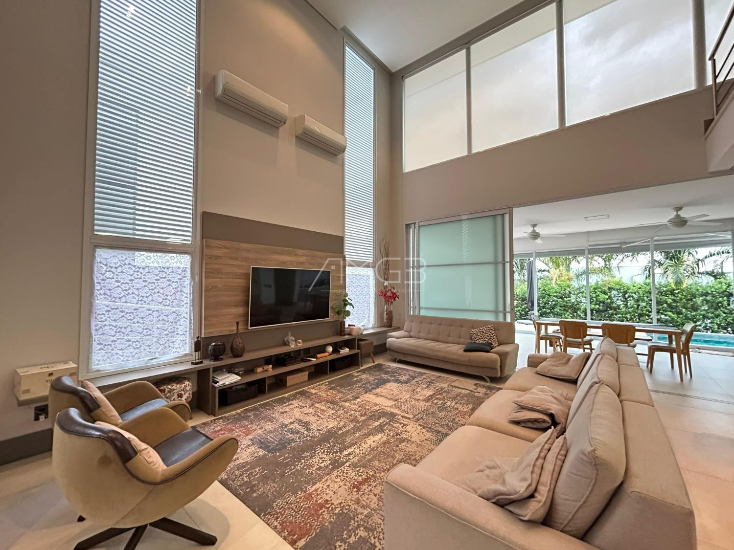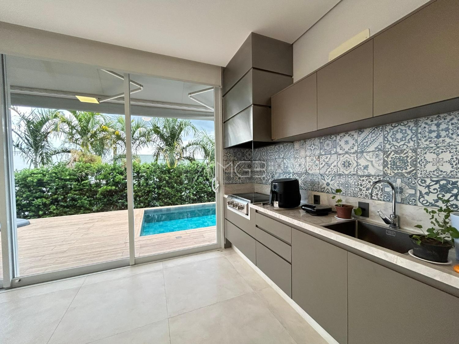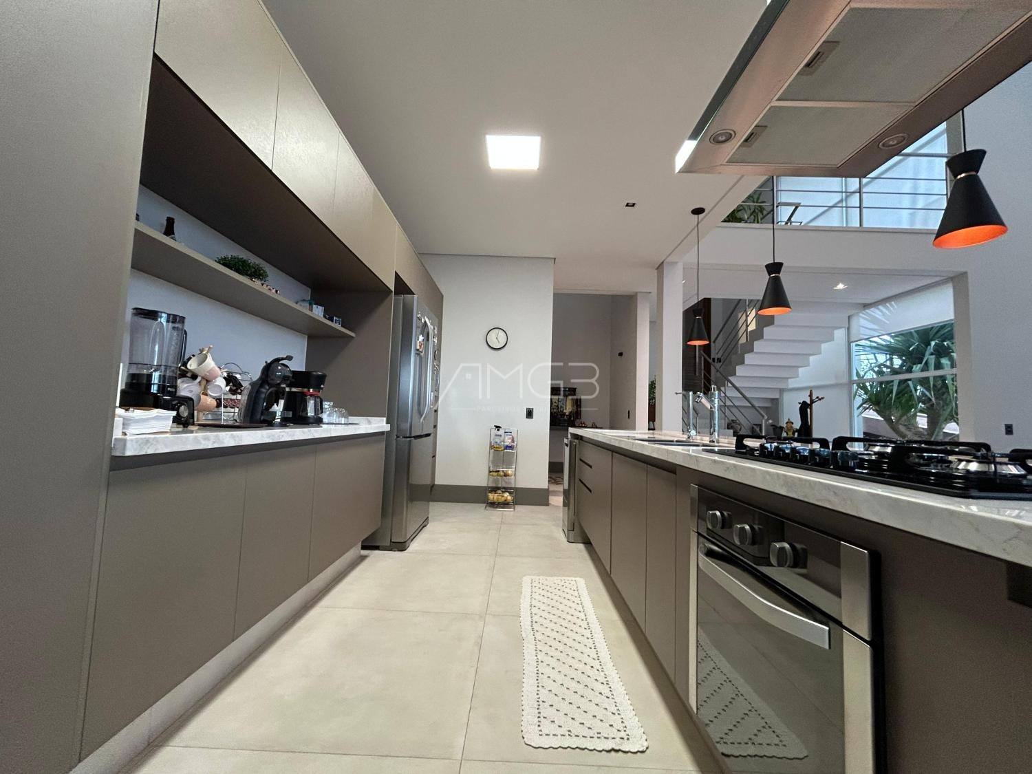 Ampla área gourmet integrada à sala de estar, escritório no piso superior.