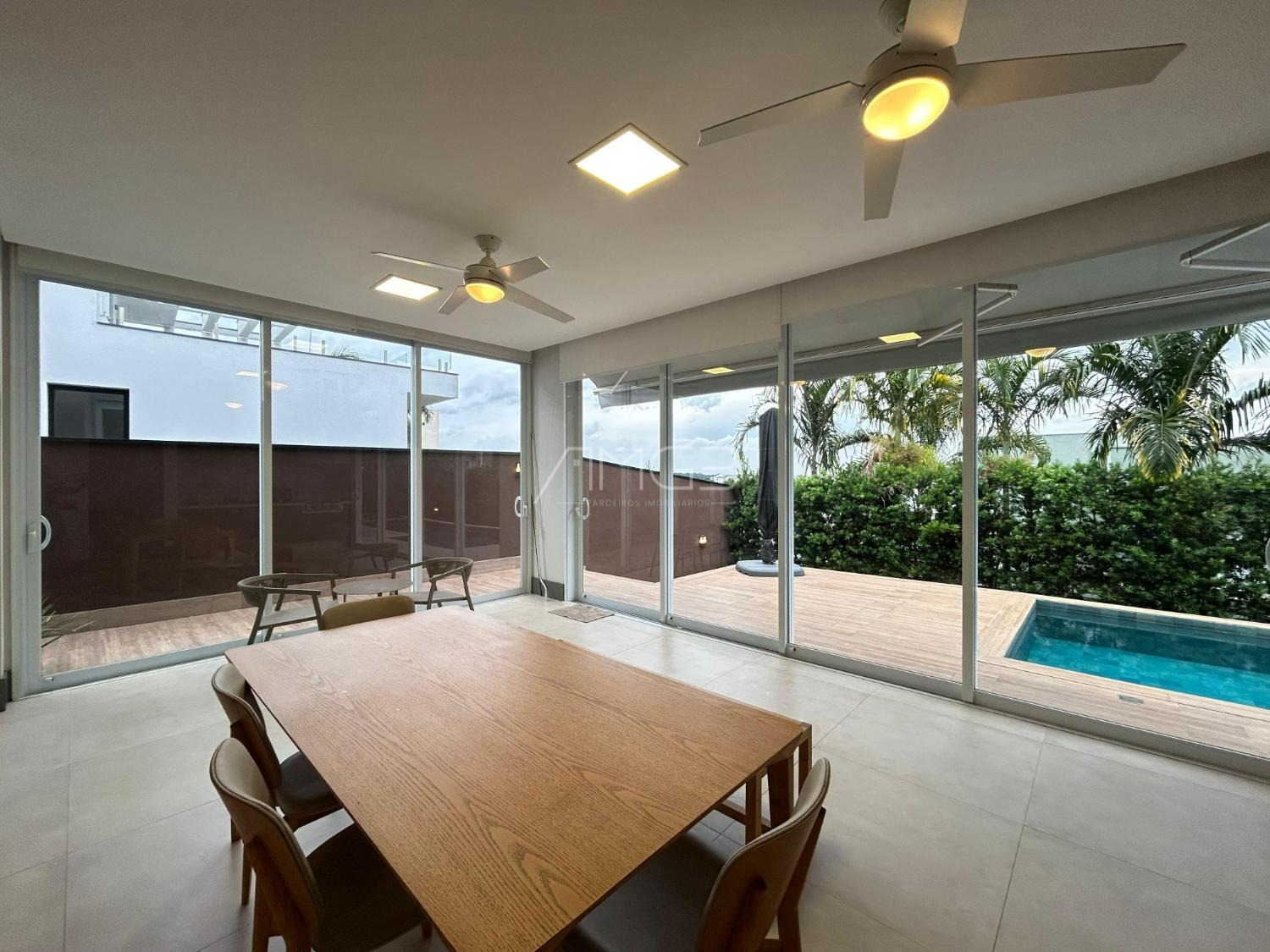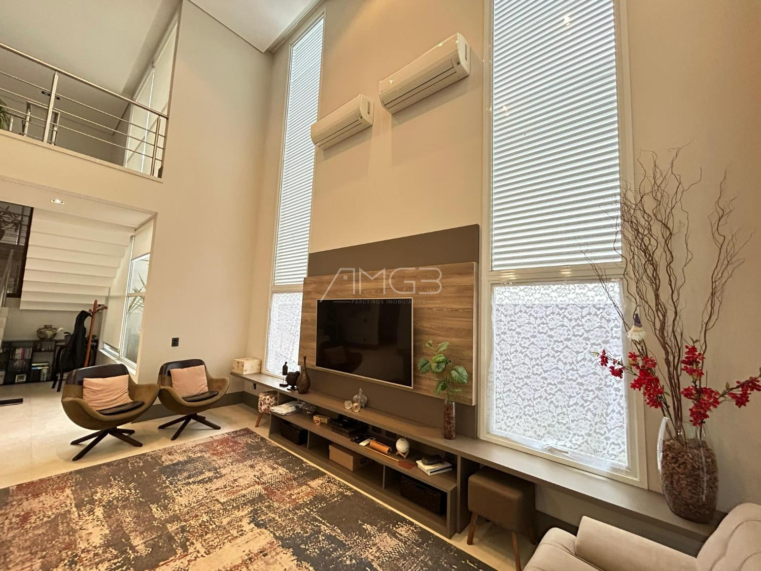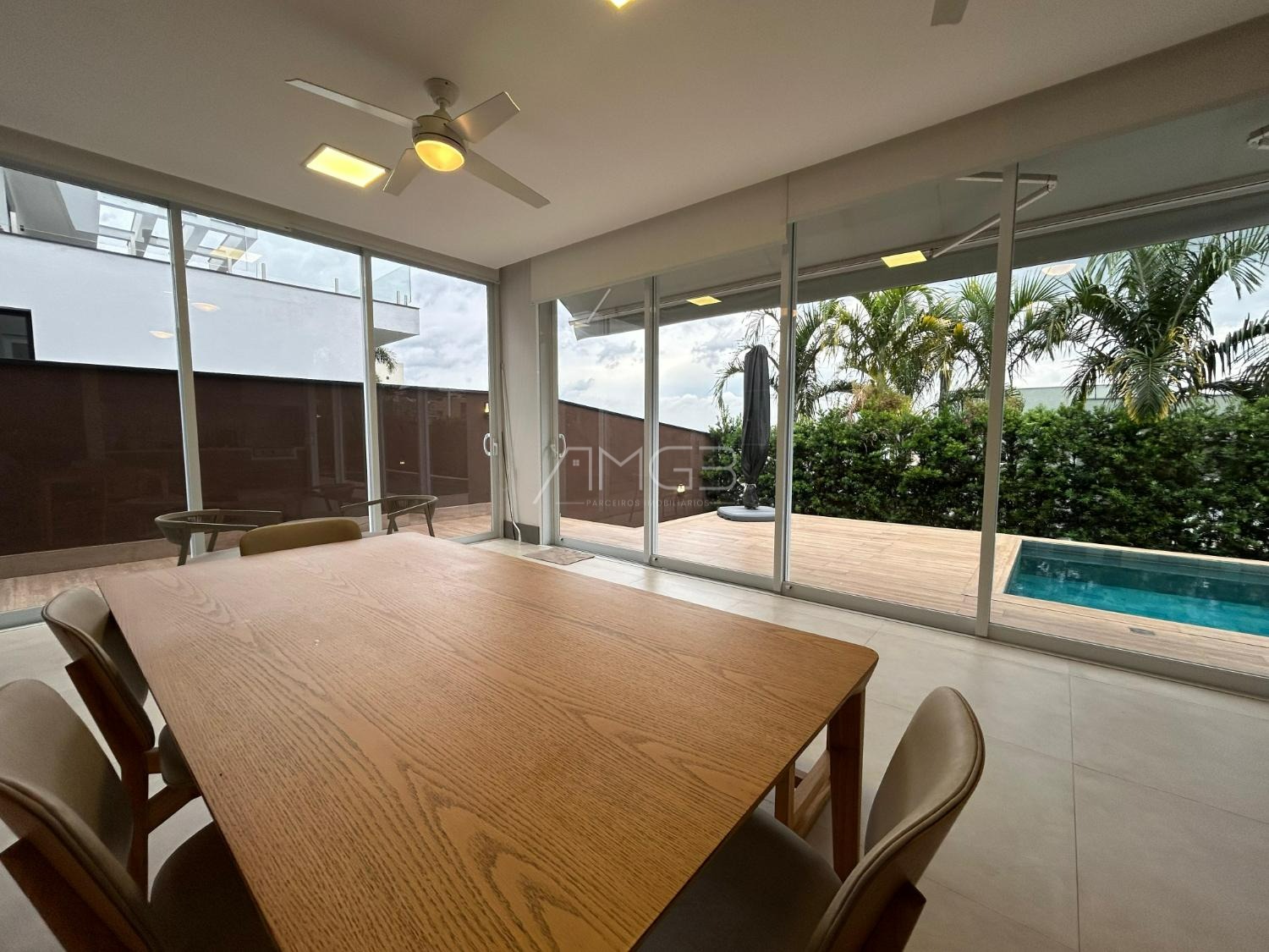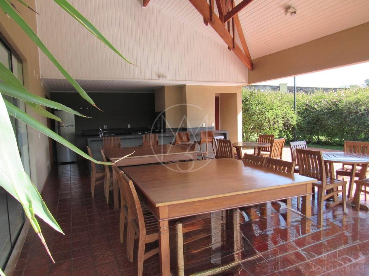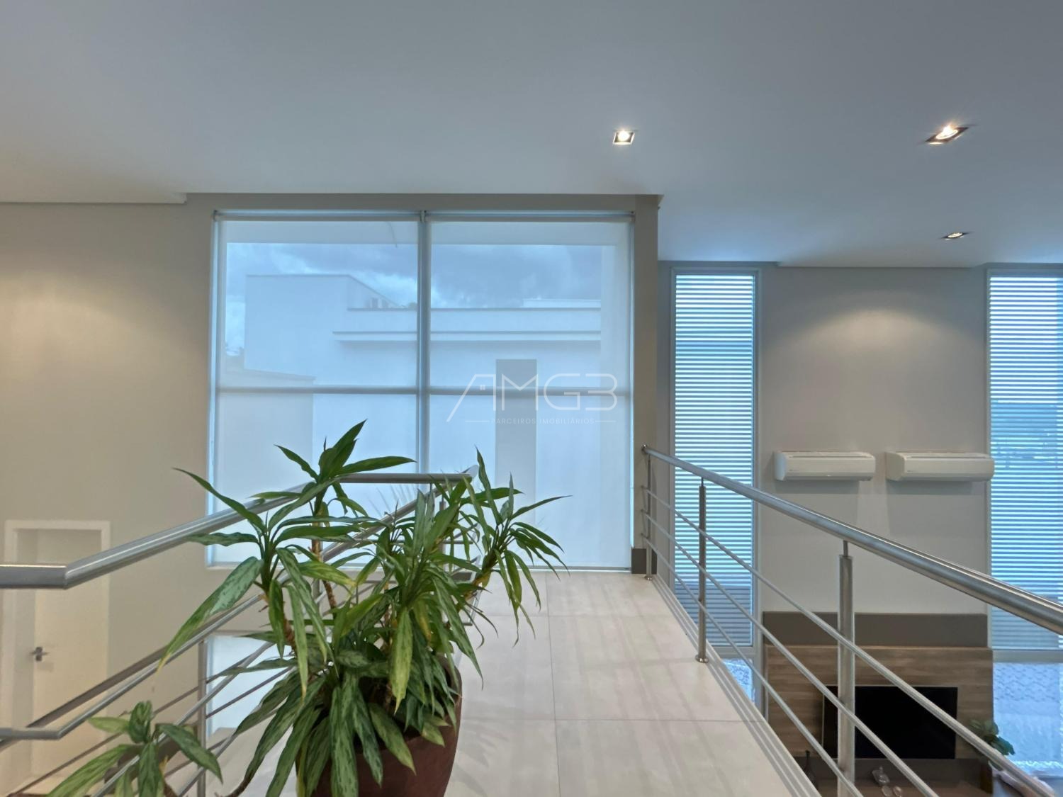Ampla área gourmet integrada à sala de estar, escritório no piso superior.