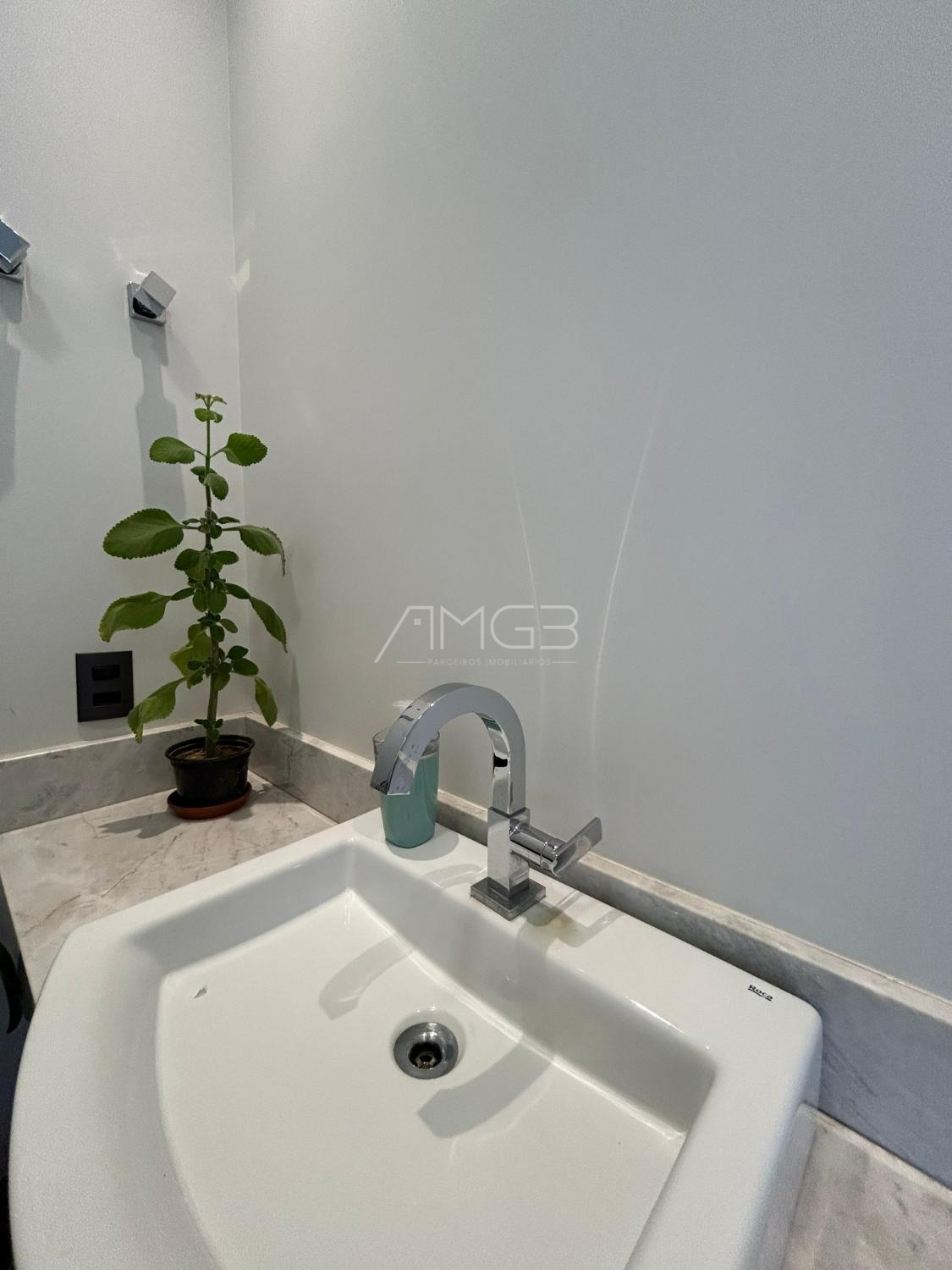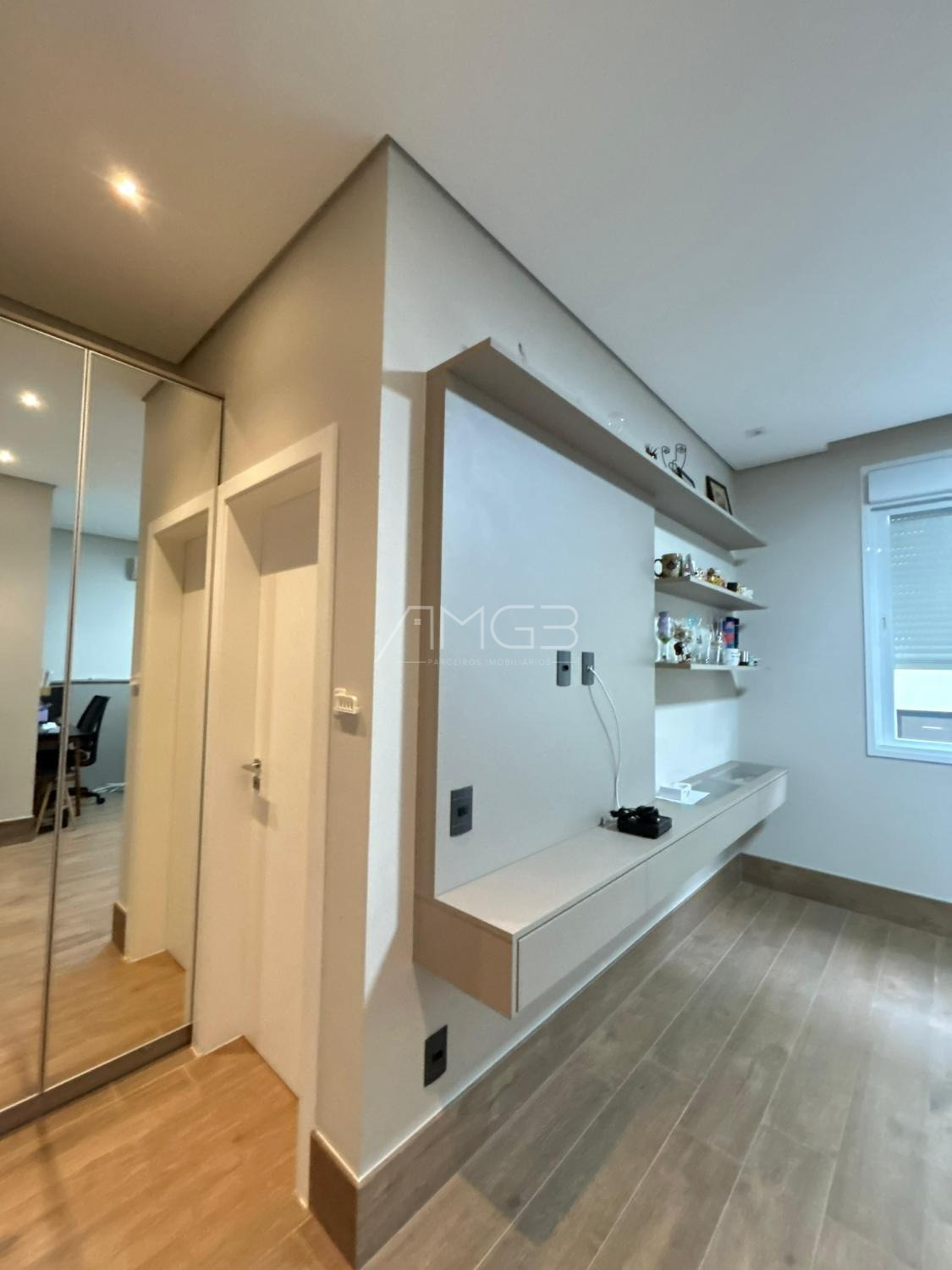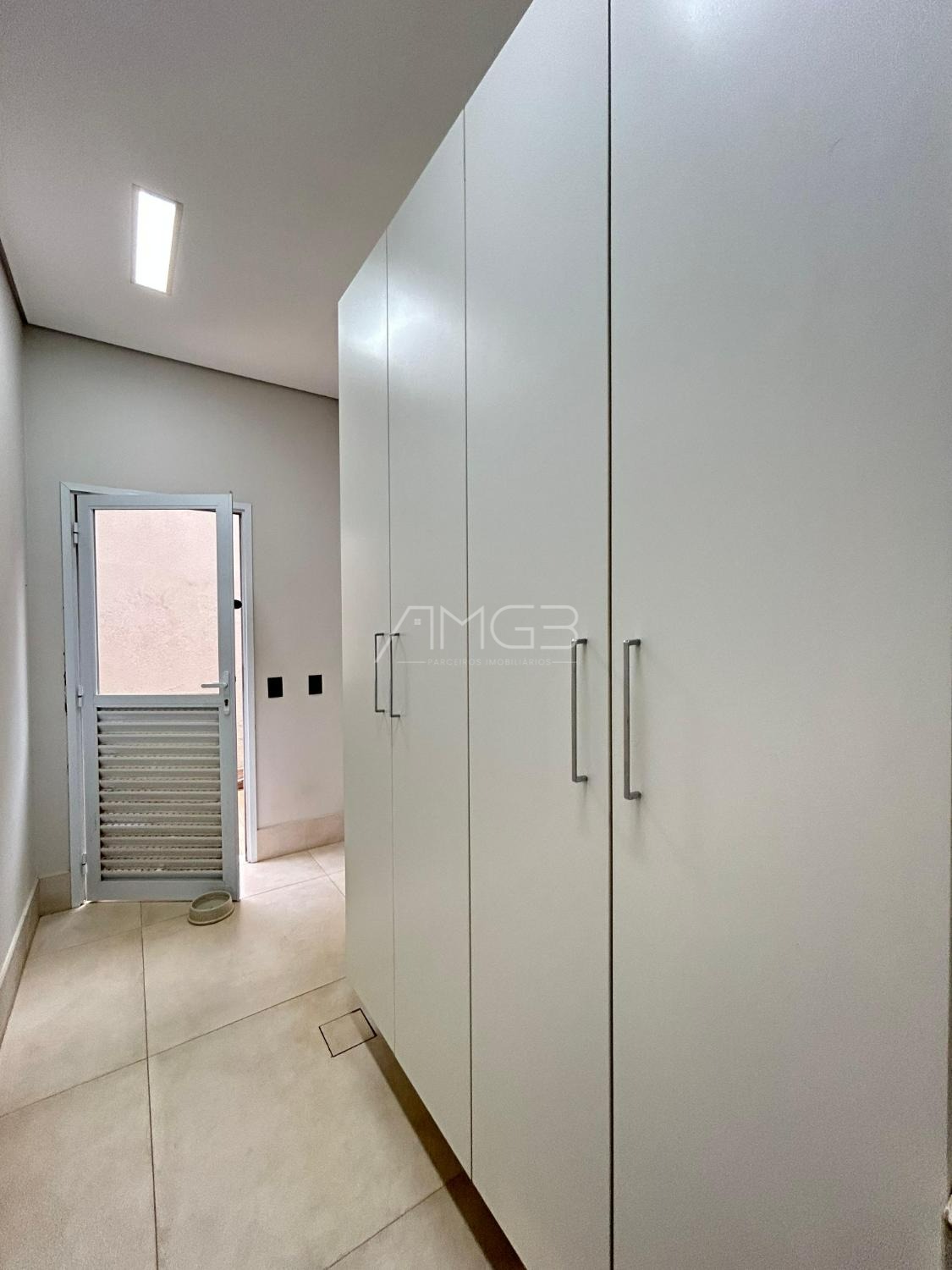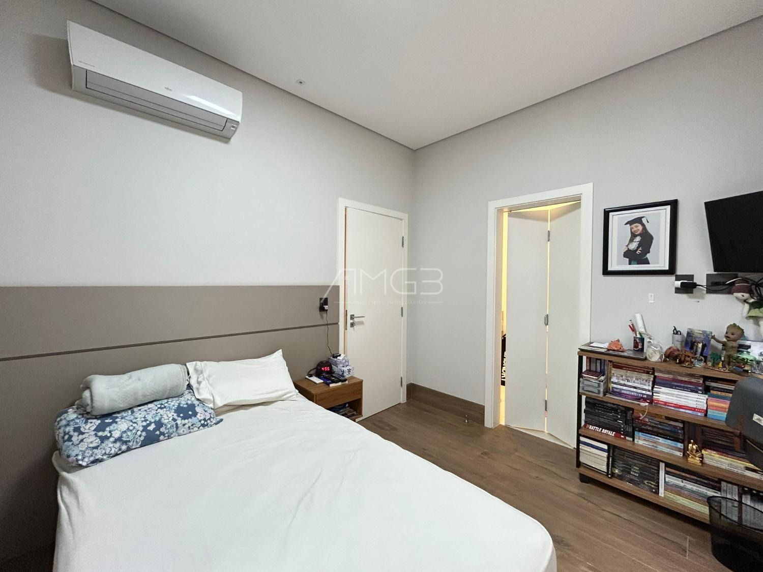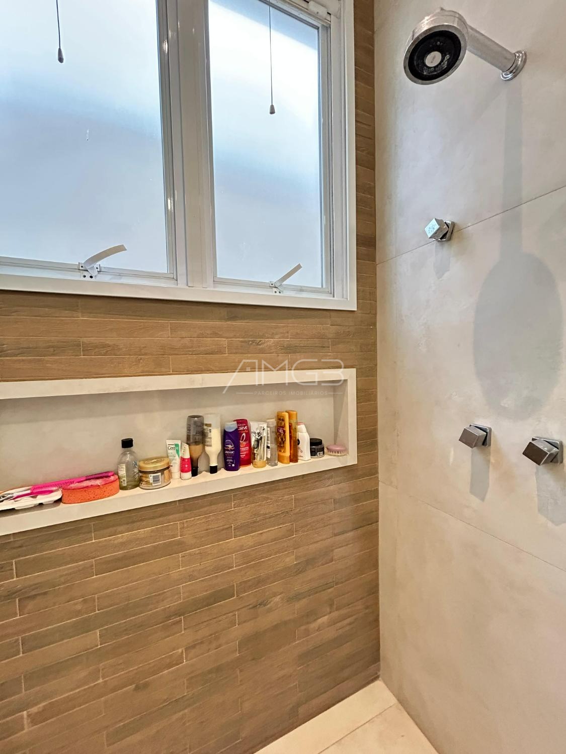 Projeto diferenciado com 3 suítes, sendo 2 no térreo e 1 no piso superior. Roupeiro anexo à suíte do piso superior, cozinha americana.