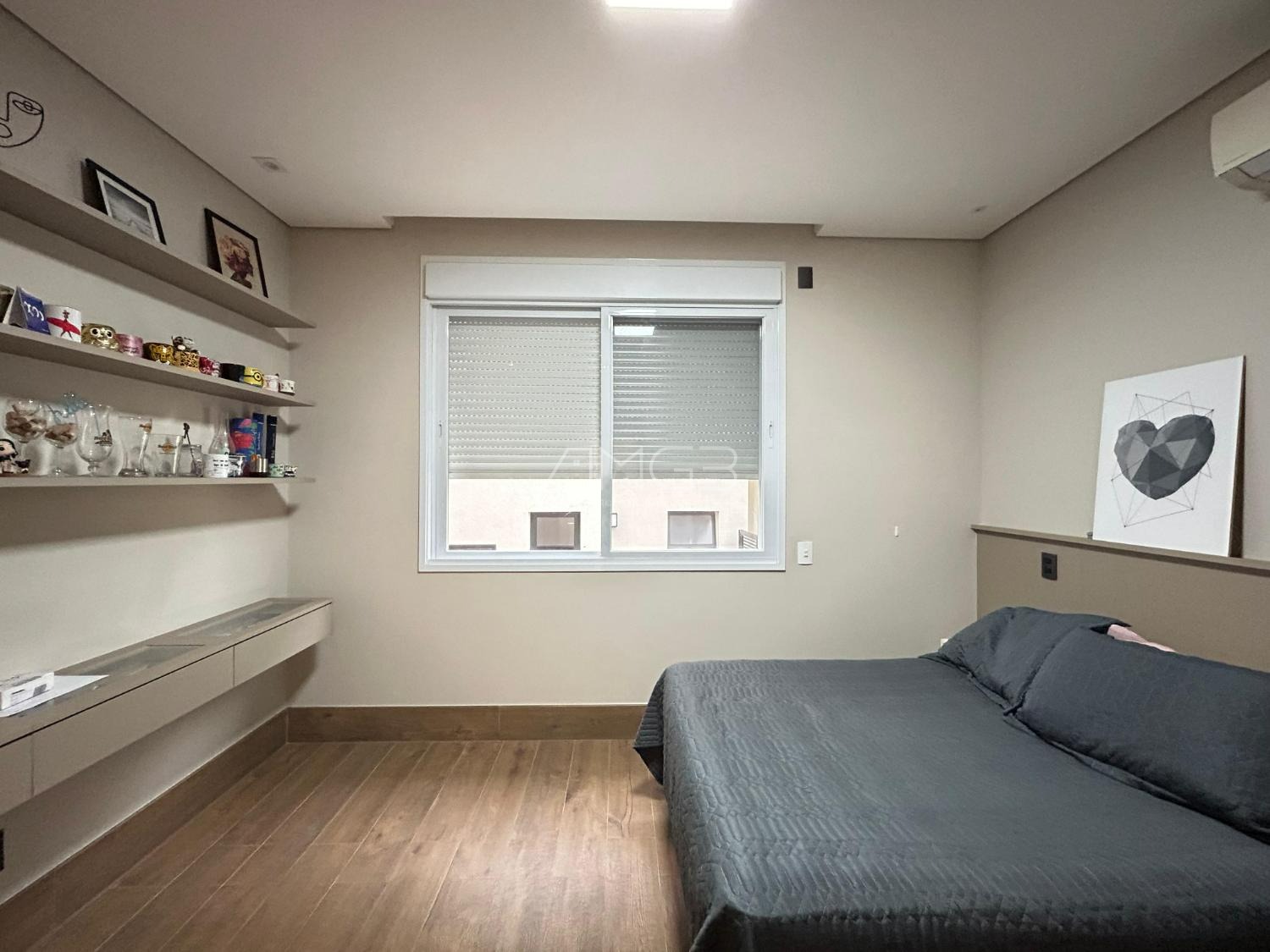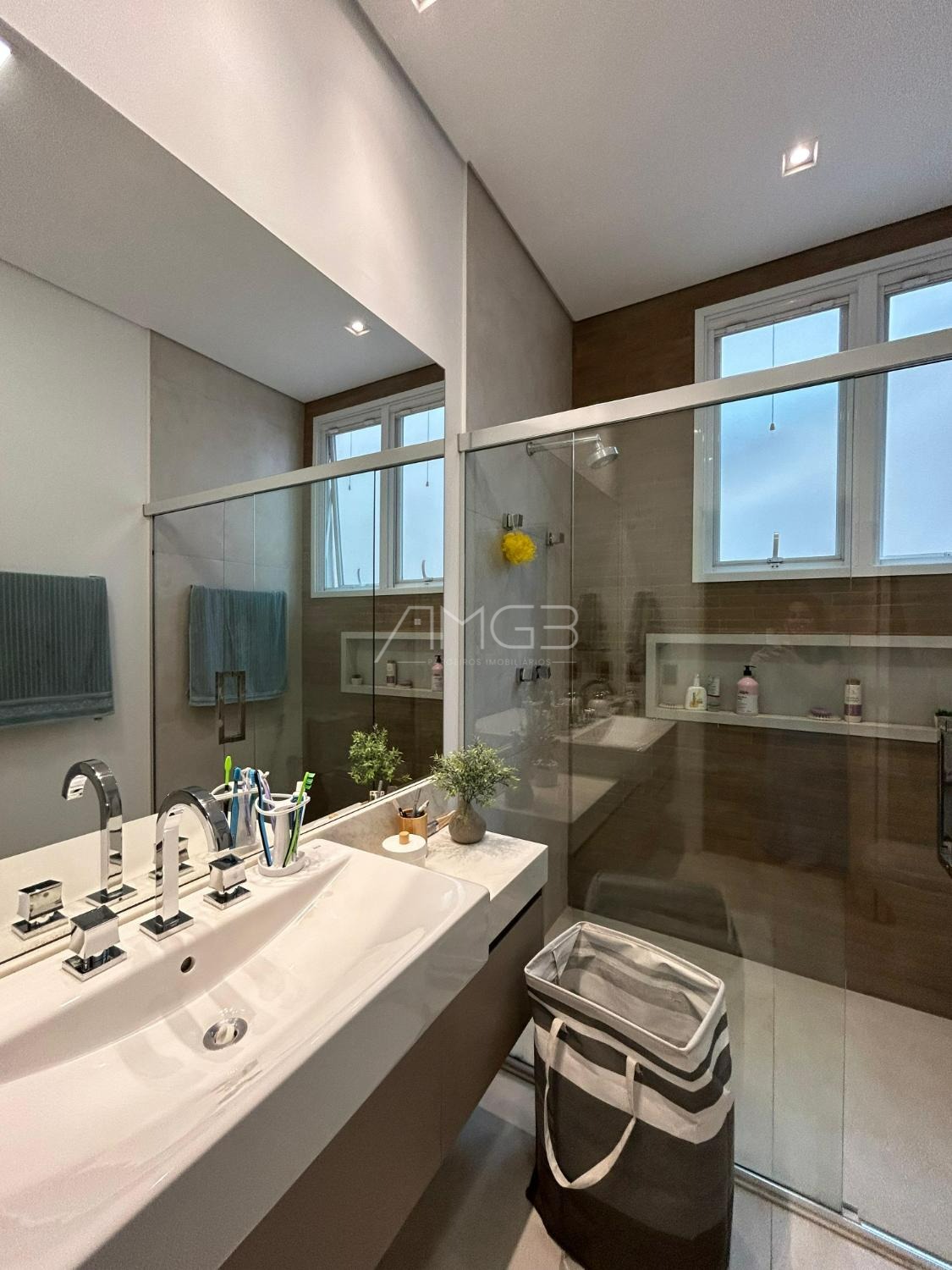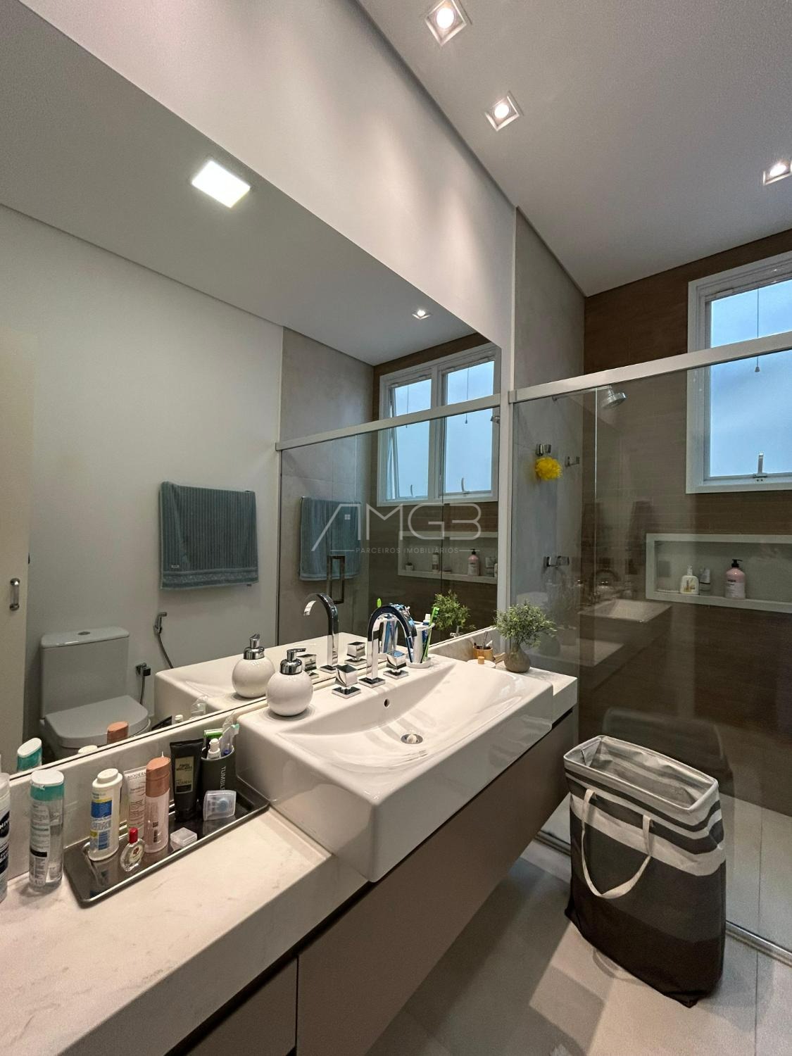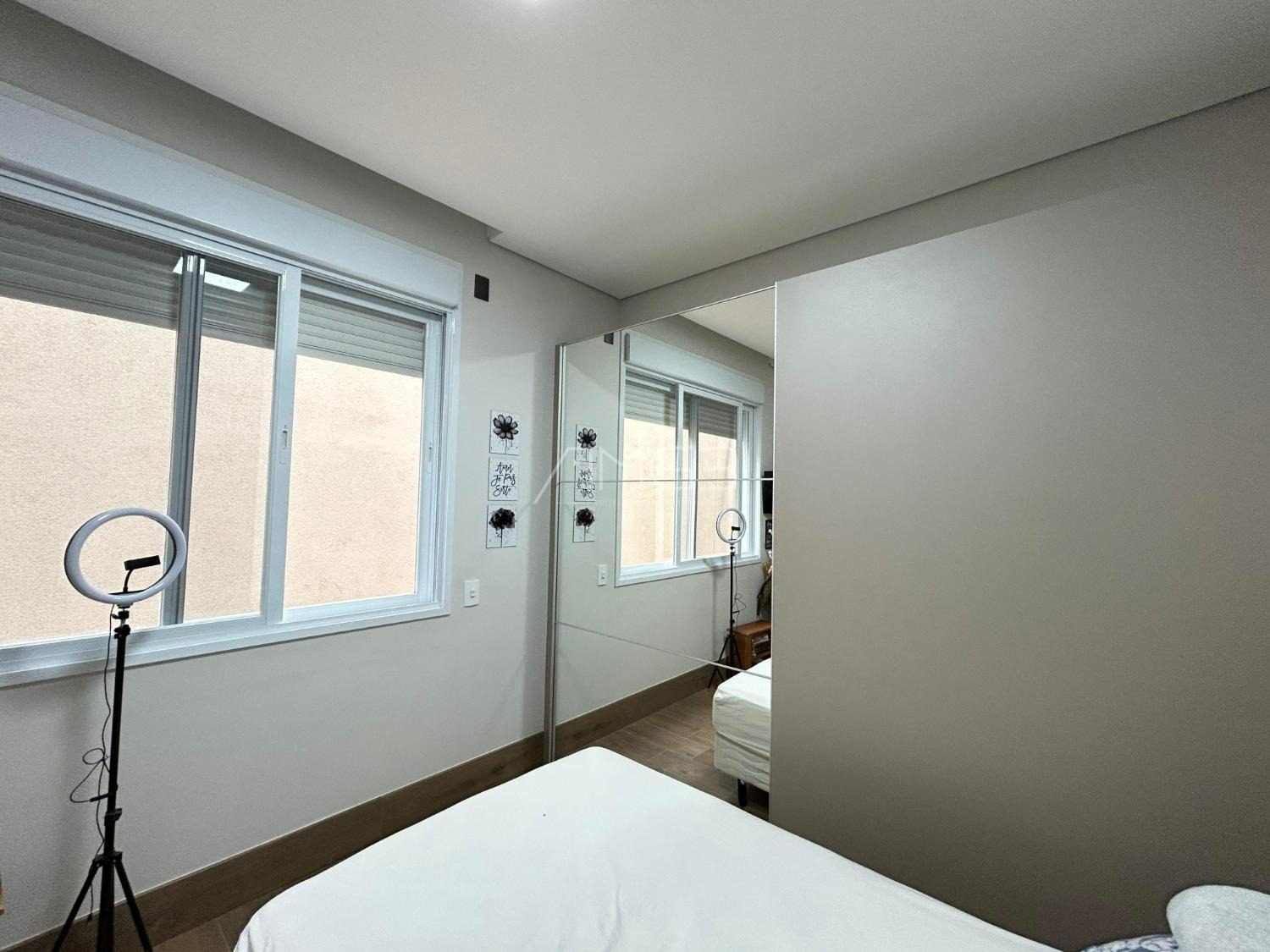 Projeto diferenciado com 3 suítes, sendo 2 no térreo e 1 no piso superior. Roupeiro anexo à suíte do piso superior, cozinha americana.