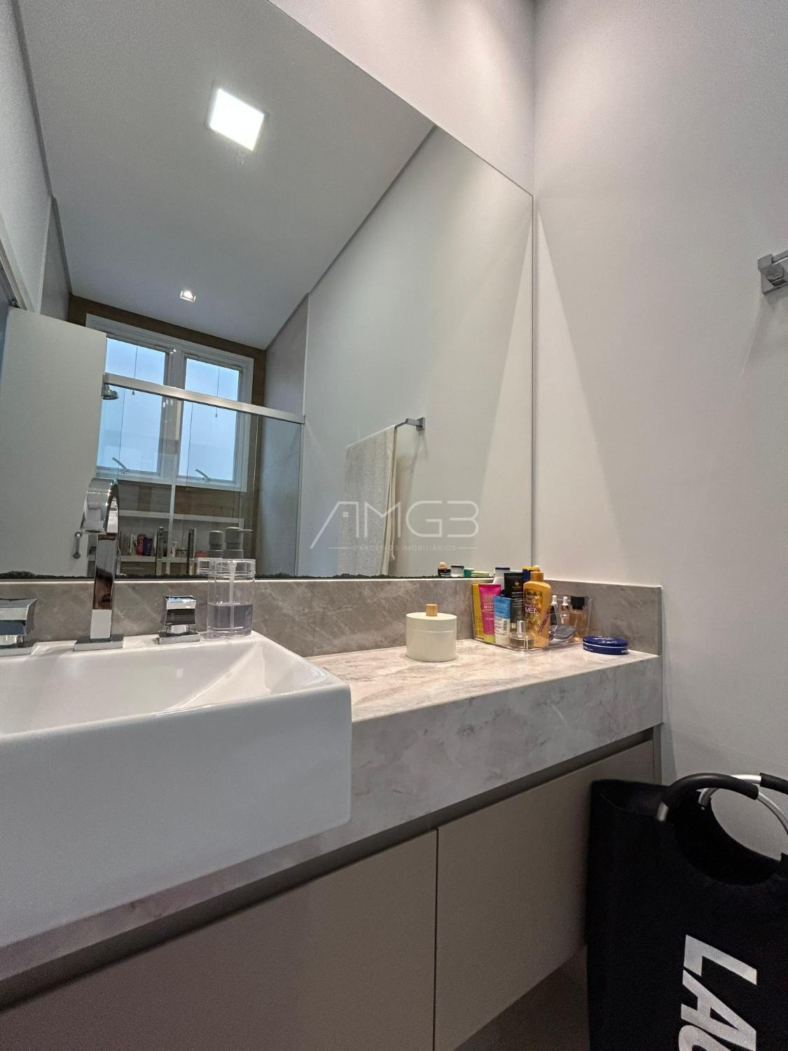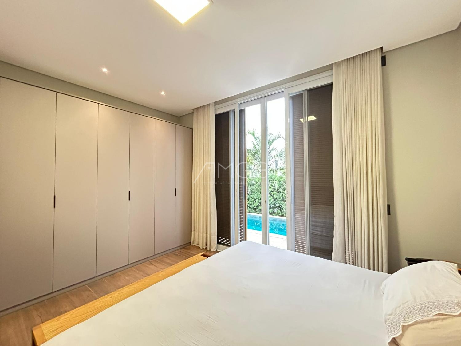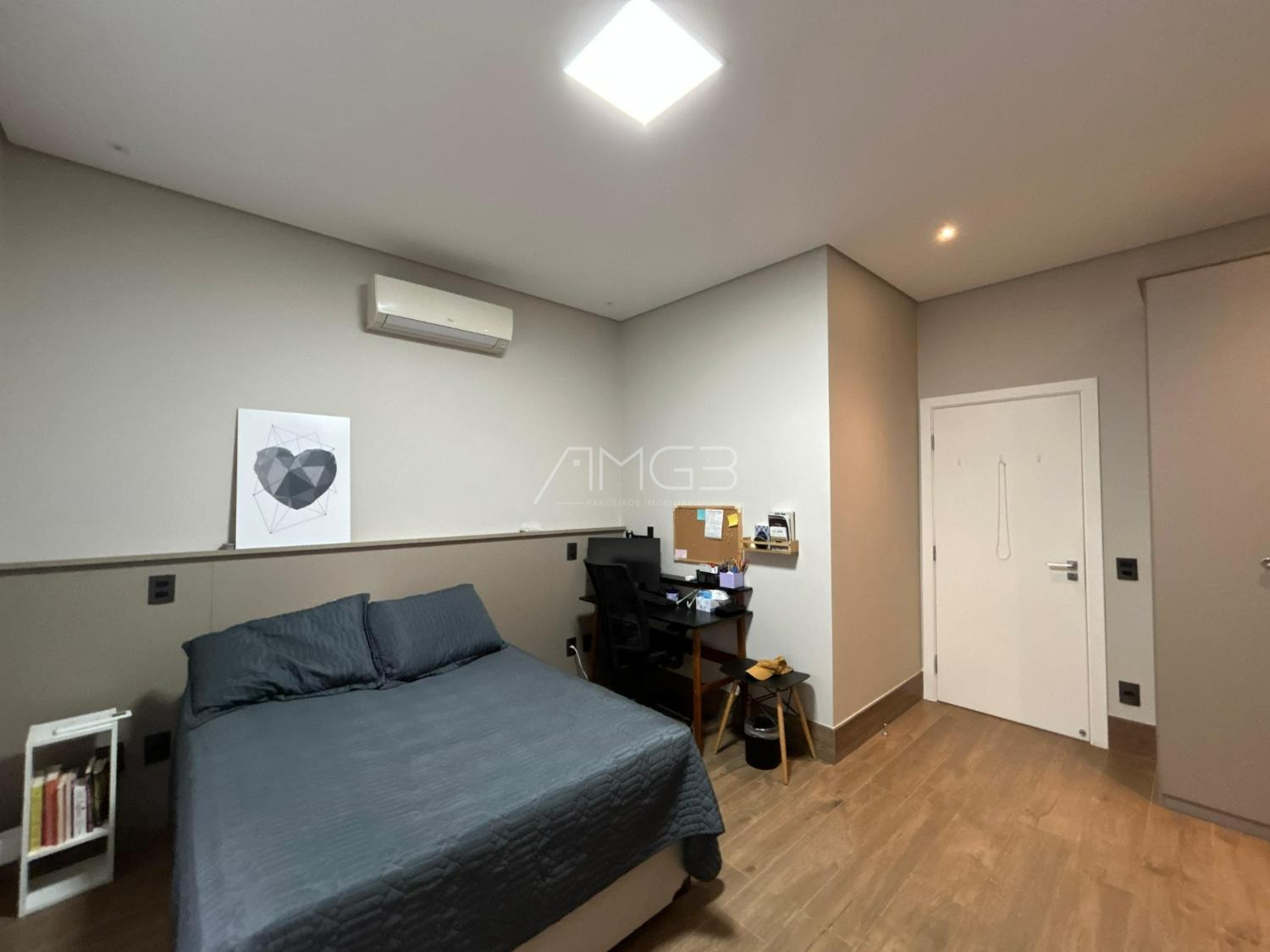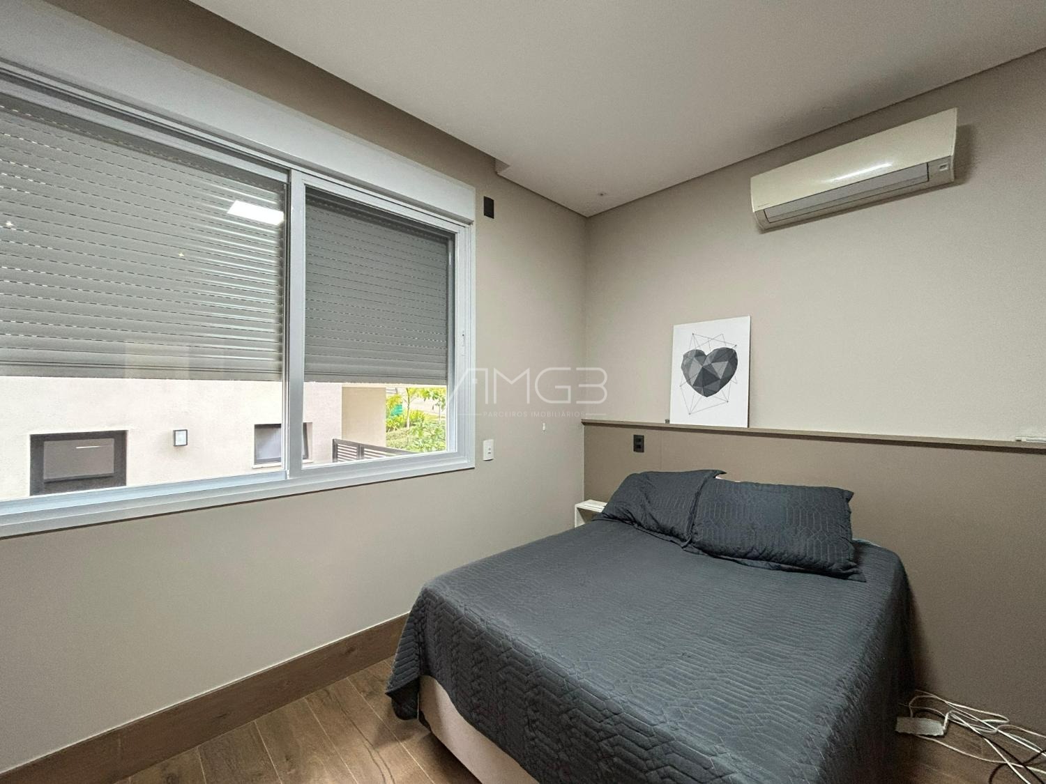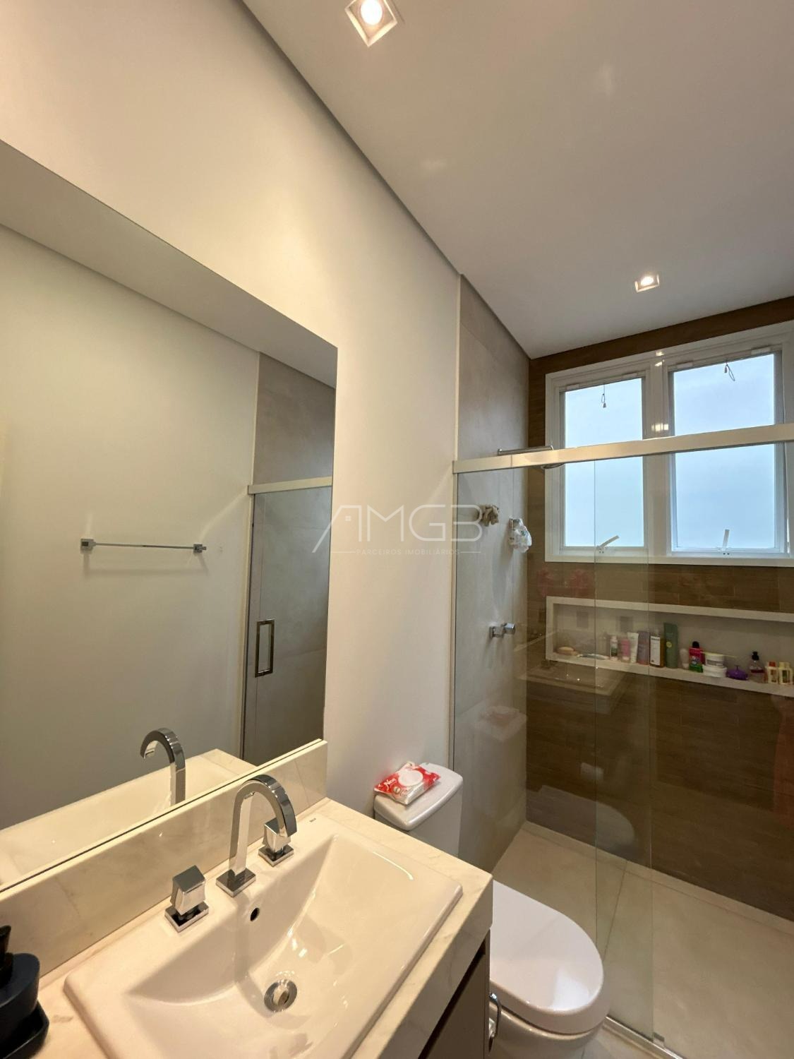 Projeto diferenciado com 3 suítes, sendo 2 no térreo e 1 no piso superior. Roupeiro anexo à suíte do piso superior, cozinha americana.