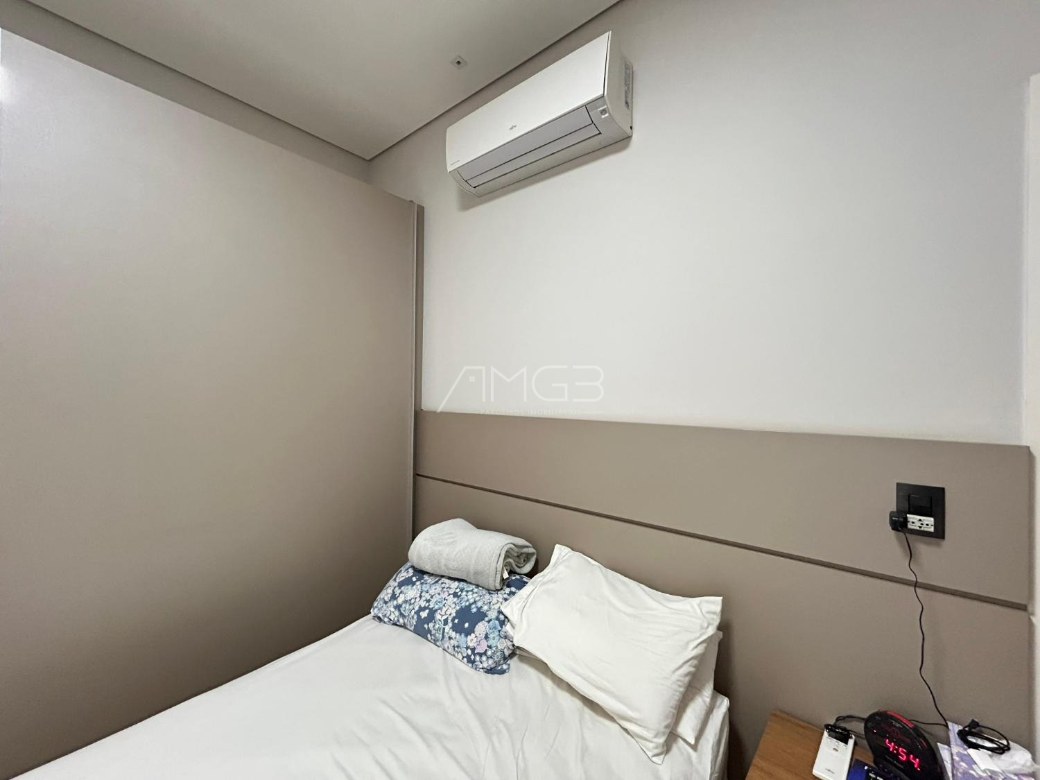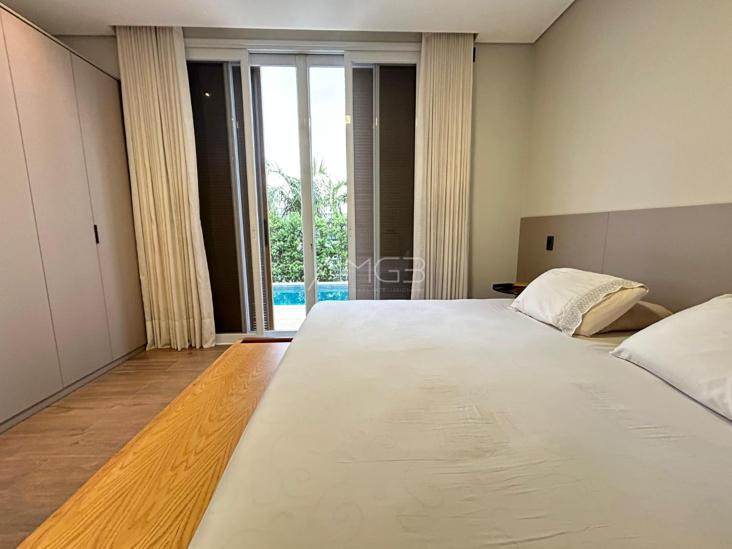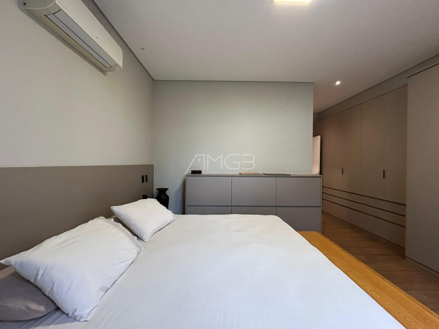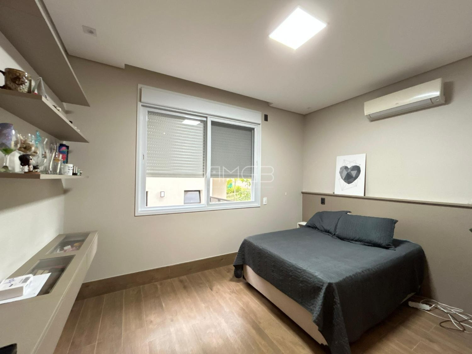 Projeto diferenciado com 3 suítes, sendo 2 no térreo e 1 no piso superior. Roupeiro anexo à suíte do piso superior, cozinha americana.