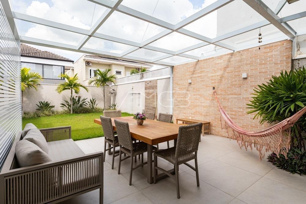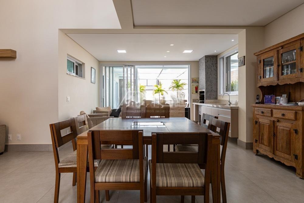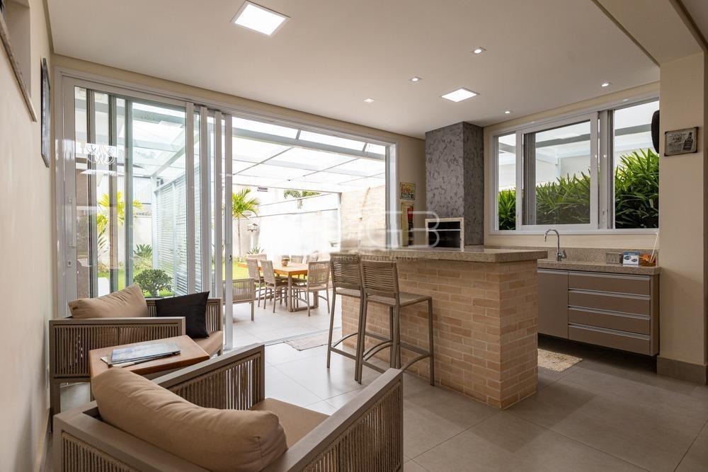 O imóvel conta com living espaçoso para sala de estar e jantar, cozinha equipada com cooktop, coifa e armários planejados, além de área gourmet integrada a um quintal amplo com churrasqueira, ideal para momentos em família.