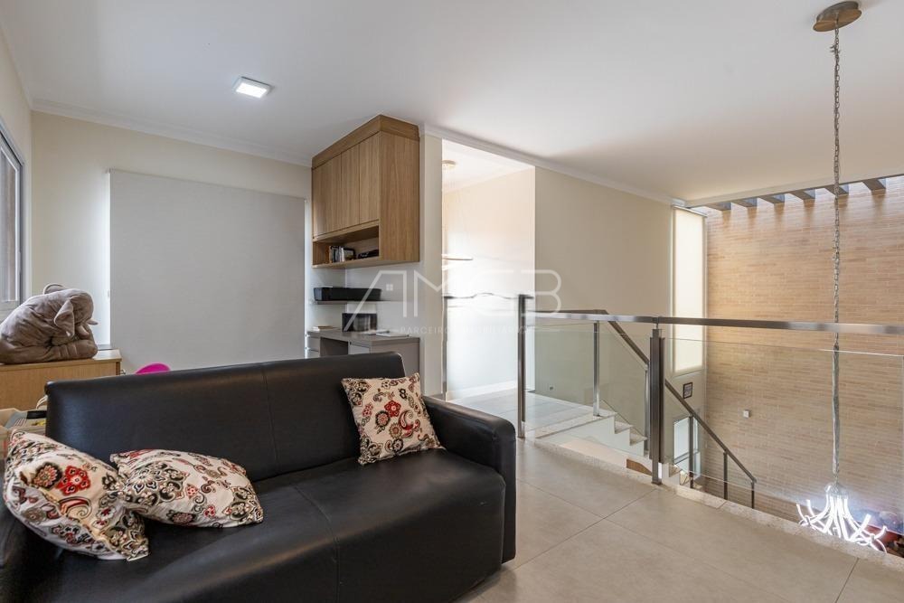 No piso superior, há um mezanino, perfeito para home office ou espaço de convivência.
