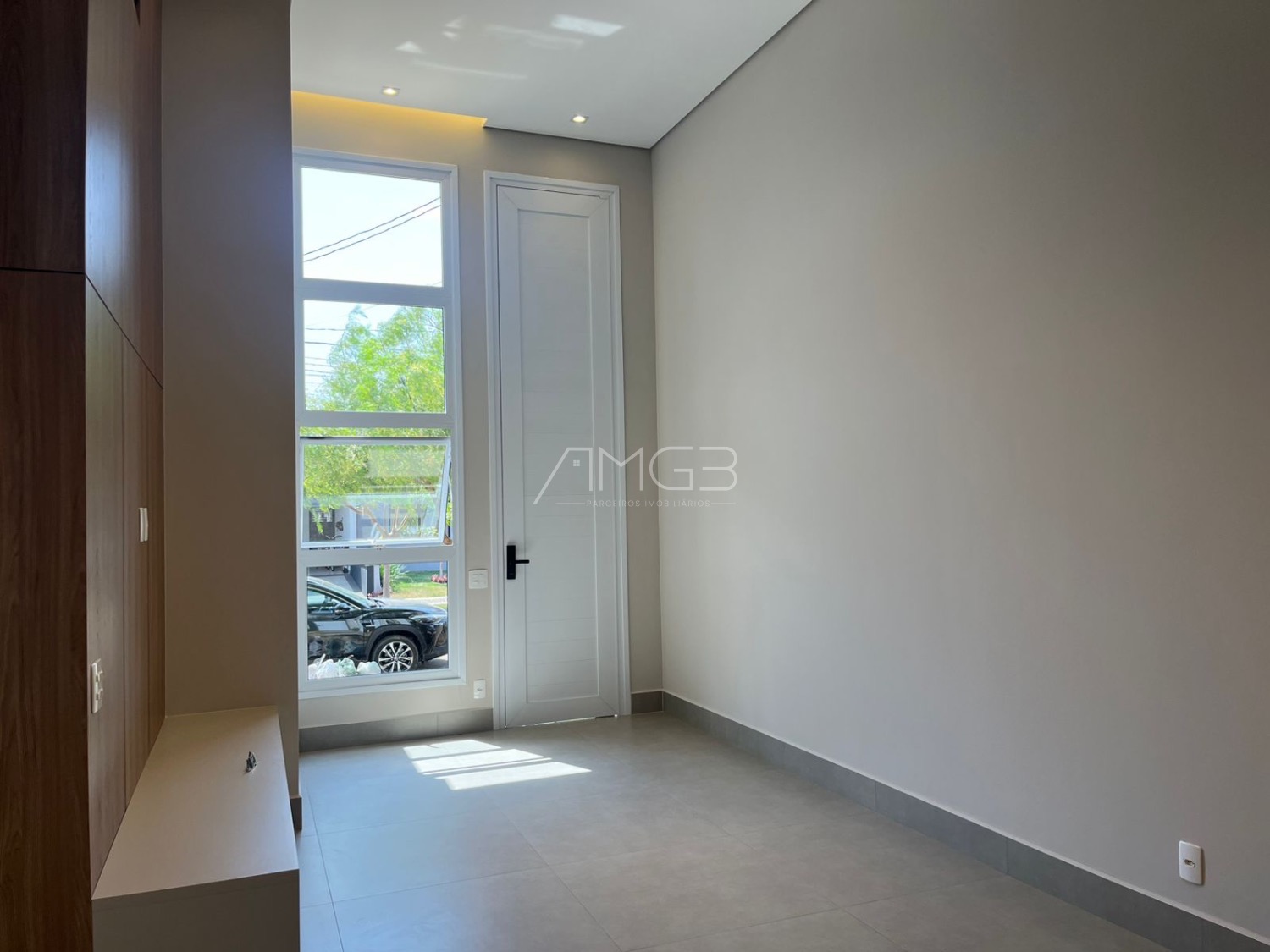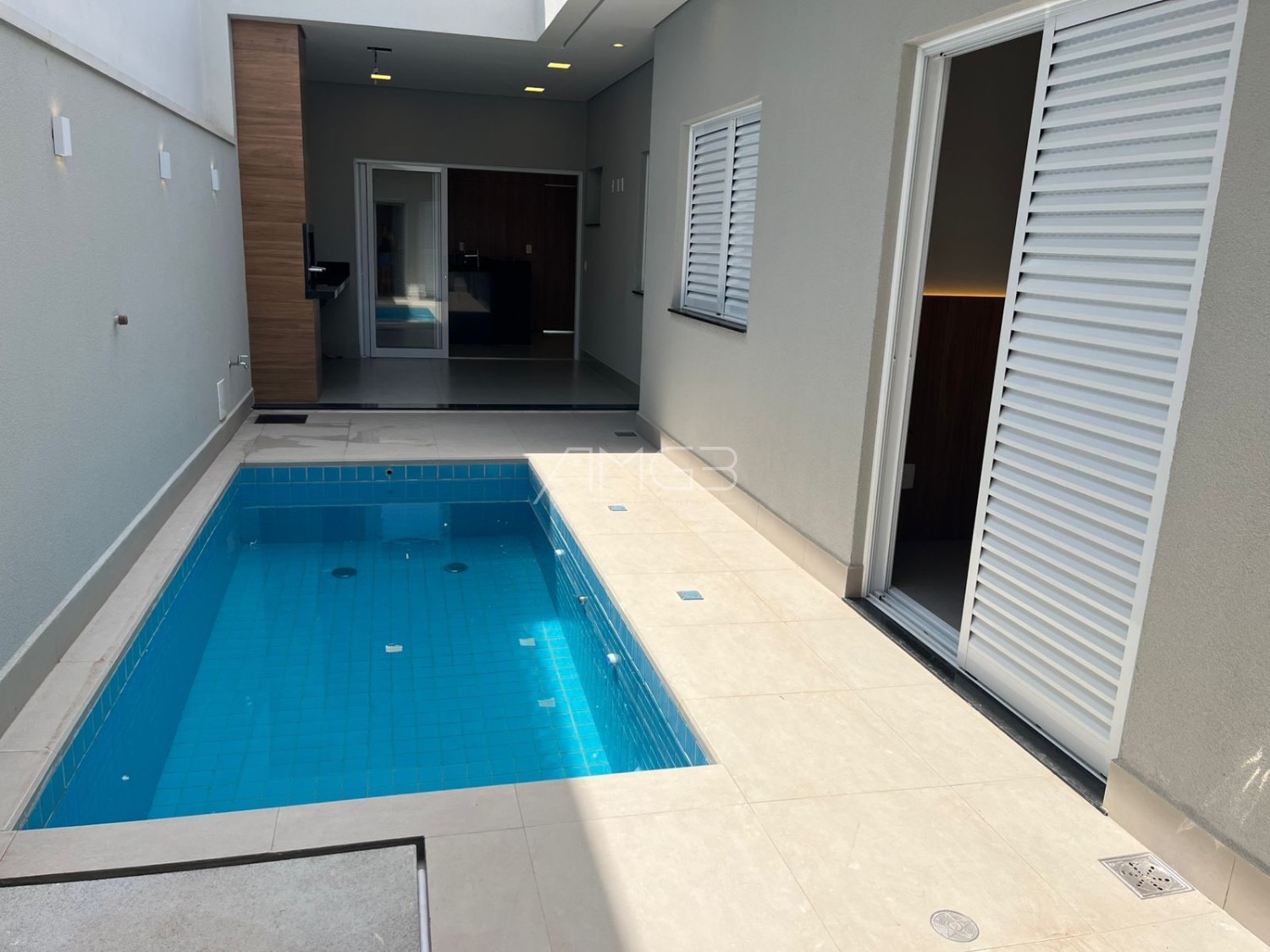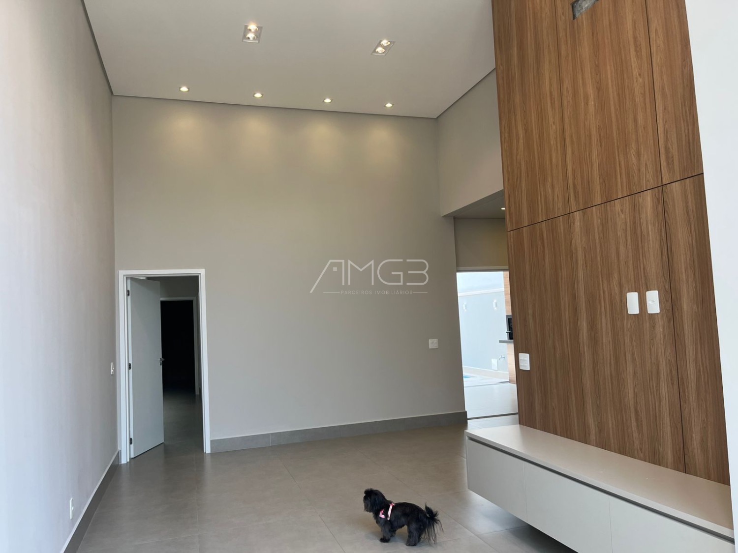 Casa térrea no Condomínio Terras da Estância em Paulínia com 140 m² de construção em terreno de 200 m², projeto moderno e acabamento de alto padrão. Possui três dormitórios, sendo uma suíte master com closet, cozinha planejada equipada com forno, cooktop e depurador, escritório mobiliado e sala com pé-direito duplo que amplia a iluminação e a sensação de espaço. A área externa conta com espaço gourmet com churrasqueira e banheiro exclusivo, além de piscina para momentos de lazer. O condomínio oferece estrutura completa com salão de festas, academia ao ar livre, bosque com trilha, campo, playground e segurança 24 horas, ideal para quem busca conforto, praticidade e qualidade de vida.