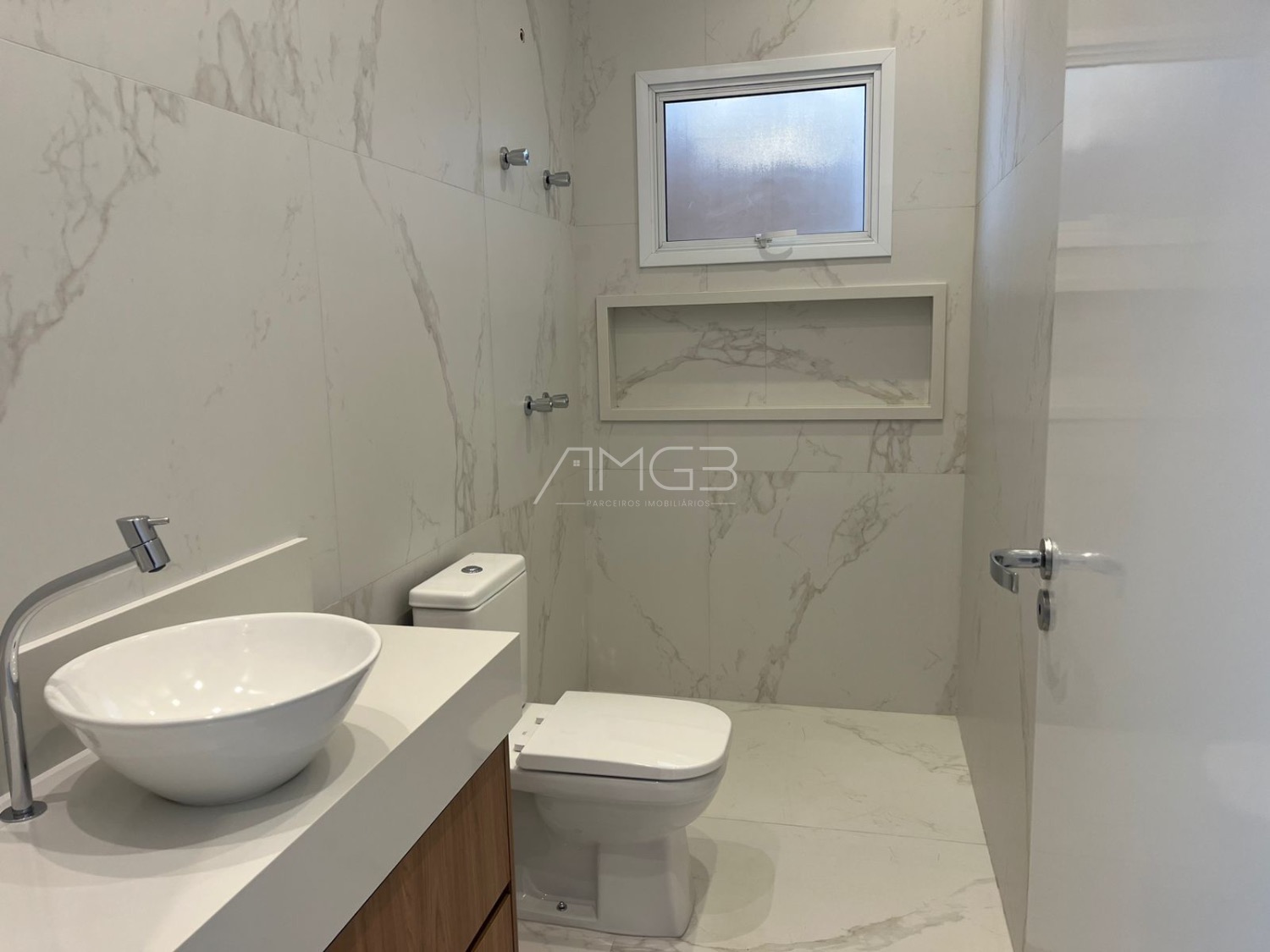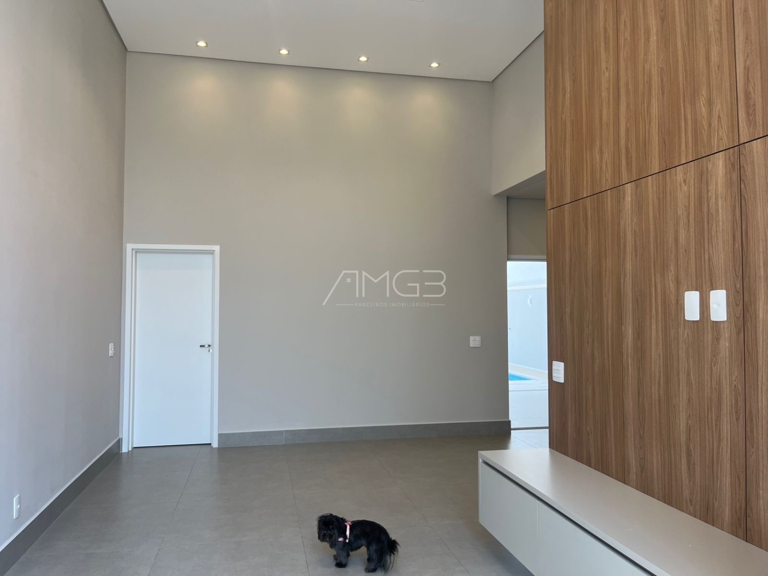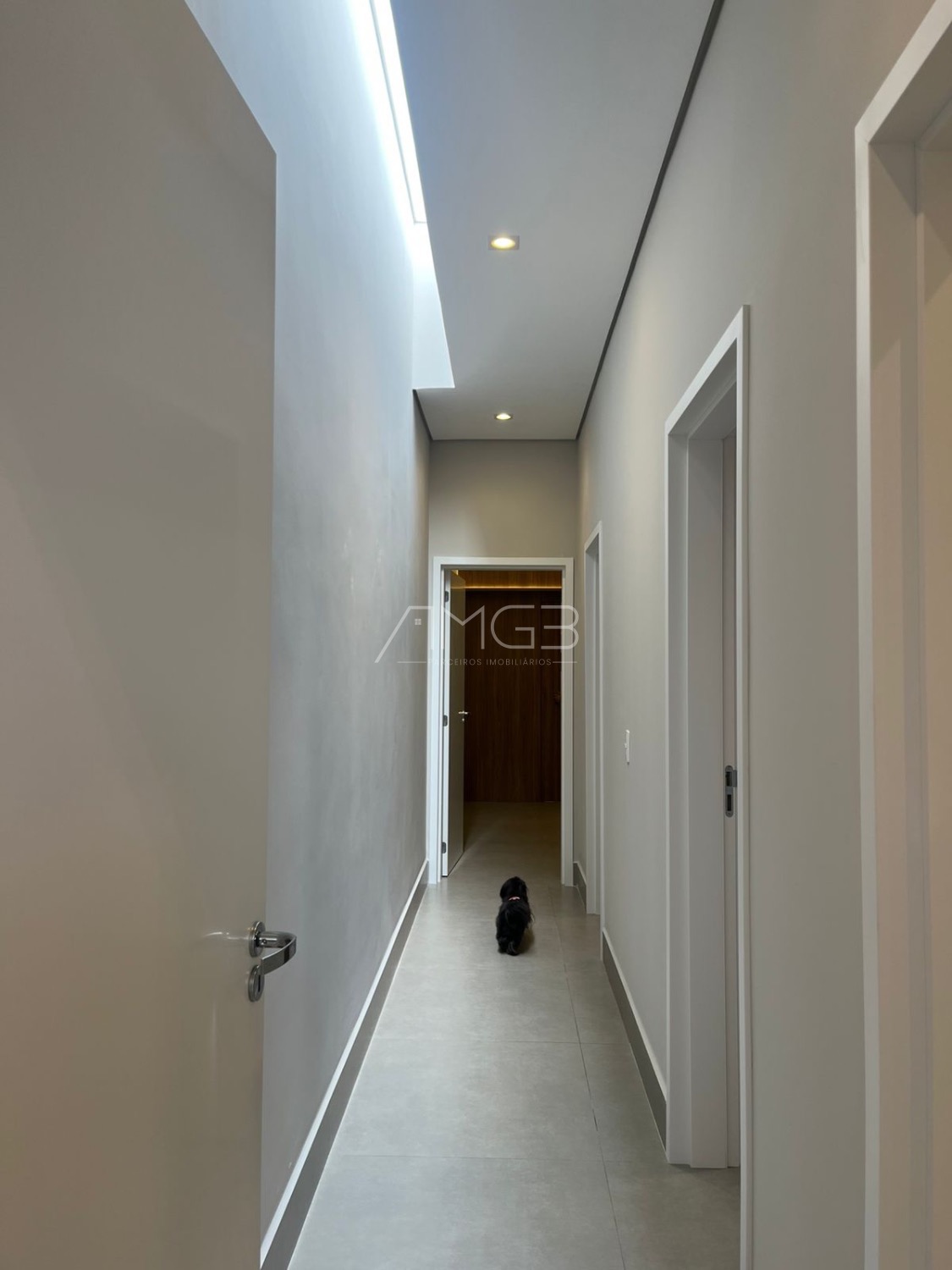 Casa térrea no Condomínio Terras da Estância em Paulínia com 140 m² de construção em terreno de 200 m², projeto moderno e acabamento de alto padrão. Possui três dormitórios, sendo uma suíte master com closet, cozinha planejada equipada com forno, cooktop e depurador, escritório mobiliado e sala com pé-direito duplo que amplia a iluminação e a sensação de espaço. A área externa conta com espaço gourmet com churrasqueira e banheiro exclusivo, além de piscina para momentos de lazer. O condomínio oferece estrutura completa com salão de festas, academia ao ar livre, bosque com trilha, campo, playground e segurança 24 horas, ideal para quem busca conforto, praticidade e qualidade de vida.