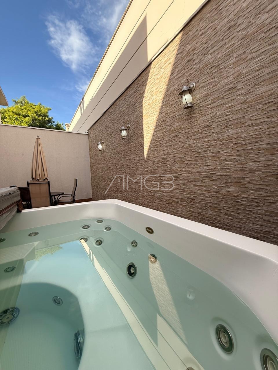 A casa conta com três dormitórios, sendo uma suíte com ar-condicionado inverter, living para dois ambientes, cozinha americana integrada à área gourmet, lavabo e área de serviço. O quintal dispõe de jacuzzi com spa completo, proporcionando um espaço ideal para relaxamento e convivência.