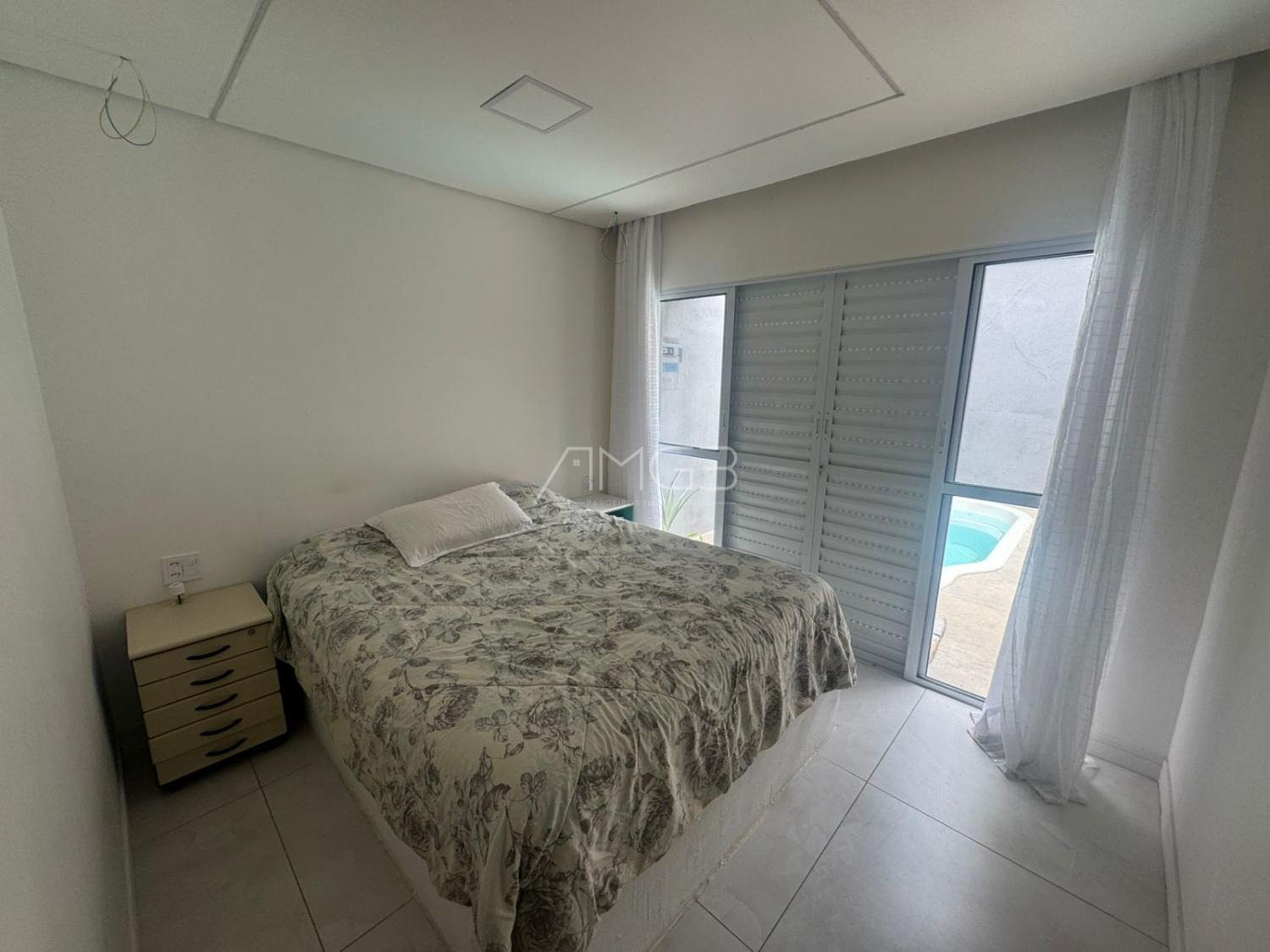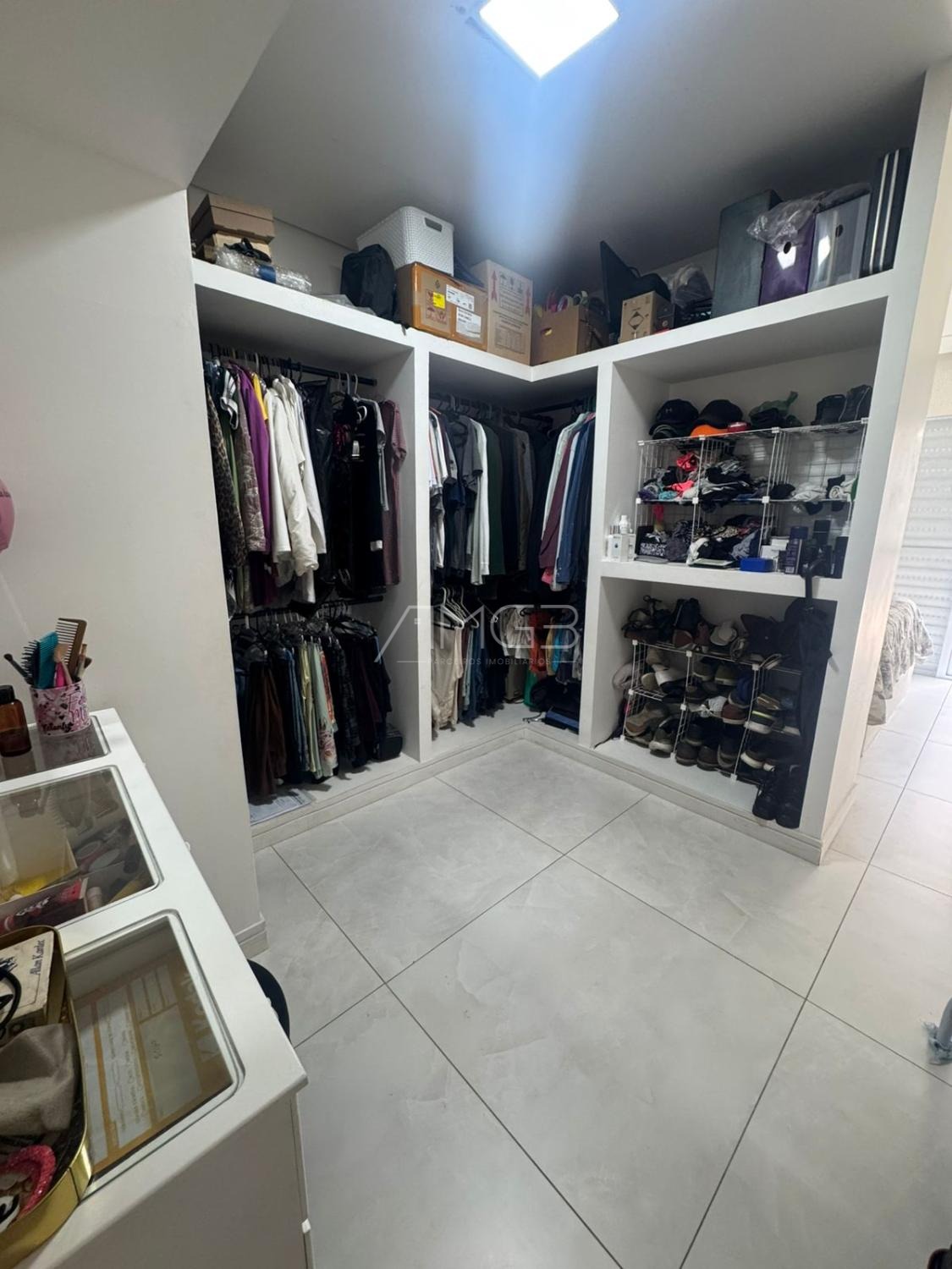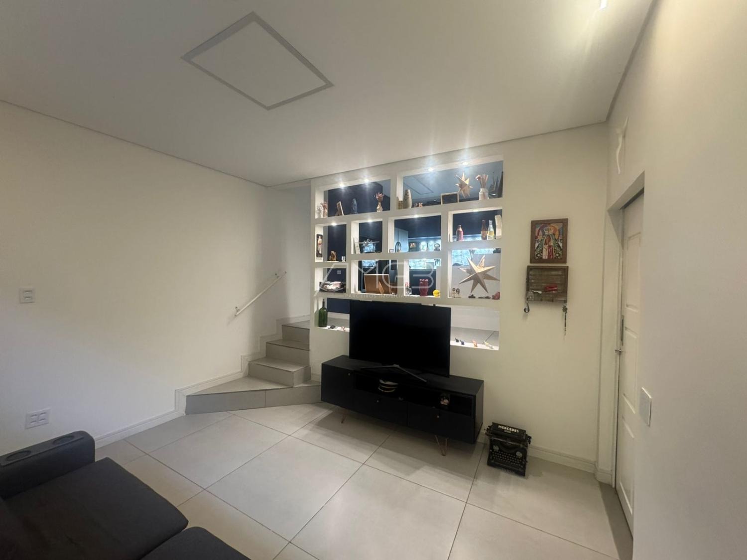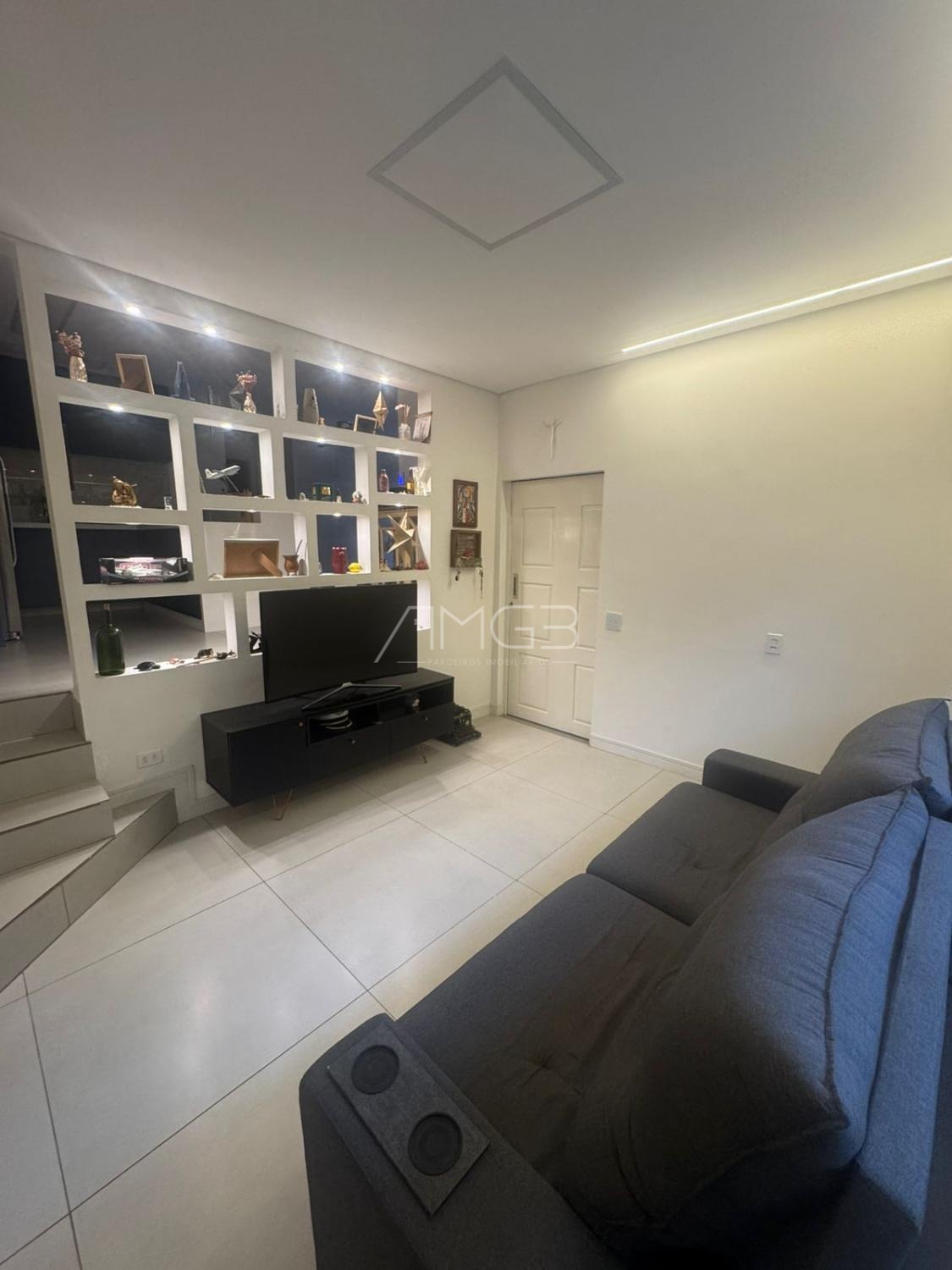 O imóvel conta com sala de entrada e sala de TV, dois quartos sendo uma suíte com closet, sala de jantar integrada à cozinha planejada e três banheiros. Possui área gourmet com churrasqueira, piscina aquecida e banheiro de apoio, além de área de serviço isolada. A casa dispõe de aquecimento solar em todos os ambientes, inclusive na área de serviço, sótão com aproximadamente 55 m², não possui vizinhos de frente e apresenta elétrica e hidráulica totalmente novas. Os acabamentos incluem porcelanato em todos os ambientes, lustres embutidos e teto rebaixado em todos os espaços internos. O condomínio oferece portaria 24 horas, quadra poliesportiva, percurso para caminhada e área de bosque, proporcionando segurança, lazer e qualidade de vida.
