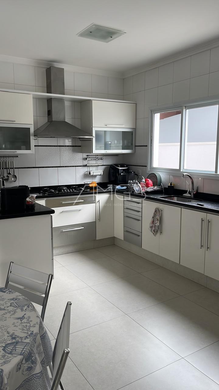 A residência conta com quatro vagas de garagem, sendo duas cobertas e duas descobertas. No pavimento inferior, as salas de estar e jantar são amplas, bem iluminadas e integradas, criando um ambiente acolhedor para convivência. A cozinha é espaçosa e funcional, complementada por lavabo, área de serviço e banheiro para empregada.